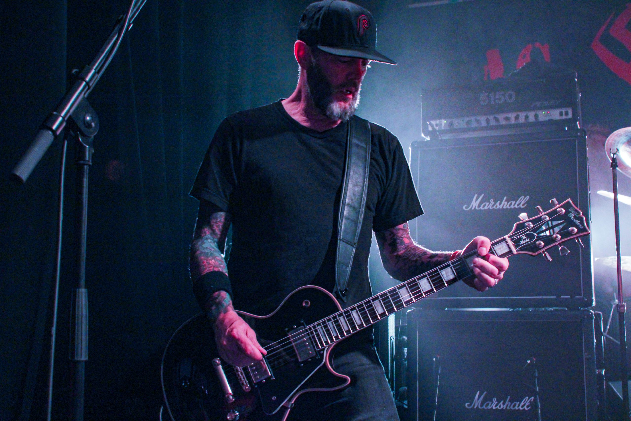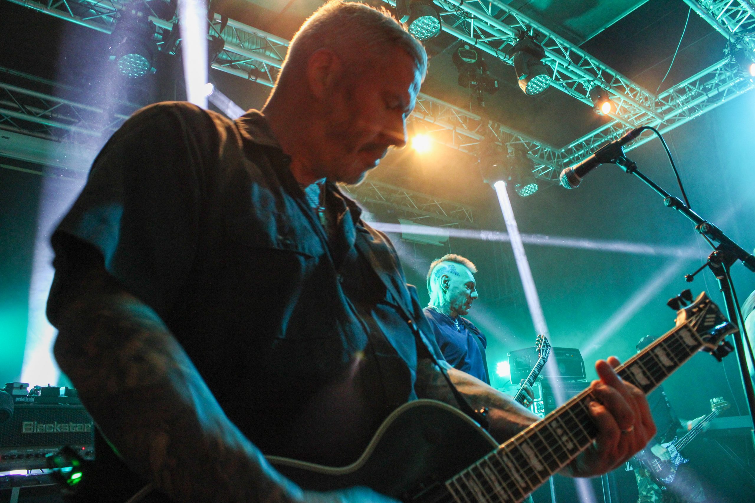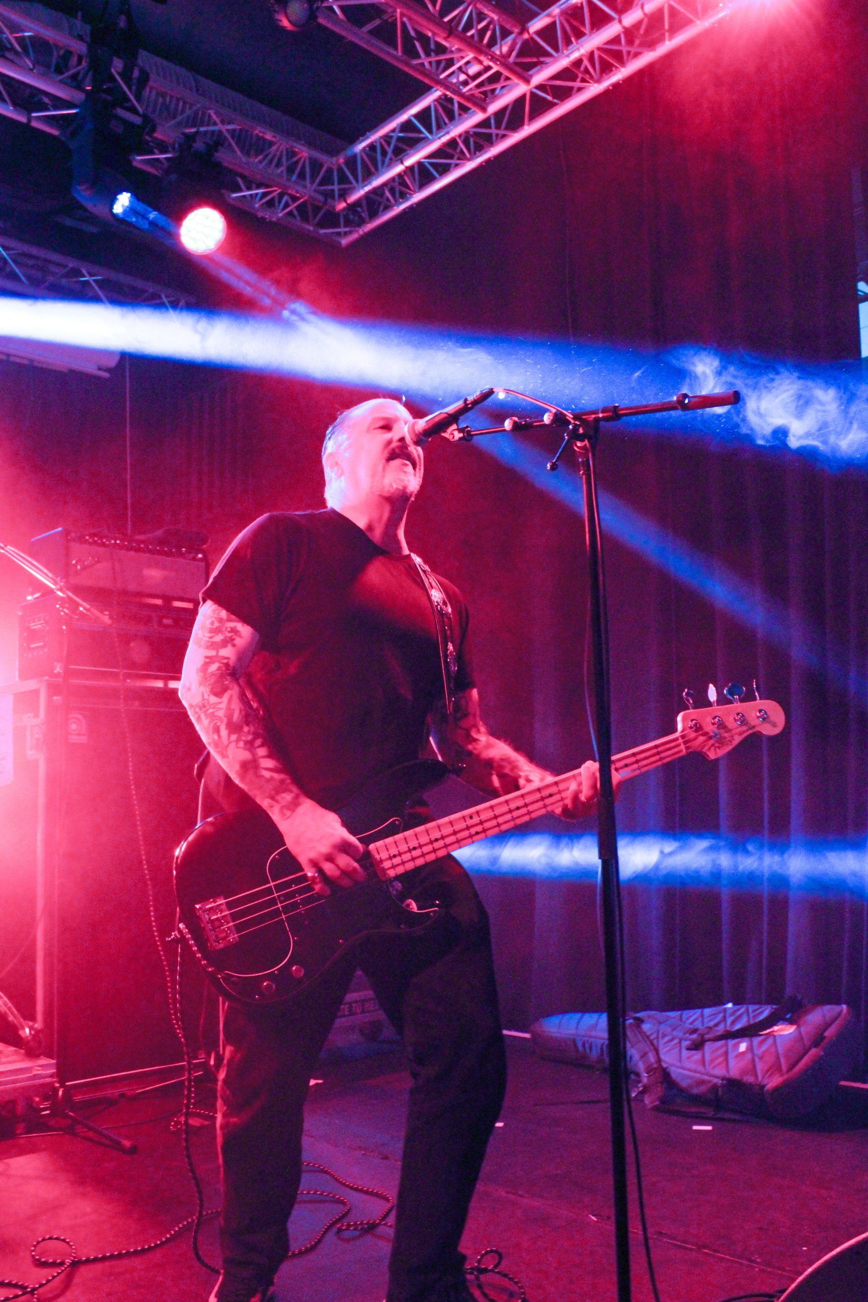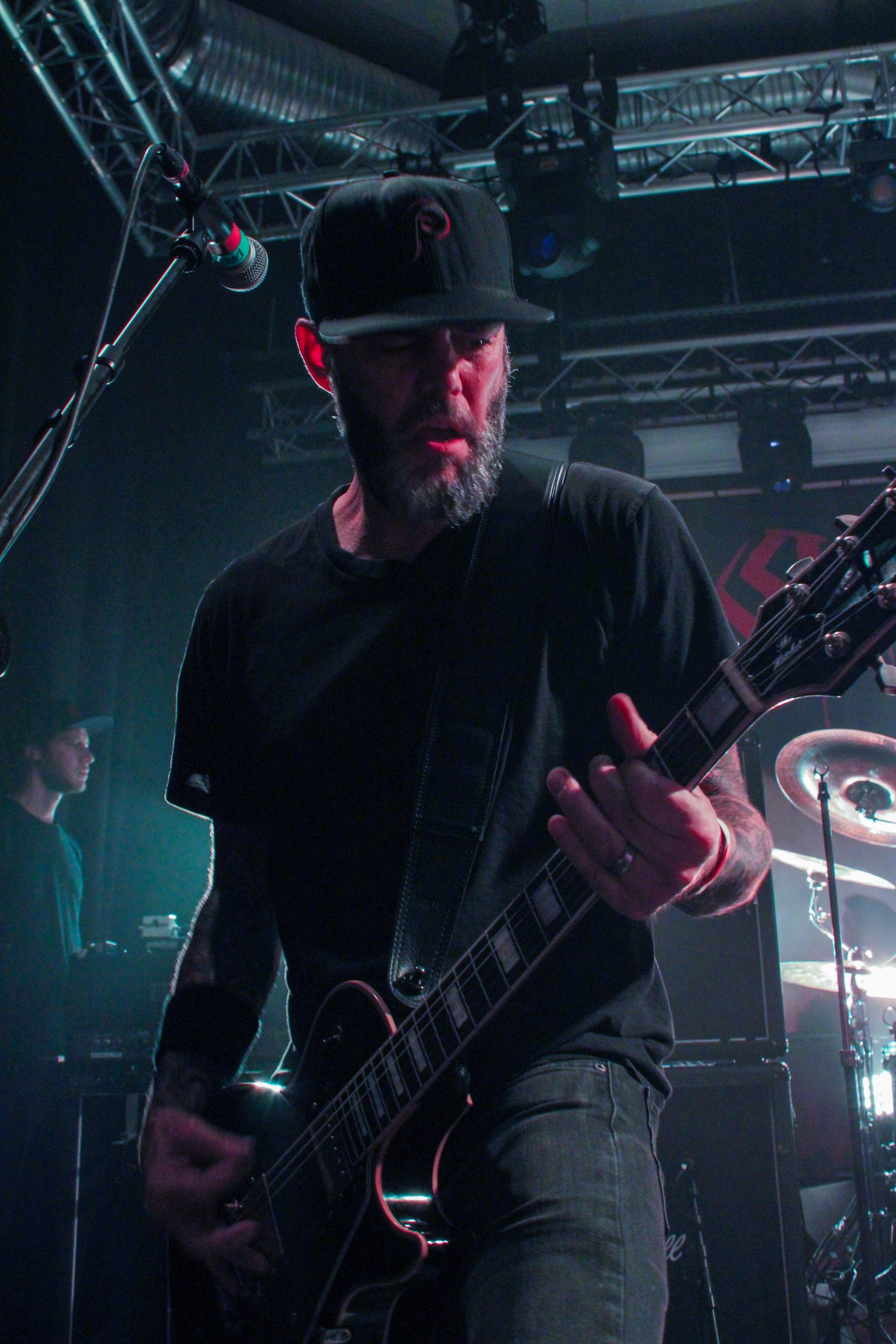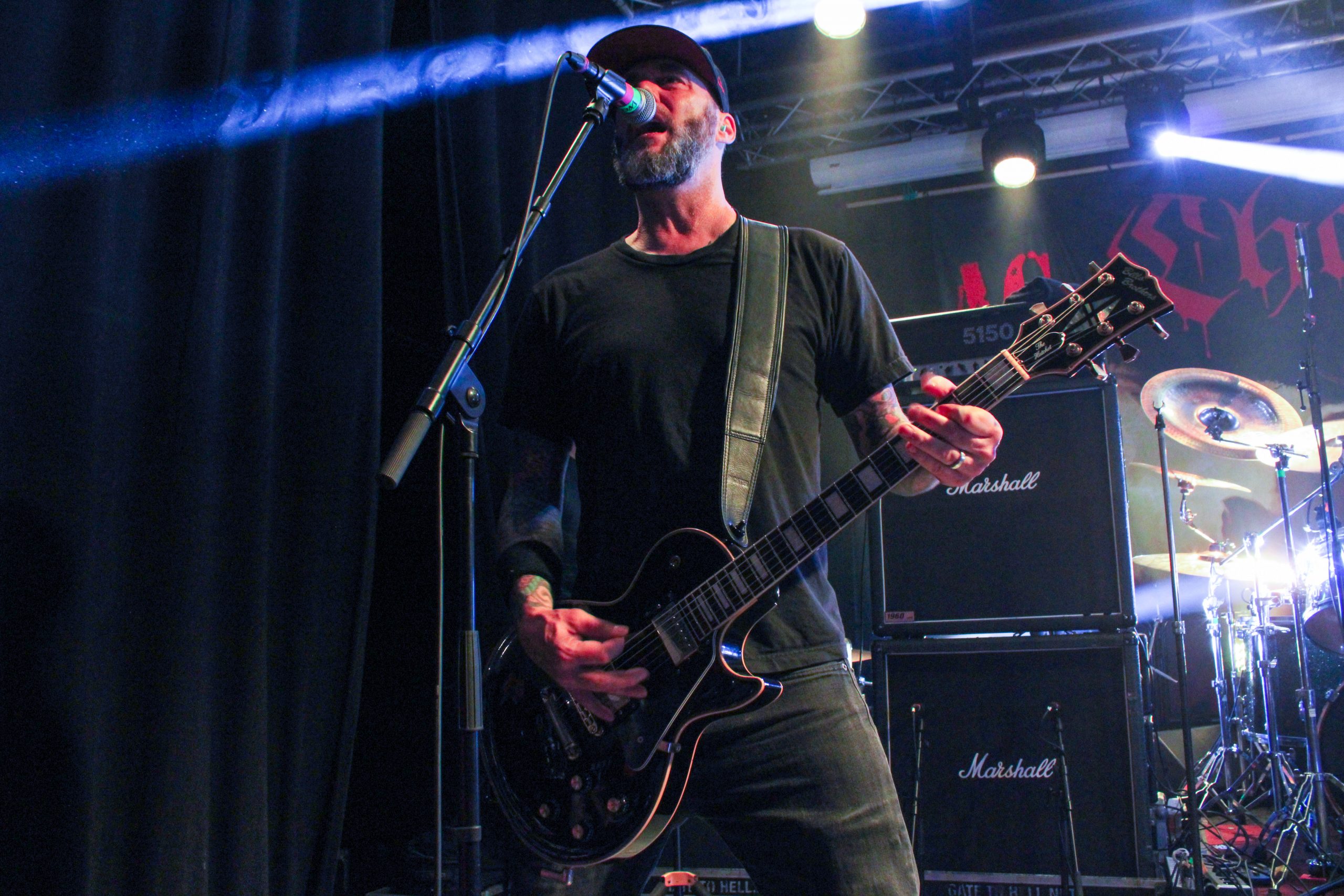 Et c’est parti pour Agnostic Front! D’entrée de jeu les américains envoient leur hardcore imparable, ce qui mettra la fosse en ébullition. L’énergie de Roger Miret (chant) est absolument dingue, il court partout et harangue la foule pour une proximité totale avec le public. Les musiciens ne sont pas en reste et bougent dans tous les sens, de vraies piles électriques! Vinnie Stigma (guitare) a fait son show avec une guitare gonflable dès le début du concert pour amuser la galerie. L’ambiance est excellente, et on sent que tout le monde aussi bien sur scène que dans la salle ou derrière le bar passe une super soirée! Le groupe alterne entre les morceaux de Get Loud! (2019) et des classiques de leur discographie, au grand plaisir des fans présents ce soir. De notre côté c’est notre première fois et clairement on adore passer ce moment avec les américains. Les pits sont incessants et les fans chantent en chœur les paroles. Tout le set est clairement une collection de hits en puissance et les fans se donnent à fond pour que l’ambiance soit inoubliable! La setlist stratosphérique de plus de 25 chansons en laissera plus d’un sur les rotules, mais nous sortons tous de la salle heureux d’avoir vécu cette soirée dans une atmosphère incomparable!