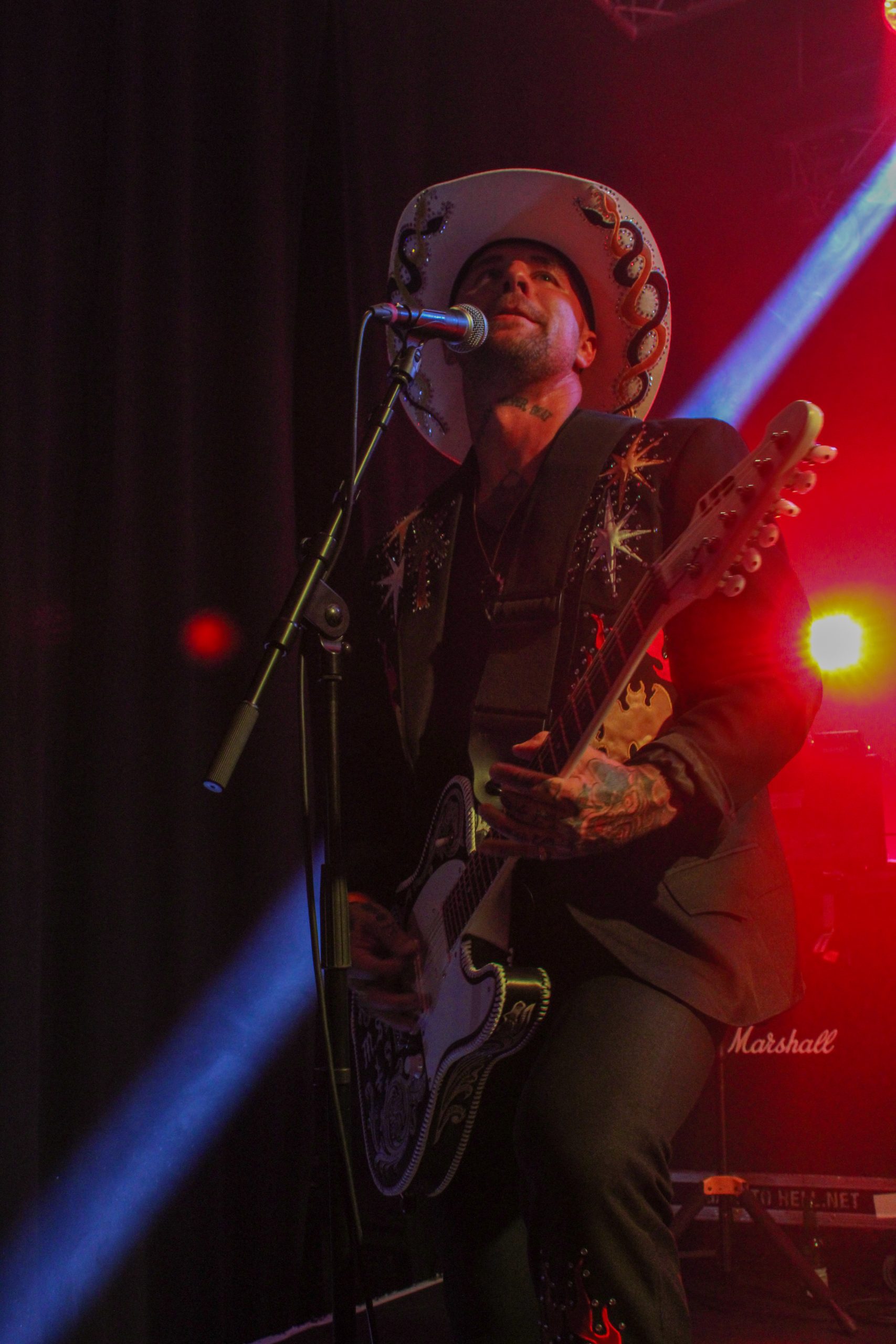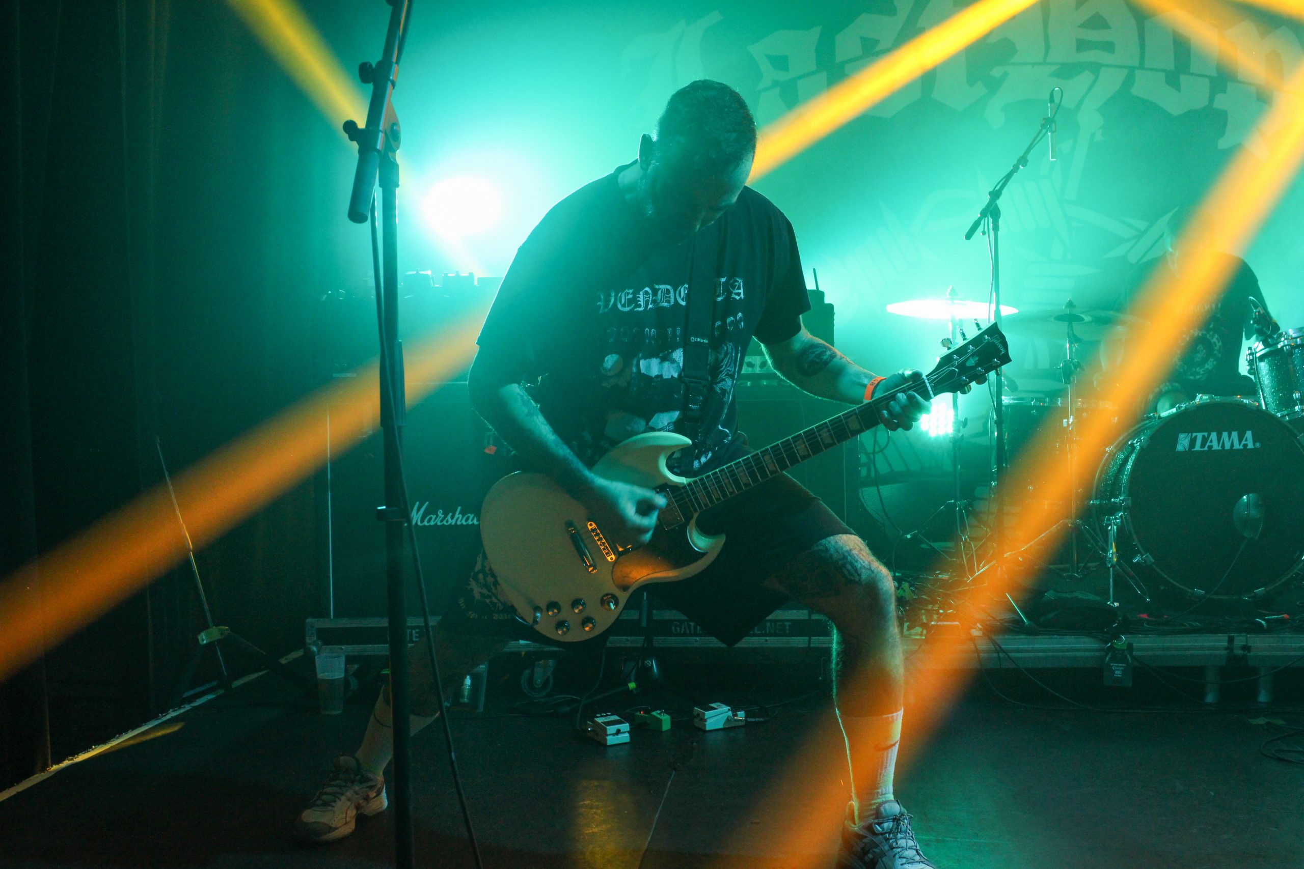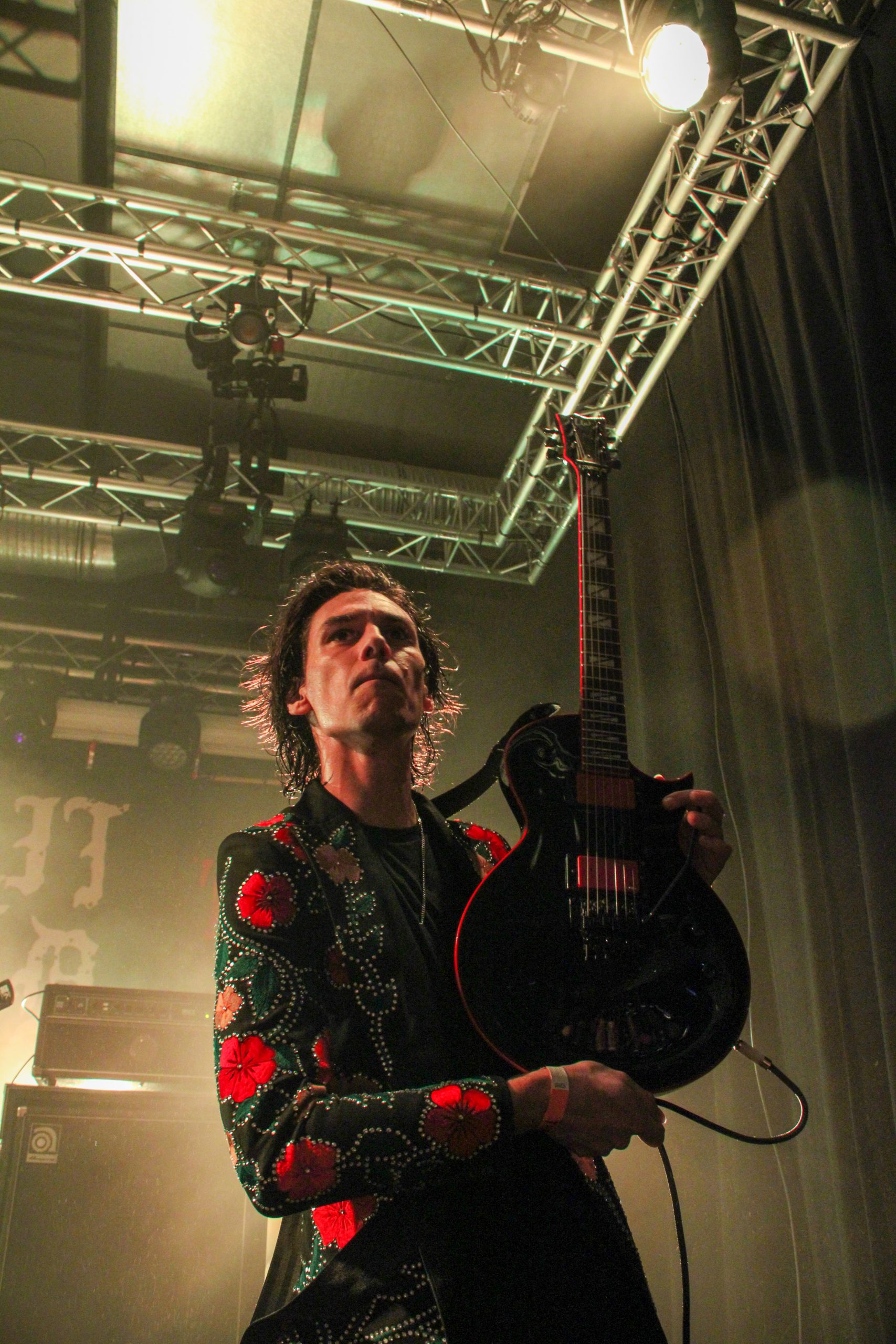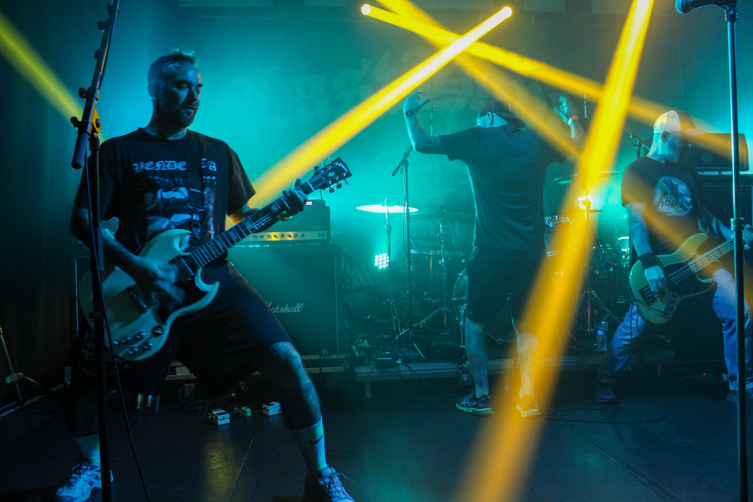 Et c’est parti pour Agnostic Front! D’entrée de jeu les américains envoient leur hardcore imparable, ce qui mettra la fosse en ébullition. L’énergie de Roger Miret (chant) est absolument dingue, il court partout et harangue la foule pour une proximité totale avec le public. Les musiciens ne sont pas en reste et bougent dans tous les sens, de vraies piles électriques! Vinnie Stigma (guitare) a fait son show avec une guitare gonflable dès le début du concert pour amuser la galerie. L’ambiance est excellente, et on sent que tout le monde aussi bien sur scène que dans la salle ou derrière le bar passe une super soirée! Le groupe alterne entre les morceaux de Get Loud! (2019) et des classiques de leur discographie, au grand plaisir des fans présents ce soir. De notre côté c’est notre première fois et clairement on adore passer ce moment avec les américains. Les pits sont incessants et les fans chantent en chœur les paroles. Tout le set est clairement une collection de hits en puissance et les fans se donnent à fond pour que l’ambiance soit inoubliable! La setlist stratosphérique de plus de 25 chansons en laissera plus d’un sur les rotules, mais nous sortons tous de la salle heureux d’avoir vécu cette soirée dans une atmosphère incomparable!