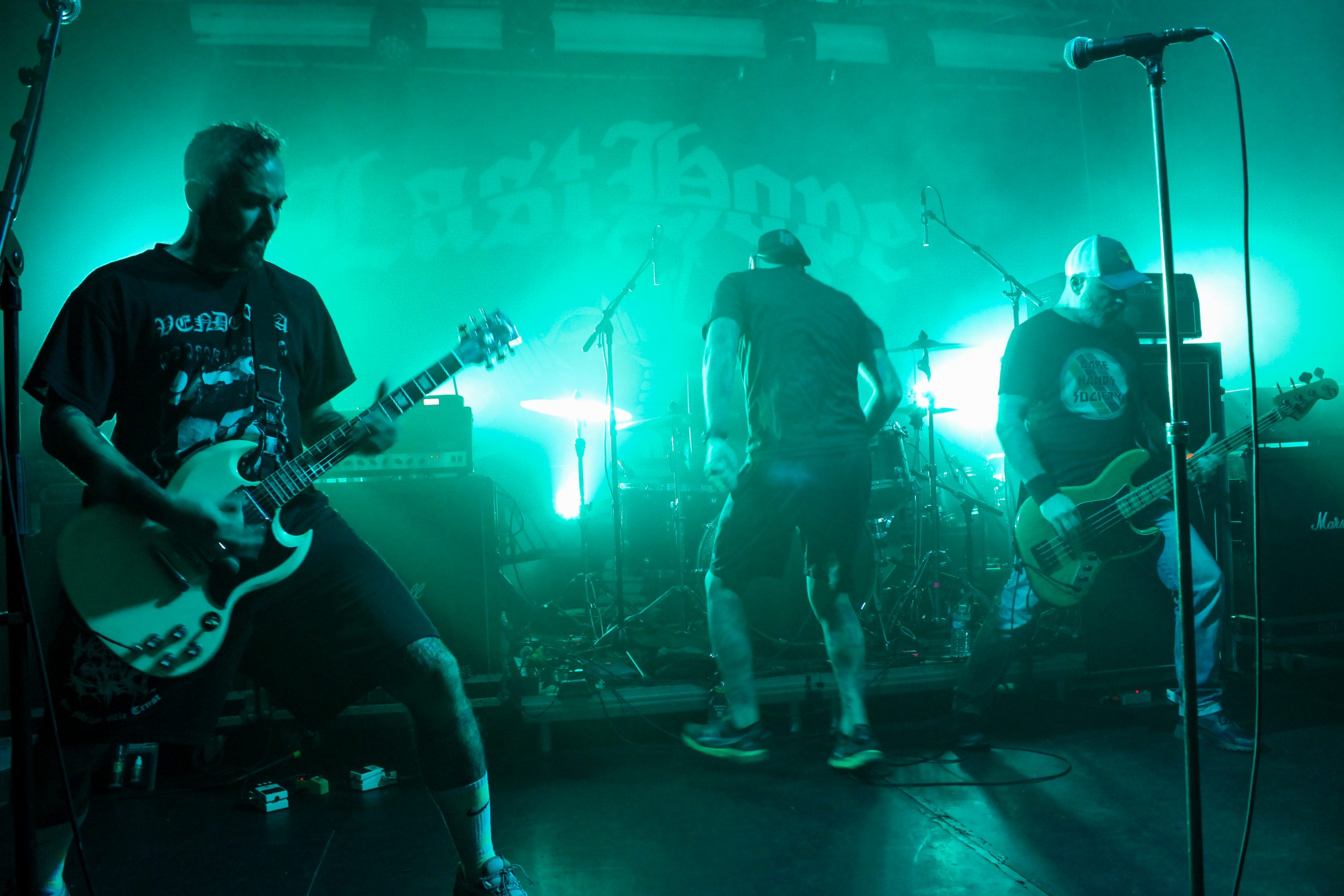 Les bulgares de Last Hope montent sur la scène et nous envoient d’entrée un hardcore d’une efficacité redoutable. Peu connus par chez nous, les musiciens ont quasi trente ans de carrière derrière eux, et ça se sent! Les titres sont implacables et donnent envie de bouger dans le pit. On les sent ravis d’être là ce soir et c’est un plaisir de découvrir leur musique. La bonne humeur est de mise malgré des textes revendicatifs comme il faut! A chaque nouveau morceau joué, le public se jette un peu plus dans la bataille et les sourires sur les visages des musiciens en disent long sur la qualité de la soirée. Pendant le dernier titre de la soirée, le guitariste nous sortira son meilleur « nique la police », en cohérence avec le thème de la composition. Après des applaudissements fournis, le groupe quitte la scène du Black Lab en ayant réussi haut la main leur premier passage dans la région. On espère que cela leur donnera envie de revenir nous voir!