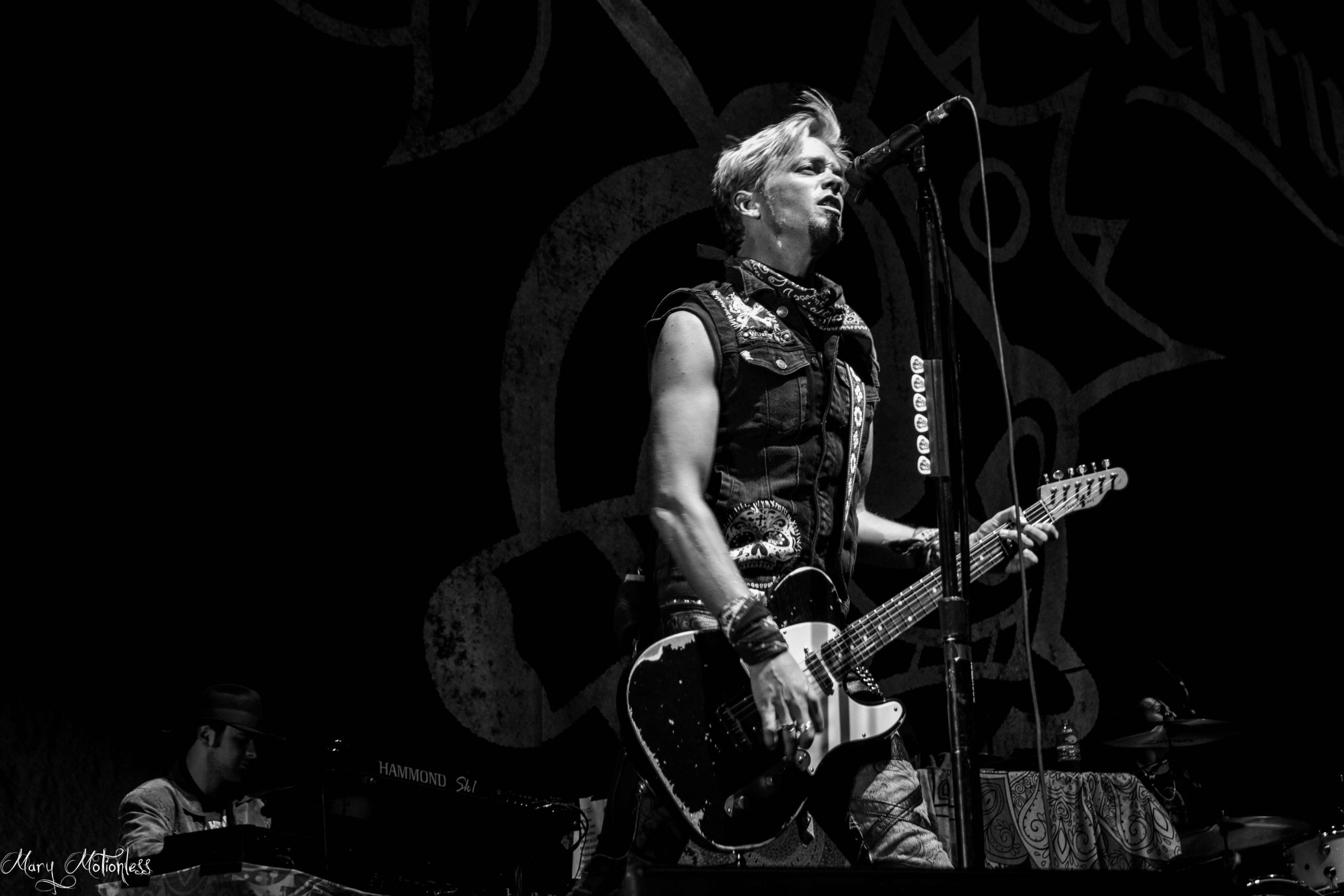 Après le très bon accueil de la salle et avoir retrouvé quelques collègues, nous retrouvons Emilie qui nous conduit au pit photo pour les premiers à monter sur scène ce soir : Black Stone Cherry! Ne connaissant pas vraiment le groupe et n’ayant jeter qu’une oreille distraite à leur dernier album en date « Family Tree » album pour lequel ils sont d’ailleurs en tournée actuellement, je m’apprête à découvrir plus le groupe en live. Et c’est une très bonne surprise! Le groupe commence tout de suite les hostilités avec un titre de « Family Tree » à savoir « Burnin », le son est très propre pour leur performance, le public a l’air réceptif mais n’a pas l’air de connaître le groupe et profite donc calmement du concert en applaudissant chaleureusement entre chaque morceau joué. Mais le peu de fans présents ont l’air ravis de la set-list notamment en entendant les premières notes de « Blame It On The Boom Boom ». Après quelques titres dont une cover de The Jimmy Hendrix Experience « Purple Haze », le groupe nous laisse avec « Family Tree » et partira sous les acclamations du public. Un très bon set et un groupe que je ne manquerais pas de revoir sur scène dès que l’occasion se présentera.