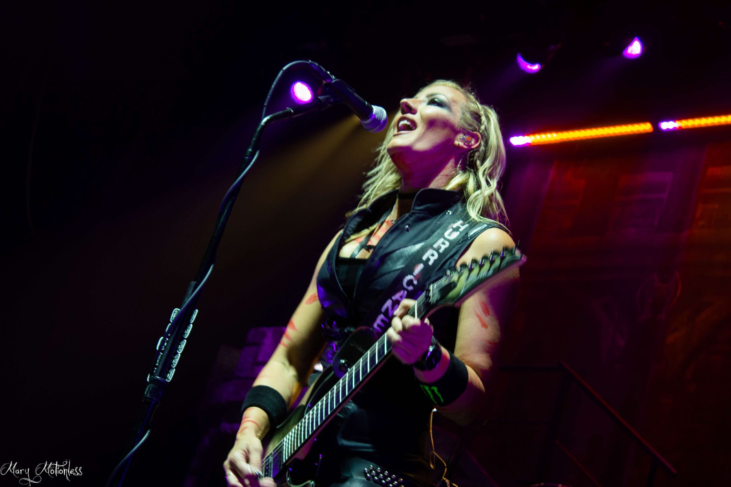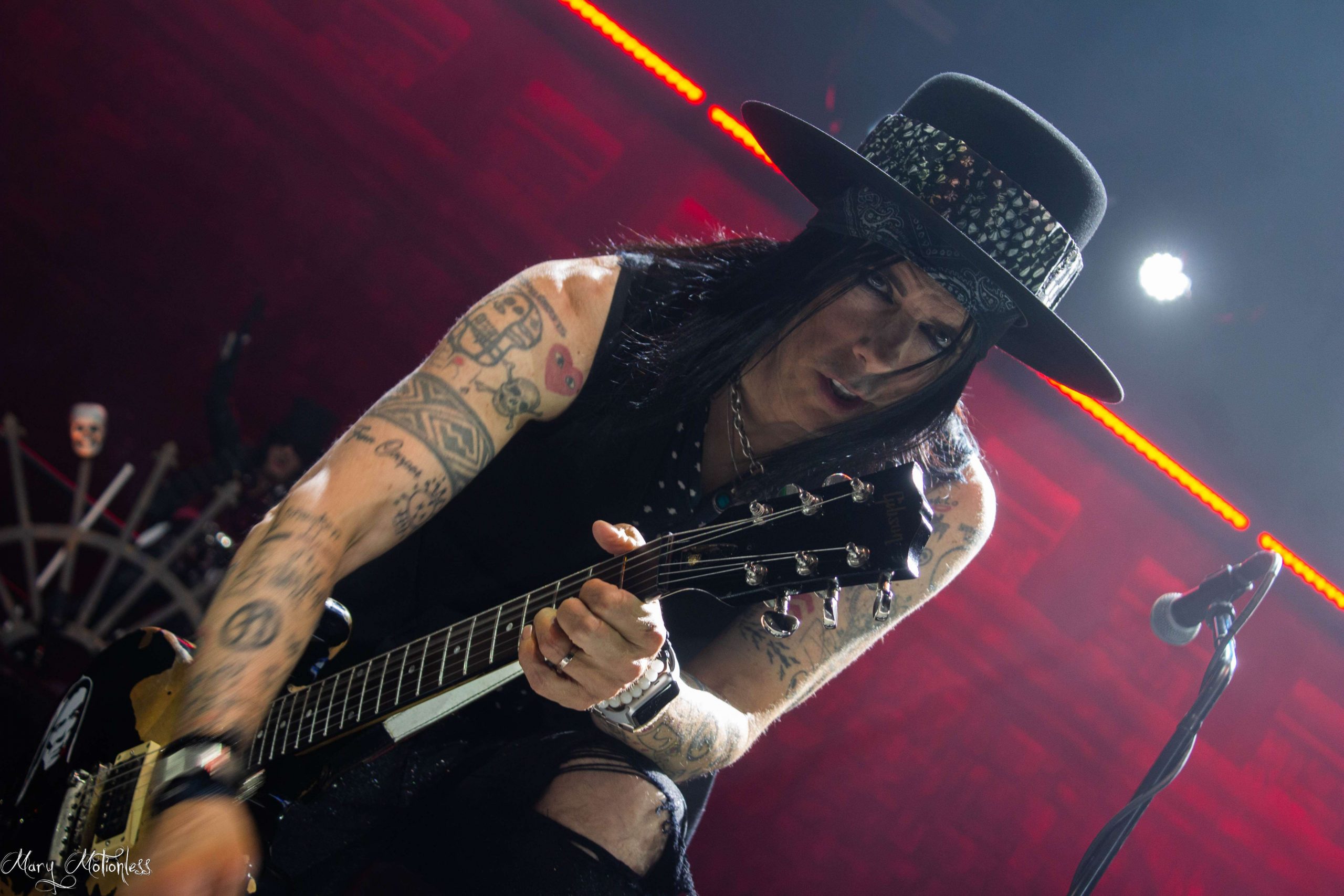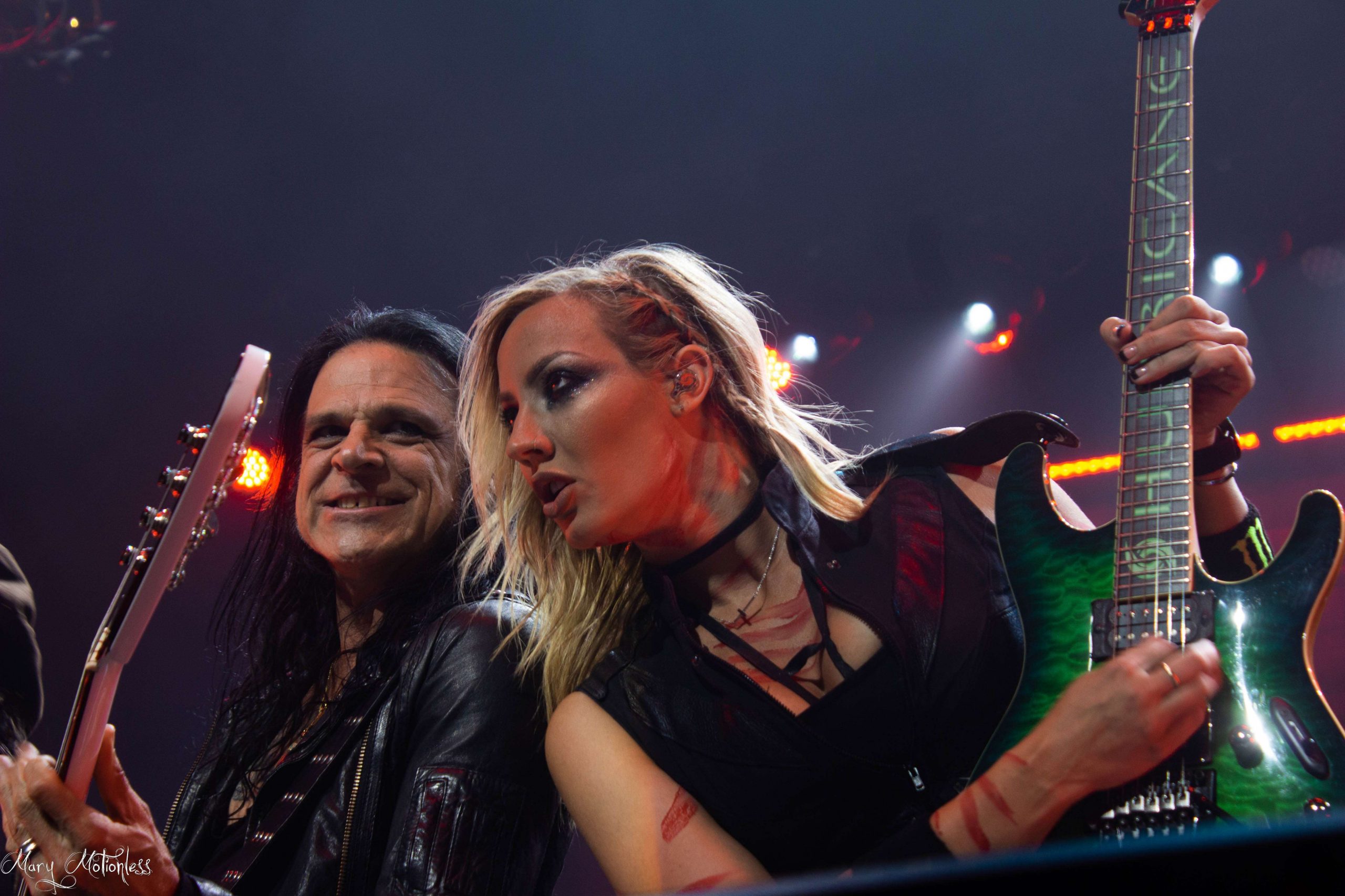 Il est maintenant temps pour Alice Cooper d’investir la scène de l’Arkea devant un parterre de fans déjà bien impatients de voir (ou revoir) Monsieur Cooper sur scène. J’aurais par ailleurs croisé de nombreux fans maquillés comme leur idole. La scène est cachée par un grand rideau blanc qui reprend l’artwork du dernier EP en date « Breadcrumbs » avec uniquement les yeux maquillés du chanteur. Et c’est après une intro qui l’annonce à l’audience que le Maestro fait son entrée en scène avec « Feed My Frankenstein » repris déjà en choeur par le public. Les musiciens qui l’accompagne sur scène sont tous plus talentueux les uns que les autres et on peut reconnaître notamment parmi eux Tommy Henriksen à la guitare qui officie également dans Hollywood Vampires avec Alice Cooper ou encore (Hurricane) Nita Strauss! Le chanteur nous offre un show dantesque dans un superbe décor où s’invite également parfois sa femme déguisée notamment en mariée fantôme. Tout les musiciens profitent également du décor (le château de Frankenstein) pour être bien vus du public ce qui permet à tout le monde de profiter du spectacle pleinement. Le son est propre (tout du moins de mon côté de la salle), la voix d’Alice est bien présente et la set-list du soir est particulièrement intéressante! « Fallen In Love » est le seul titre du dernier album studio présent ce soir, peu de communication de la part du Frontman mais à priori ce n’est pas vraiment ce qu’on lui demande, « I’m Eighteen » toujours repris avec force par la foule, « Billion Dollar Babies » et c’est parti pour le classique « Poison » suivi d’un solo de guitare dantesque par Queen Hurricane Nita! Les musiciens en profitent pour jammer sur l’instrumental « Black Widow » qui permet au chanteur de « s’échapper » de la scène quelques instants avant de revenir pour « Steven » emmitouflé dans une camisole de force mais juste avant on profite d’un superbe drum solo de Glen Sobel! La fin de ce morceau voit arriver une guillotine sur la scène et Alice Cooper se fera donc guillotiner sur scène avant « I Love The Dead » où un bébé géant arrivera sur scène pour jouer avec la tête coupée du chanteur. Alice Cooper revient sur scène avec Frankenstein pour « Teenage Frankenstein » et on sent que c’est bientôt la fin du show après presque 1h15! Il est temps pour le Maître et son groupe de revenir sur scène pour les deux derniers morceaux à savoir « Under My Wheels » et bien sûr « School’s Out » à laquelle s’intègre une partie de « Another Brick In The Wall » des Pink Floyd et il temps pour Alice Cooper de présenter ses musiciens un par un en terminant par Nita Strauss (on avait pas dit les dames d’abord?!?) et sous des applaudissements/acclamations fournis que le groupe quitte la scène, tous sourire aux lèvres.