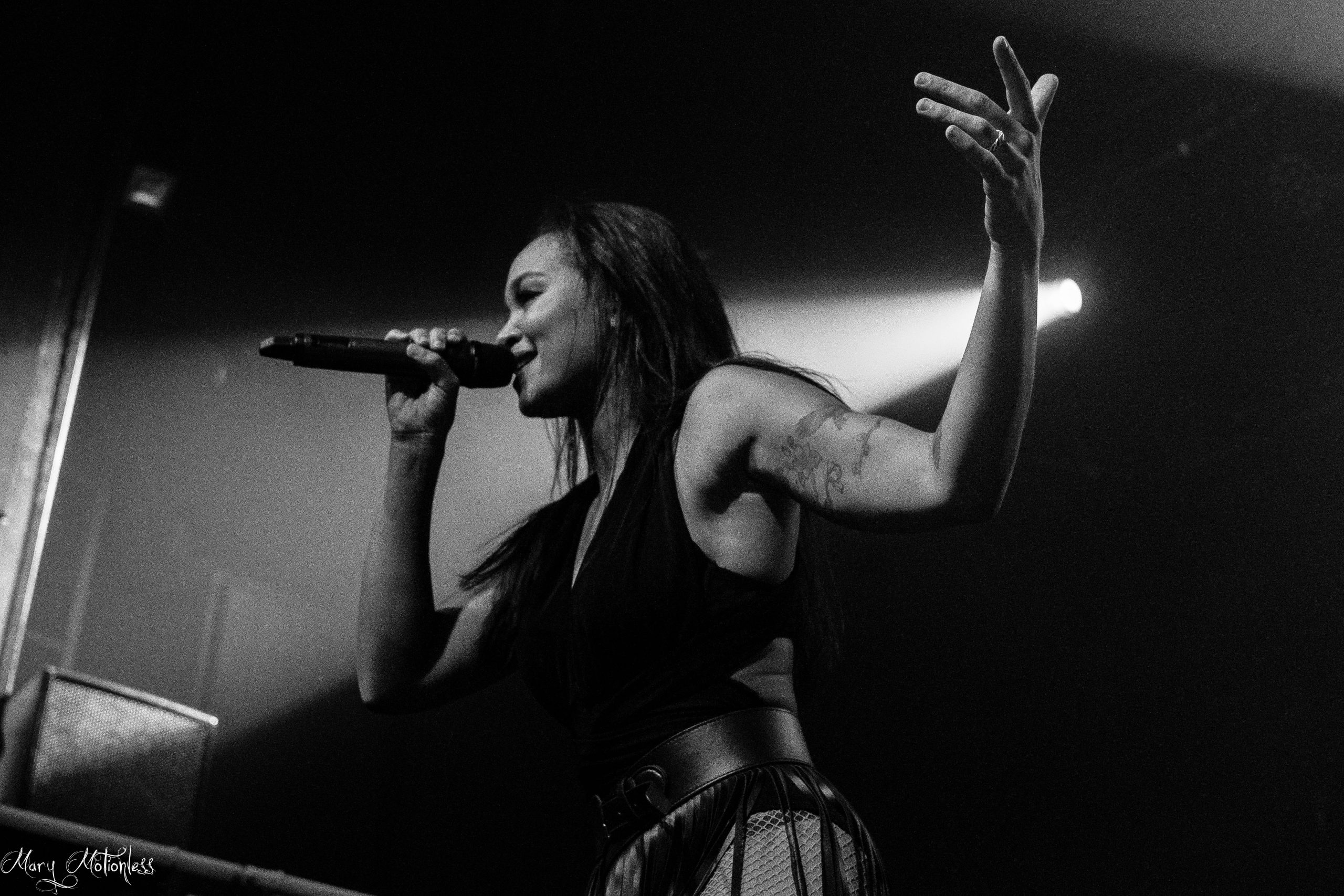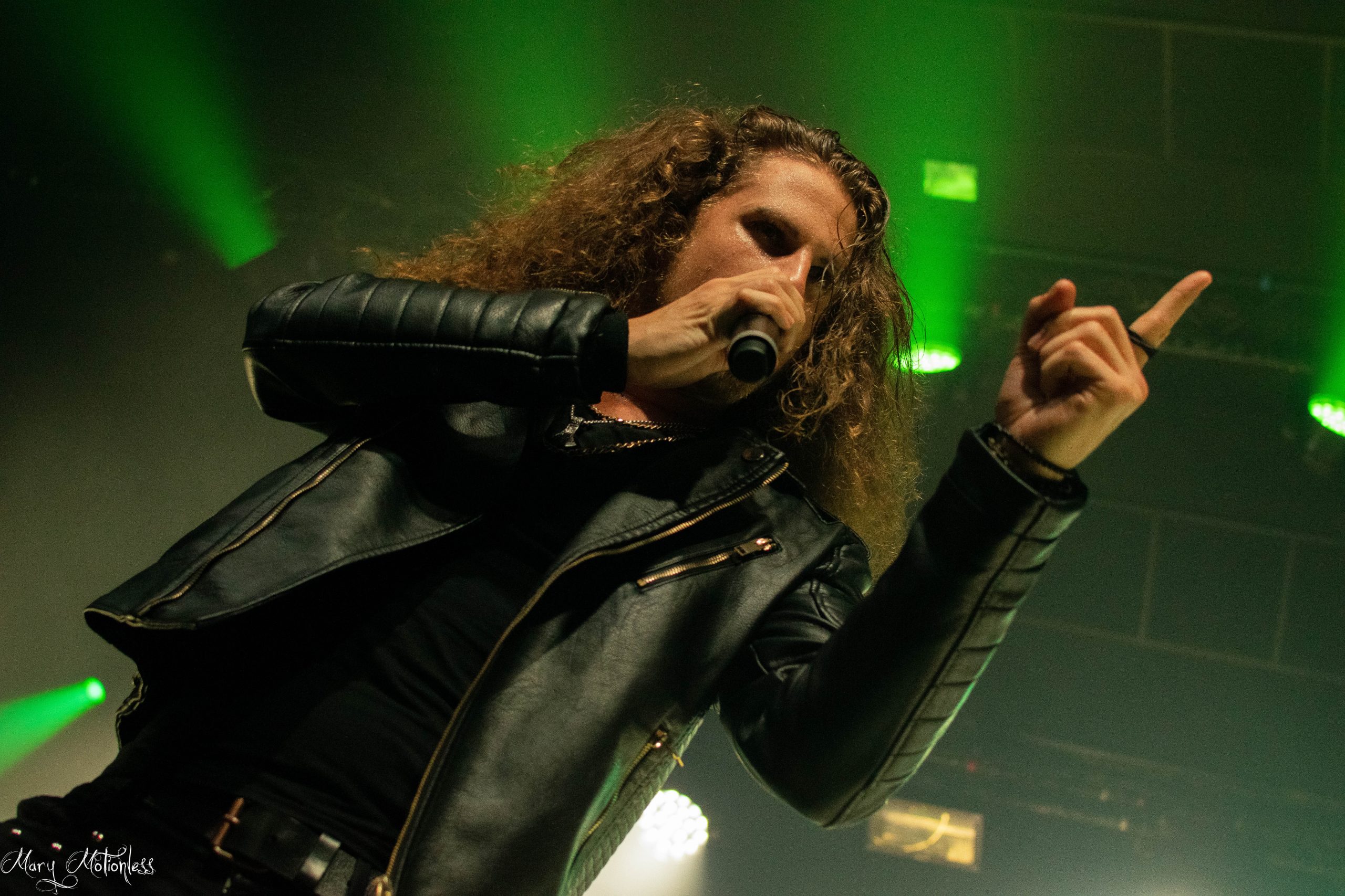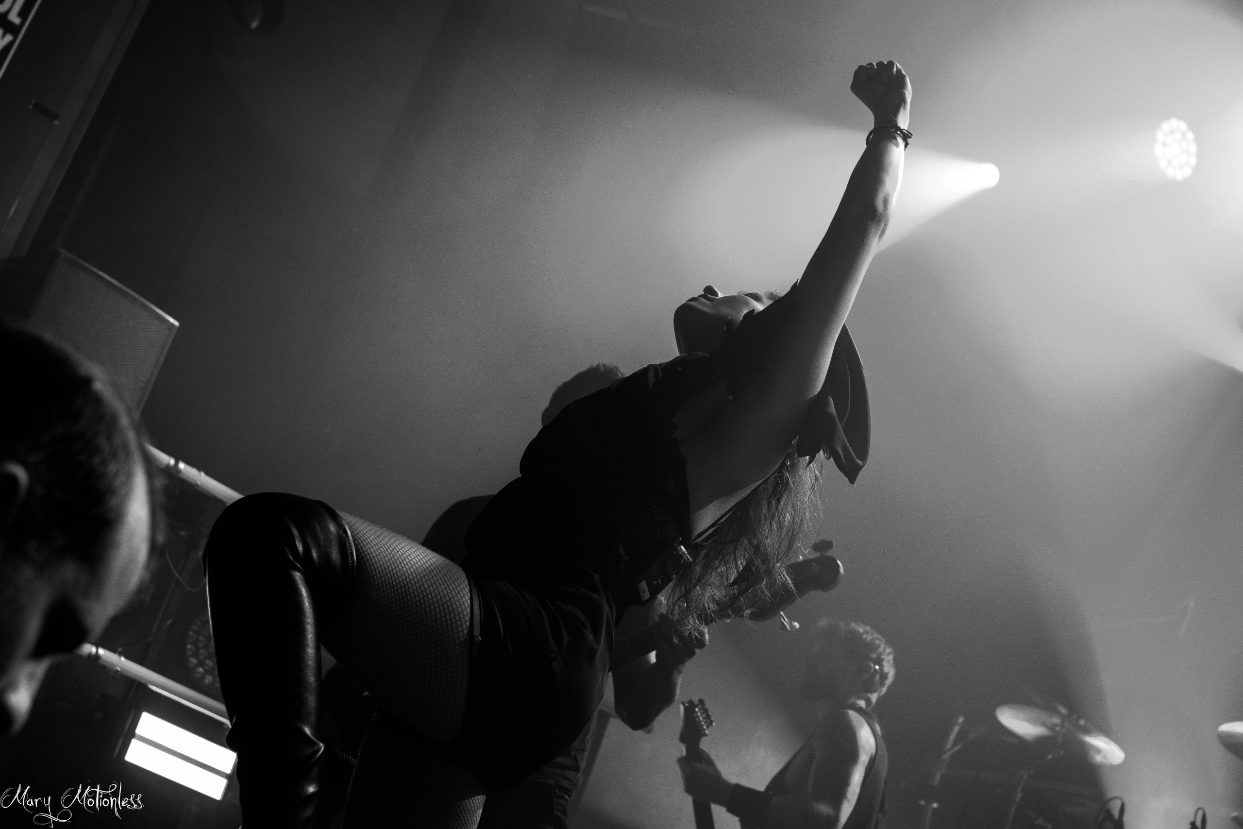 Le premier groupe à ouvrir ce soir, c’est donc le groupe Suisse, Ad Infinitum. Et malheureusement dès le début, ça pêche un peu au niveau du son surtout au niveau de la voix de Melissa Bonny, on peine vraiment à entendre la voix de la chanteuse même en se déplaçant à plusieurs endroits dans la salle. Mais heureusement, ça n’enlève rien au potentiel du groupe qui a l’air d’avoir déjà conquis des fans dans les premiers rangs, certains ayant fait plusieurs heures de route pour cette date. Au niveau de la set-list, le groupe se concentrera notamment sur les nouveaux titres comme Upside Down et Somewhere Better (qui seront disponibles sur le prochain album annoncé pour l’année prochaine) mais également sur le dernier album en date Chapter II – Legacy pour preuve Unstoppable sera joué en début de set et ce sera Animals qui viendra clôturer ce premier set, Ad Infinitum repartira avec le sourire et des applaudissements chaleureux du public présent. (Mary)