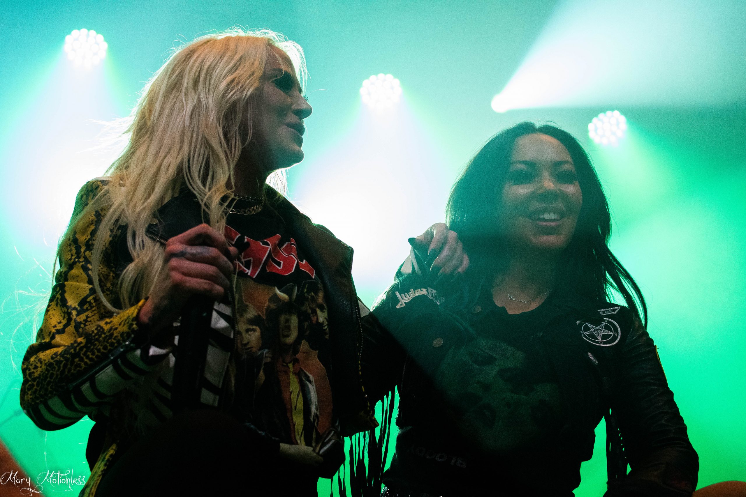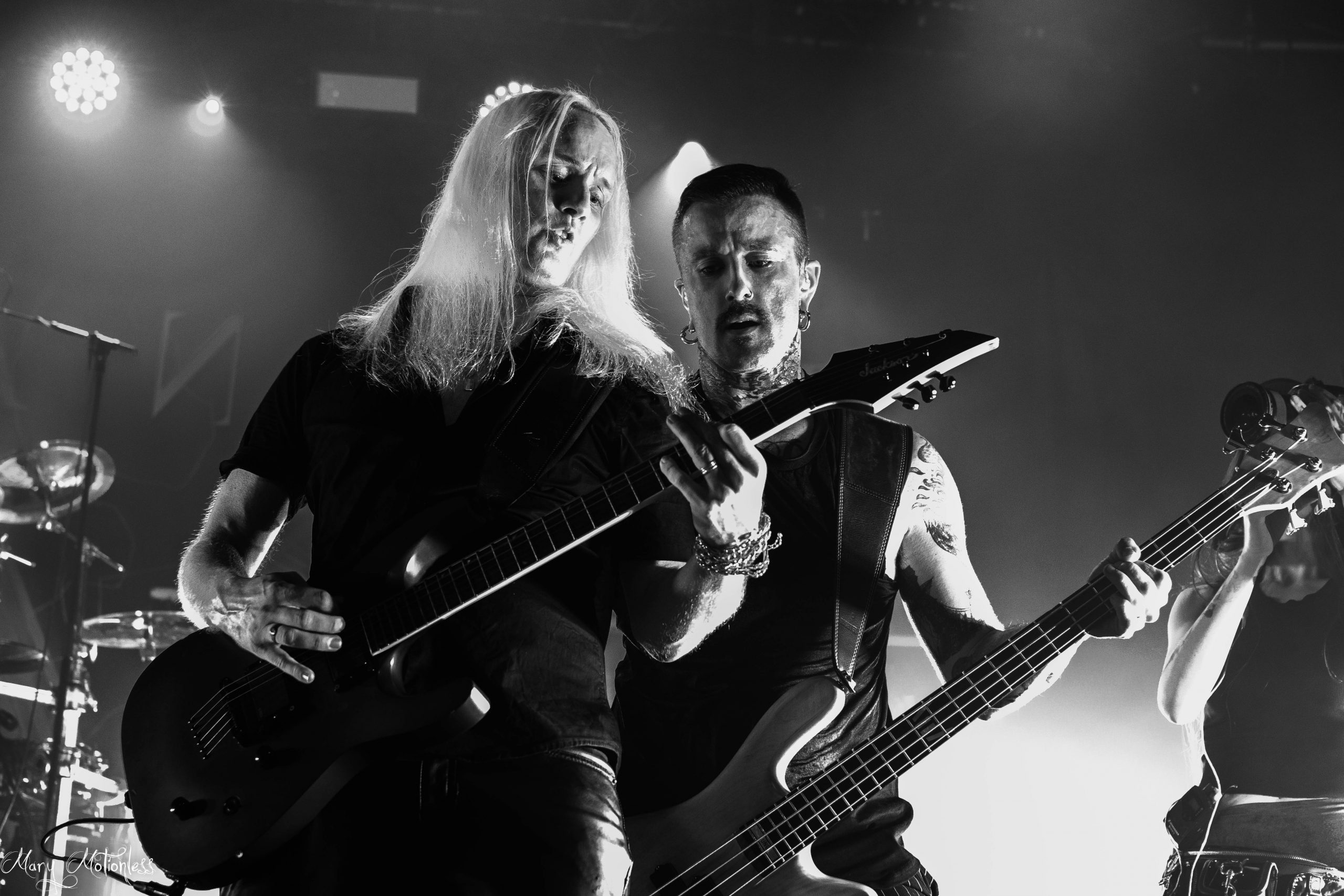 Après une courte pause, Butcher Babies prennent place sur scène! Les Américains menés d’une main de maître (ou plutôt devrais-je dire de Maîtresse) par Heidi Sheperd et Carla Harvey sont très en forme ce soir et envoie directement Korova ! Heidi est littéralement déchaînée, harangue le public tout le long du set et est hyper communicative entre les titres. Un plaisir à voir tout comme Carla qui semble plus en retrait mais très souriante et scream ma foi fort bien. Le groupe remonte quelque peu dans mon estime après une performance au Hellfest en 2015 qui m’avait fortement déçue. Les musiciens sont vraiment efficaces et renvoient une énergie folle au public qui n’a pas l’air de vouloir bouger plus que ça (ce soir pas de pogo, pas de wall of death et autres circle-pit, Bordeaux est bien calme). Heidi présente leur nouveau titre, une cover de la rappeuse Saweetie , Best Friends , en demandant qui dans la salle est venu avec son/sa meilleure amie, plusieurs mains timides se lèvent, ce qui donne le sourire à la chanteuse qui présente Carla comme étant sa meilleure amie/son âme soeur, la cover est plutôt cool à écouter et la complicité/sororité sont probablement les maîtres-mots de la soirée et c’est très agréable d’avoir ce genre de concerts en France. Butcher Babies concluront leur set avec le classique Magnolia Blvd. et seront tout comme Ad Infinitum chaudement acclamés par le public. (Mary)