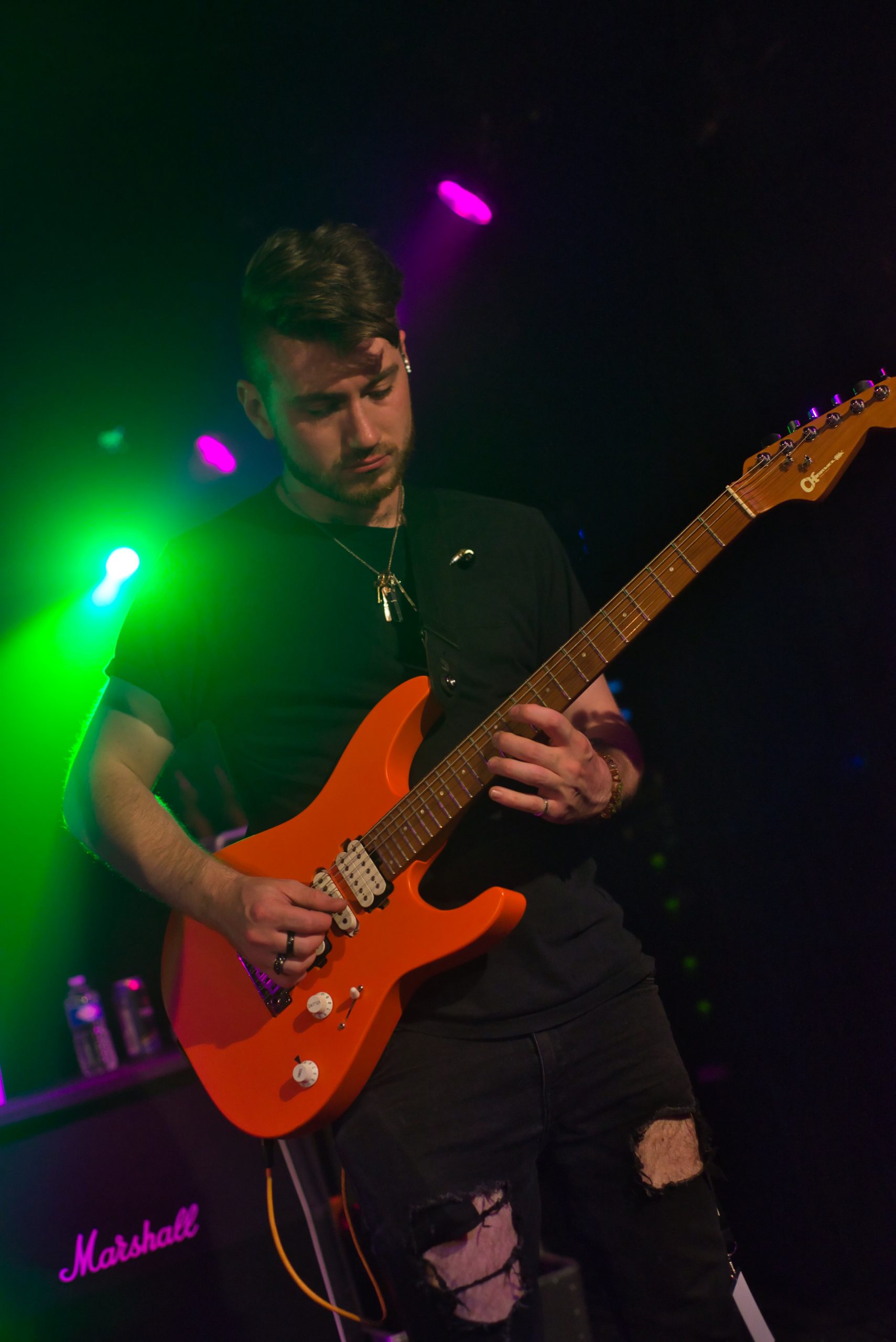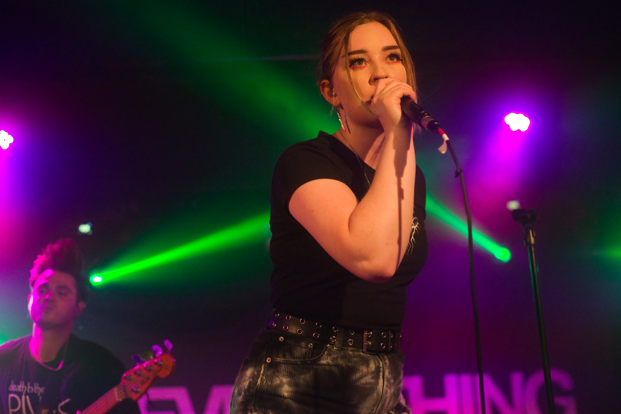As Everything Unfolds sont les premiers à se jeter à l’eau. Et ce n’est pas peu dire, puisque c’est leur première prestation outre-Manche. C’est donc avec « Take Me There » que les britanniques s’élancent sur les planches du Backstage. Leurs morceaux sont entrainants et leur énergie est communicative (notamment celle du claviériste Jon Cassidy qui a bien trop d’énergie pour un lundi soir) si bien qu’on ne peut pas ne pas être happés par cette vague alternative. Charlie, au chant, mène la barque avec brio : sa voix puissante, son chant juste, sa capacité à aller du chant clair au growl sans difficulté, mais également sa présence scénique, en font une vocaliste au grand potentiel, qui pourra les mener loin. Nous naviguons à travers leurs univers à bord d’une setlist entièrement issue de leur album Closure. On y retrouve « Hiding From Myself », « Stay », « Grayscale », « Wallow », et leur titre le plus connu, « On The Inside » pour mettre les voiles. Le sextuor aura sans aucun doute conquis des coeurs ce soir de par leur prestation humaine, entière, à l’image de ses membres humbles et travailleurs. Une première escale qui valait donc le détour, et les tous de salles dans les circle pits et pogos qu’ils ont su créer.