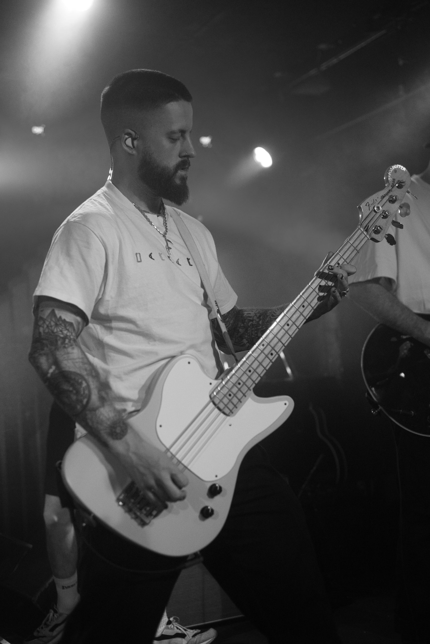 C’est la première fois que la formation peut défendre ses nouveaux titres en live, et nous sentons qu’ils en vivent chaque instant de manière très intense. Le vocaliste laisse parfois percevoir des petites hésitations passagères dans son chant, comme s’il était submergé par l’émotion ou le trac, mais cela ne rend que le moment plus intense et authentique. Bien que le chant de sirène de Tobi séduit l’audience, l’équipage est majoritairement constitué de fans de la première heure, qu’ils reconnaissent pour certains. Ainsi, ils ont prévu leur bouée de sauvetage, et la formation nous fait dériver vers des horizons plus familiers tels que Crown Shyness avec « Shade », « Controlled Burn » et « Old Soul ». La ferveur générée par ces morceaux déclenche un véritable tsunami dans la fosse, mais ce n’est rien à côté de ce que provoque la belle cargaison de titres issus de Nothing I Write You Can Change What You’ve Been Through : « Brave Face », « Trying Quarry » et bien sûr l’incontournable « Strangers » pour nous faire chavirer. Il est difficile de garder le cap au milieu de cette houle qui retourne le Backstage. Notre épopée se conclue sur « He’s So Good », pour un dernier message de tolérance, prônant l’inclusivité. En espérant que les bonnes ondes puissent se propager hors de ce bâtiment.