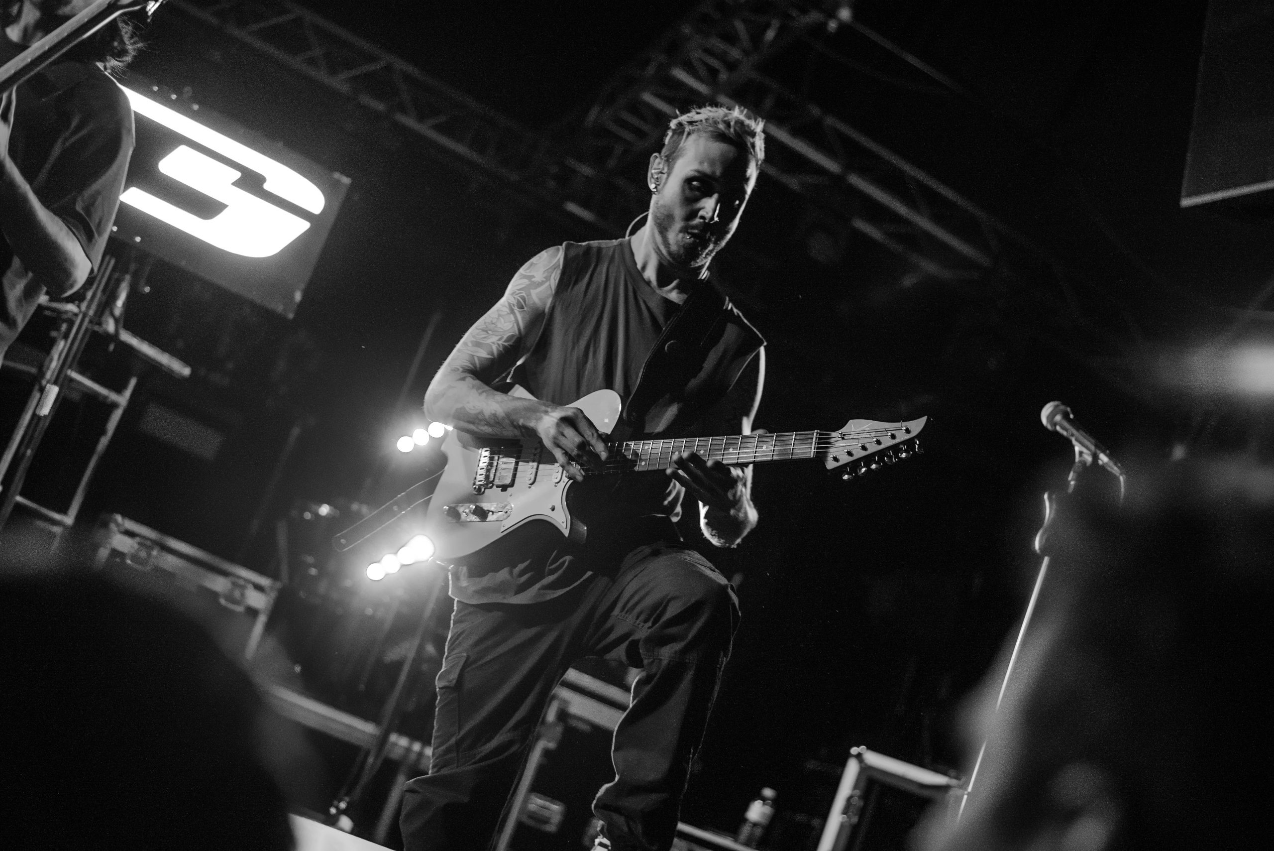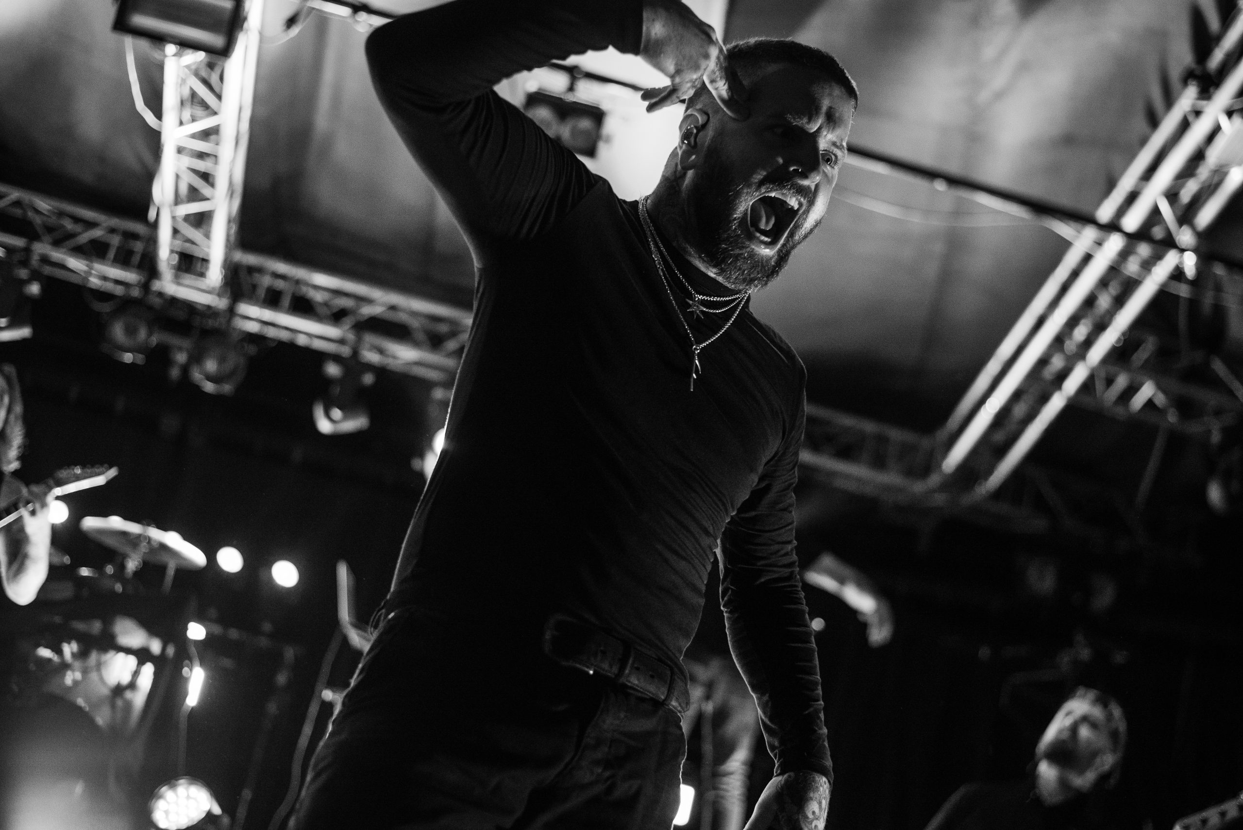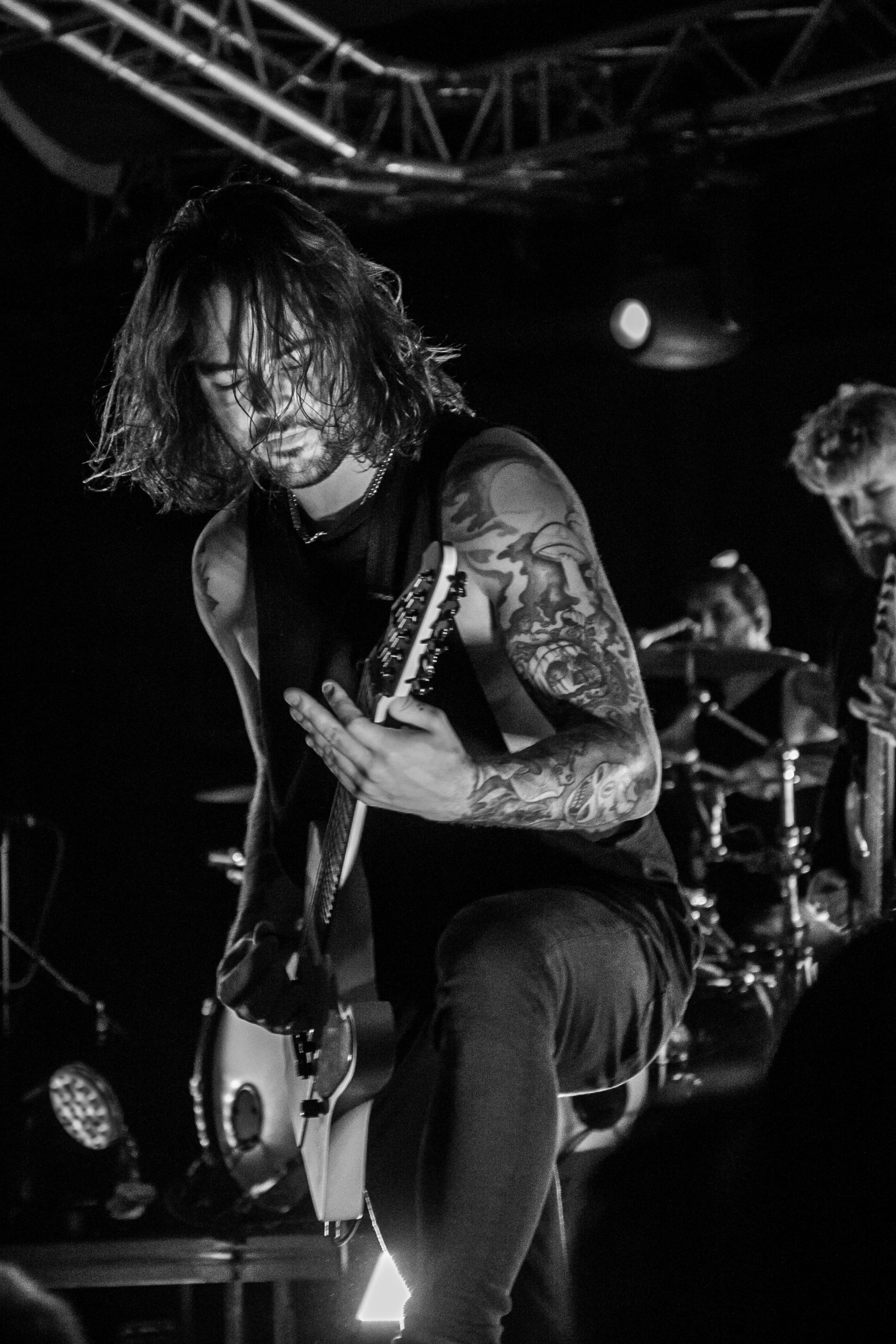 Novelists sont les premiers auteurs de l’épisode de ce soir. Le premier chapitre intitulé « Do You Really Know ? ». Et d’entrée de jeu, le public se prend au jeu. C’est le genre de livre qu’on dévore sans se faire prier. A mesure qu’ils écrivent les notes, la salle s’anime. Dans la fosse, ça se bouscule, pour se sentir au plus proche des protagonistes. Les nouvelles s’enchaînent, mais ne se ressemblent pas. Aucun risque d’avoir un sentiment de Déjà Vu en parcourant leurs pages, malgré la setlist constituée exclusivement de cet album, tant les garçons sont à part. Les prodiges de l’écriture jouent avec les genres, entre un chant lourd, des riffs tranchants, une batterie percutante et des envolées de notes djentesques, à l’instar du solo de Pierre Danel sur « Smoke Signals ». Et pourtant, leurs morceaux ont quelque chose de familier, gardant des codes du metalcore. Ce qu’ils écrivent transportent le public dans un autre monde. Leurs gammes chiadées sont pleines de poésie, comme la sublime « Erre », et chaque nouvelle page est un univers à elle-même, chaque titre raconte une nouvelle histoire. Et cette dernière est bilingue : tandis que le chanteur allemand Tobis Rische s’exprime en anglais, les autres membres s’adressent à l’audience en français, et en profitent pour glisser une petite morale en fin d’histoire : ici, c’est un lieu safe, et il faut que cela reste ainsi. L’énergie qui se dégage de leur set et de leur performance est positive, chaleureuse. A Bitter End ? Non, bien au contraire. « Lost Cause » vient conclure de manière sublime cette première partie de la soirée. Un live de Novelists, c’est finalement comme ce livre que l’on ressort pour le relire encore et encore en cas de coup de mou.