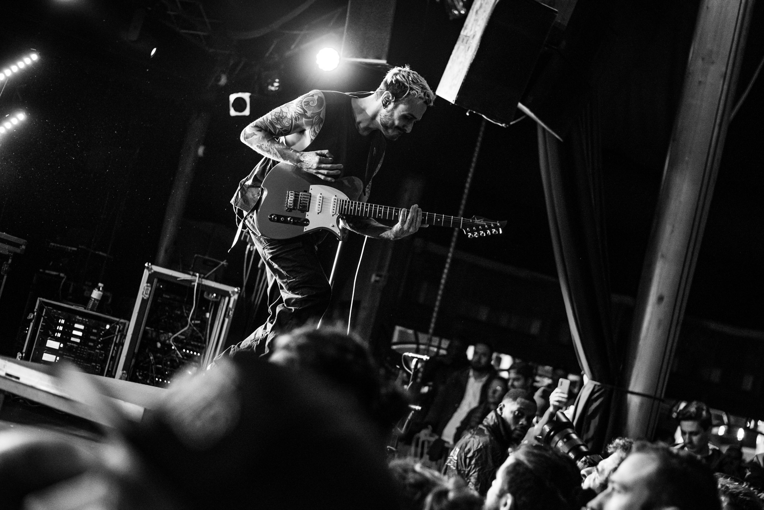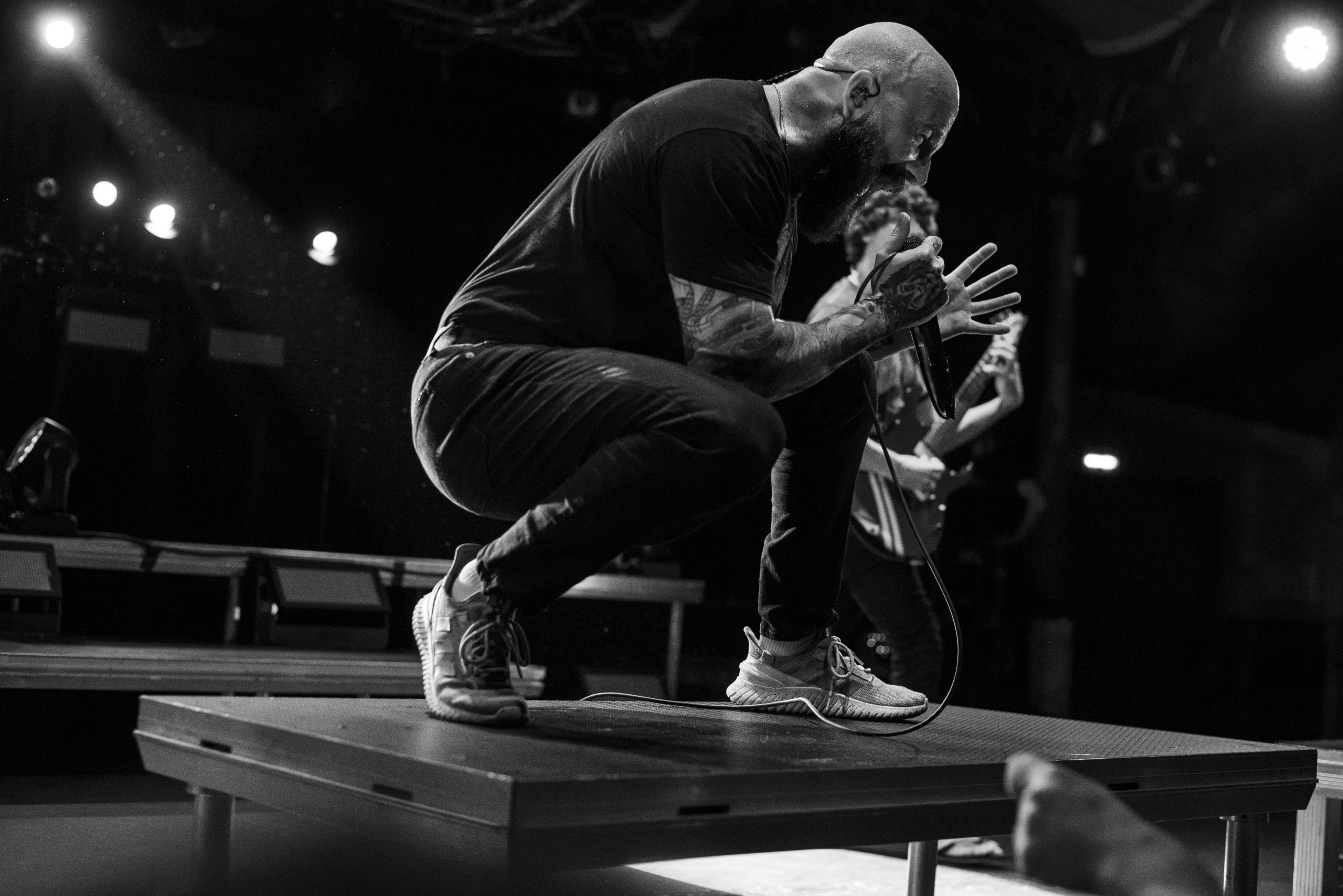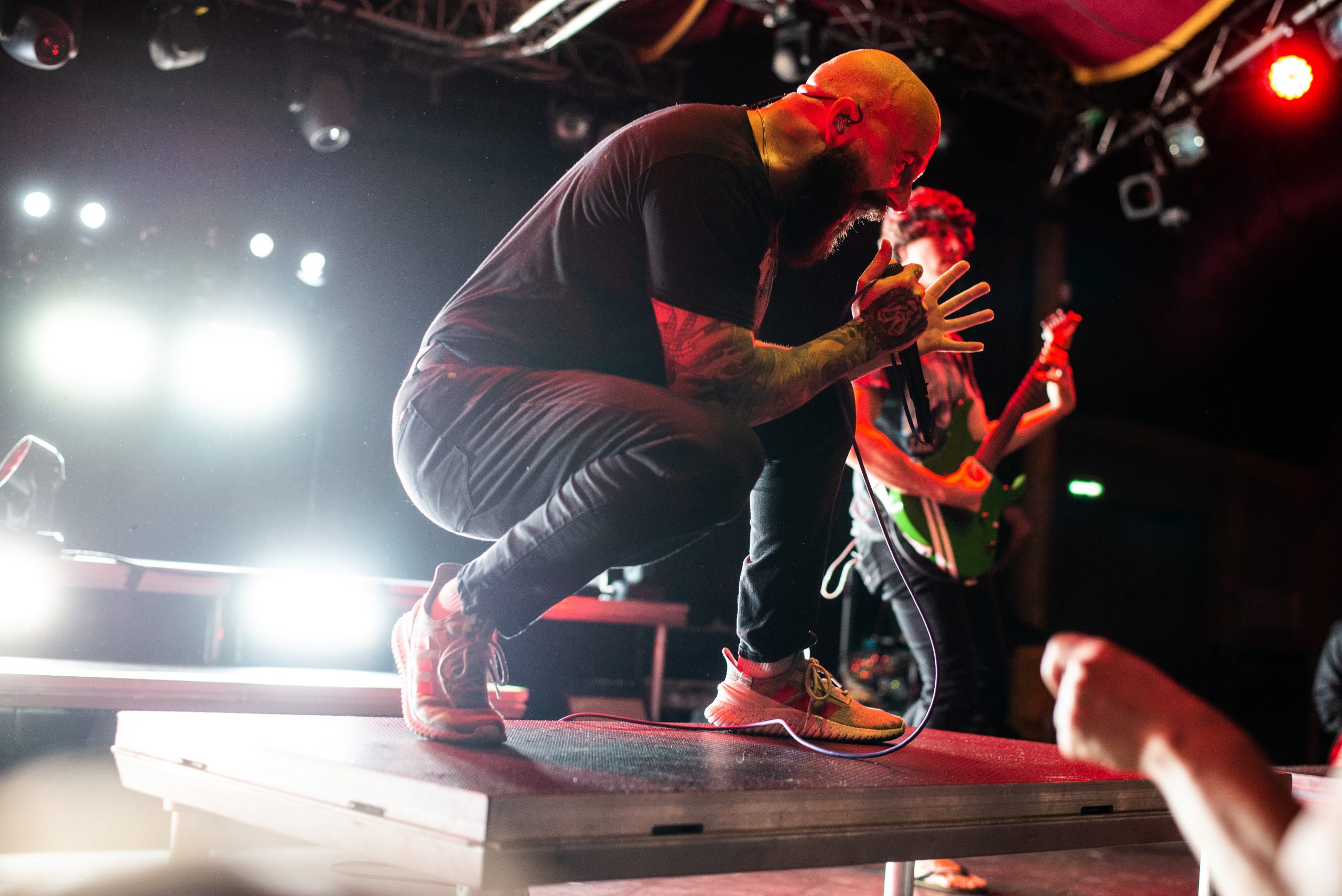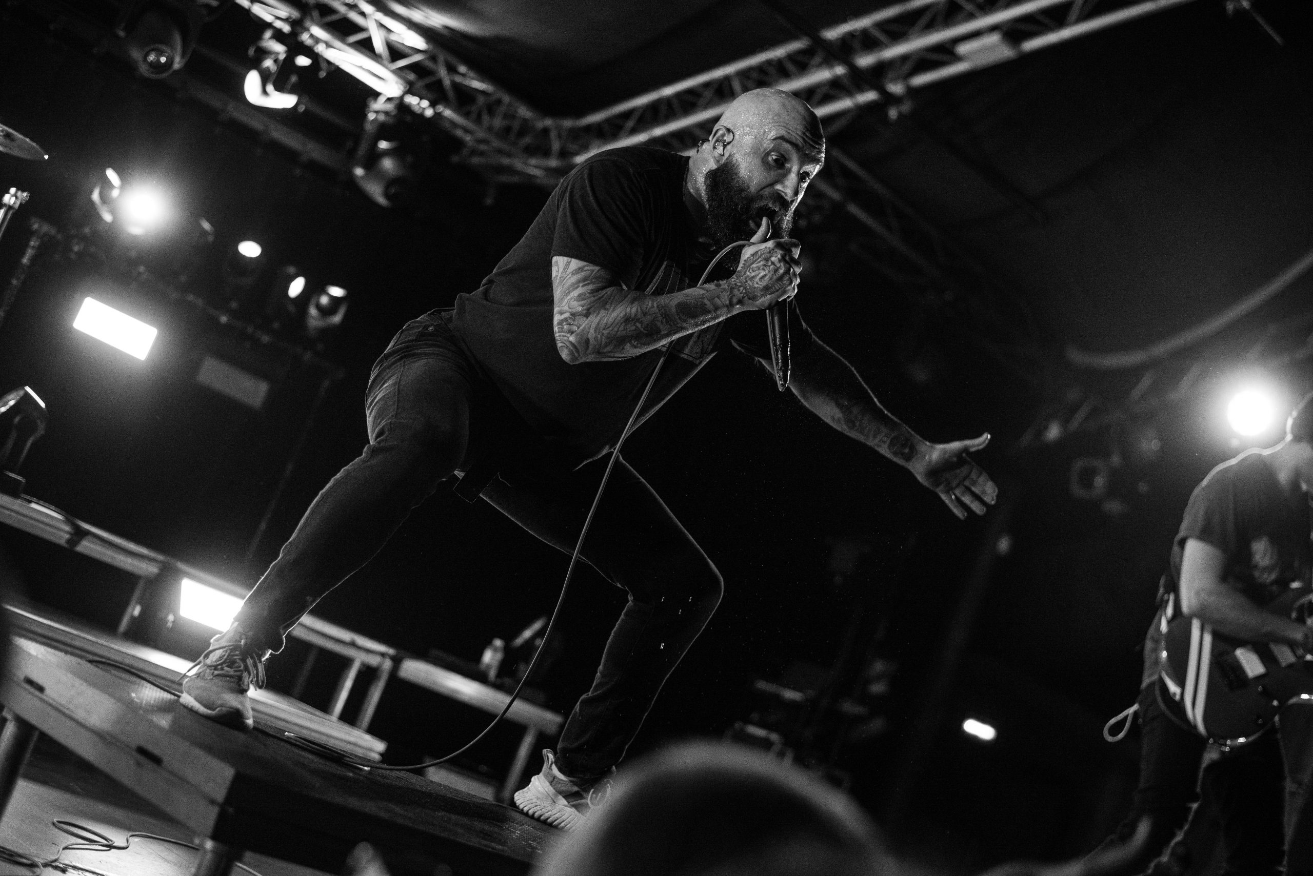 Novelists sont les premiers auteurs de l’épisode de ce soir. Le premier chapitre intitulé « Do You Really Know ? ». Et d’entrée de jeu, le public se prend au jeu. C’est le genre de livre qu’on dévore sans se faire prier. A mesure qu’ils écrivent les notes, la salle s’anime. Dans la fosse, ça se bouscule, pour se sentir au plus proche des protagonistes. Les nouvelles s’enchaînent, mais ne se ressemblent pas. Aucun risque d’avoir un sentiment de Déjà Vu en parcourant leurs pages, malgré la setlist constituée exclusivement de cet album, tant les garçons sont à part. Les prodiges de l’écriture jouent avec les genres, entre un chant lourd, des riffs tranchants, une batterie percutante et des envolées de notes djentesques, à l’instar du solo de Pierre Danel sur « Smoke Signals ». Et pourtant, leurs morceaux ont quelque chose de familier, gardant des codes du metalcore. Ce qu’ils écrivent transportent le public dans un autre monde. Leurs gammes chiadées sont pleines de poésie, comme la sublime « Erre », et chaque nouvelle page est un univers à elle-même, chaque titre raconte une nouvelle histoire. Et cette dernière est bilingue : tandis que le chanteur allemand Tobis Rische s’exprime en anglais, les autres membres s’adressent à l’audience en français, et en profitent pour glisser une petite morale en fin d’histoire : ici, c’est un lieu safe, et il faut que cela reste ainsi. L’énergie qui se dégage de leur set et de leur performance est positive, chaleureuse. A Bitter End ? Non, bien au contraire. « Lost Cause » vient conclure de manière sublime cette première partie de la soirée. Un live de Novelists, c’est finalement comme ce livre que l’on ressort pour le relire encore et encore en cas de coup de mou.