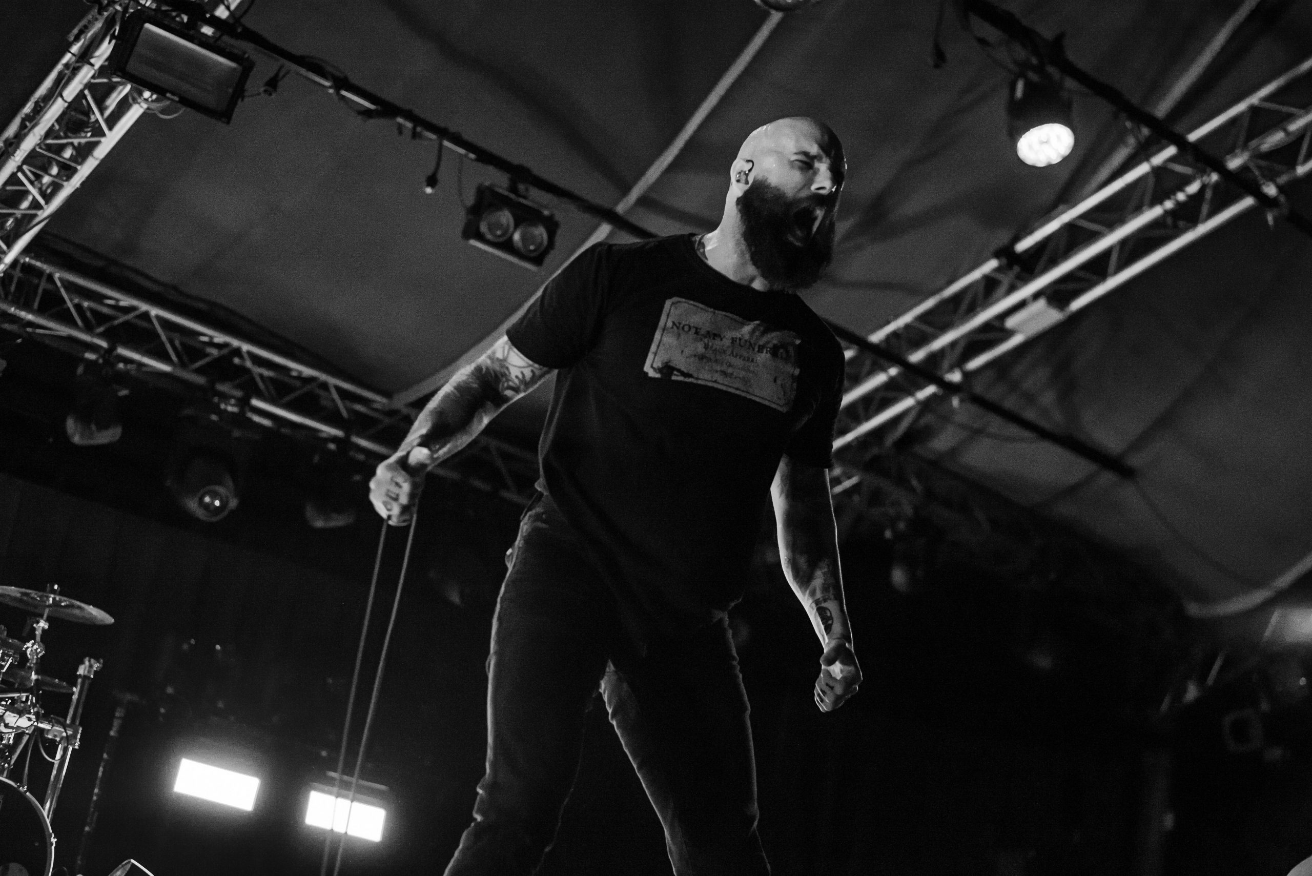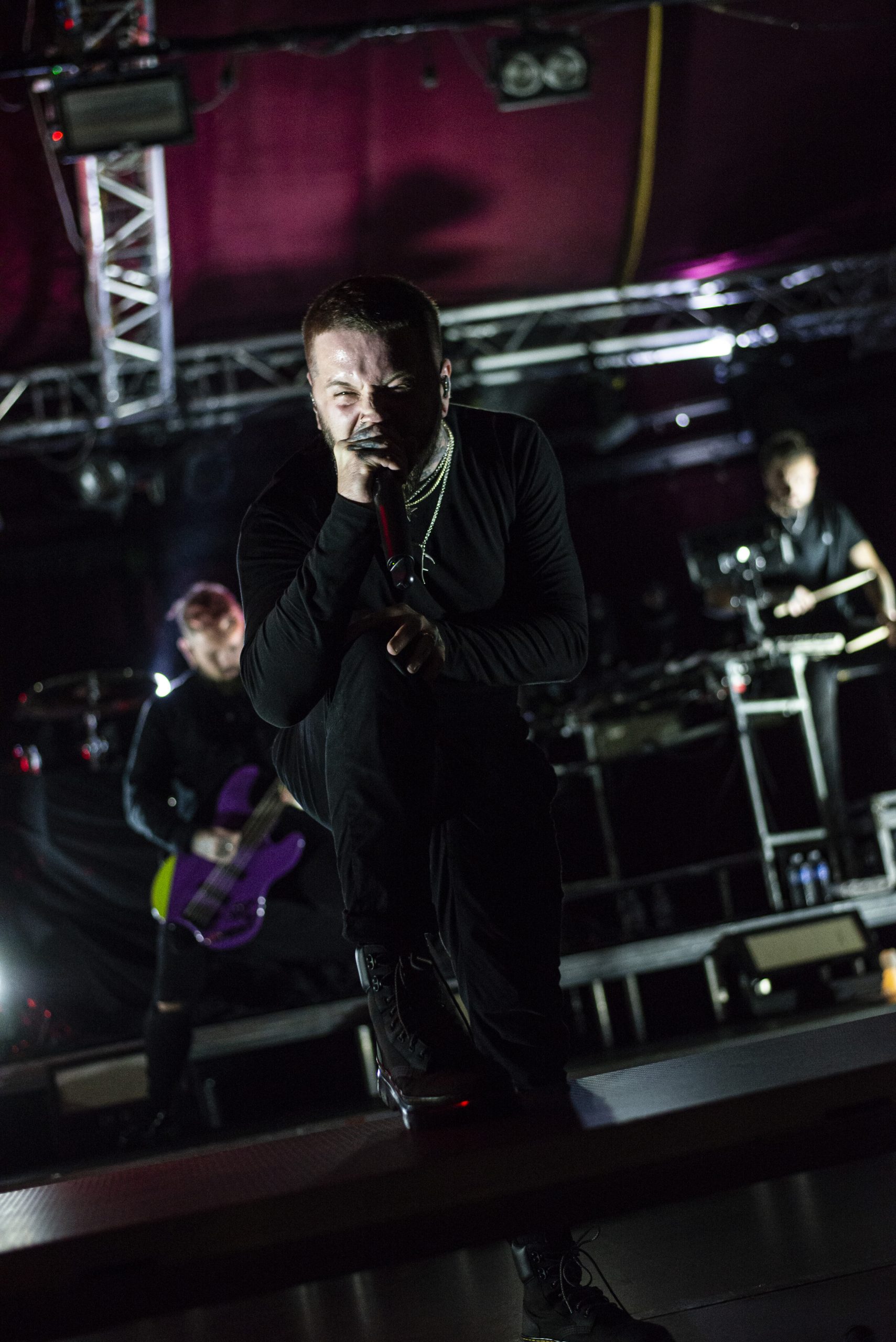 Sur le rayon au dessus, nous piochons le second épisode de la soirée, intitulé Bury Tomorrow. Dans un genre totalement différent, les anglais sont désormais des auteurs renommés, avec des sorties récentes telles que « Black Flame » et « Canibal » qui attendaient de faire leurs preuves sur nos étagères. La bande à l’origine de ces essais ayant changé, leur venue est également l’occasion de rencontrer Tom Prendergast au chant clean, et Ed Hartwell à la guitare rhytmique pour remplacer Jason Cameron. Les britanniques nous proposent un roman policier, débutant par des corps étouffés (Choke). Cette suffocation serait due à une flamme noire (Black Flame) dont on recherche l’origine. Les personnages sont face à cette scène apocalyptique de corps entassés, un véritable cimetière (Cemetery), après avoir été chahutés, battus, avant d’être jetés dans une fosse. On sent que l’énergie était à son comble, que tous se sont battus jusqu’à leur dernier souffle. Tout au long du récit, nous oscillons entre la vie / « LIFE (Paradis Denied) » et la mort / « DEATH (Ever Colder) ». Nous retrouvons de sublimes scène iconiques telles que celle de Earthbound et Better Below. Mais l’enquête ne s’arrête pas là, puisque nous y découvrons un fait bouleversant : un cas de cannibalisme (Cannibal). Les auteurs nous mènent dans un univers sombre, empreint de terreur, et pourtant avec une forme de bonne humeur, de légèreté déroutante, et surtout une grande bienveillance, en reprenant la demande de Novelists sur le safe space. Leur livre dégage une énergie folle, et il est difficile de s’arrêter dans notre lecture. Pourtant, alors que nous savourons le dernier chapitre et nous apprêtons à découvrir le fin mot de l’enquête, le set s’arrête, tel un cliffhanger.