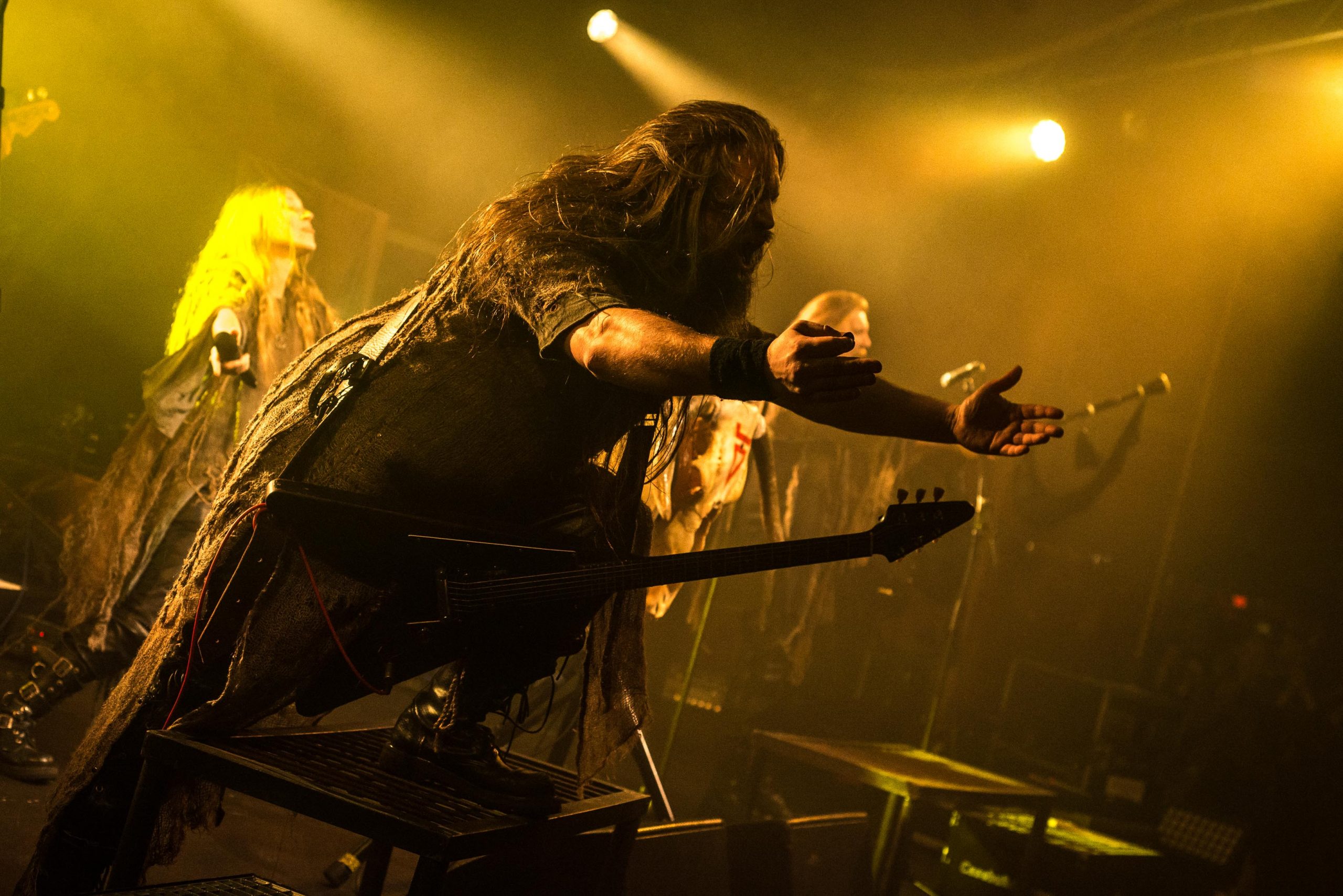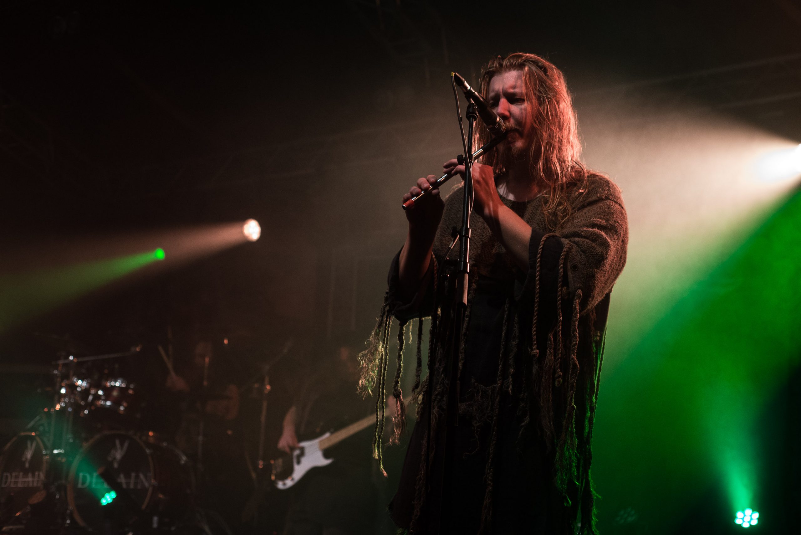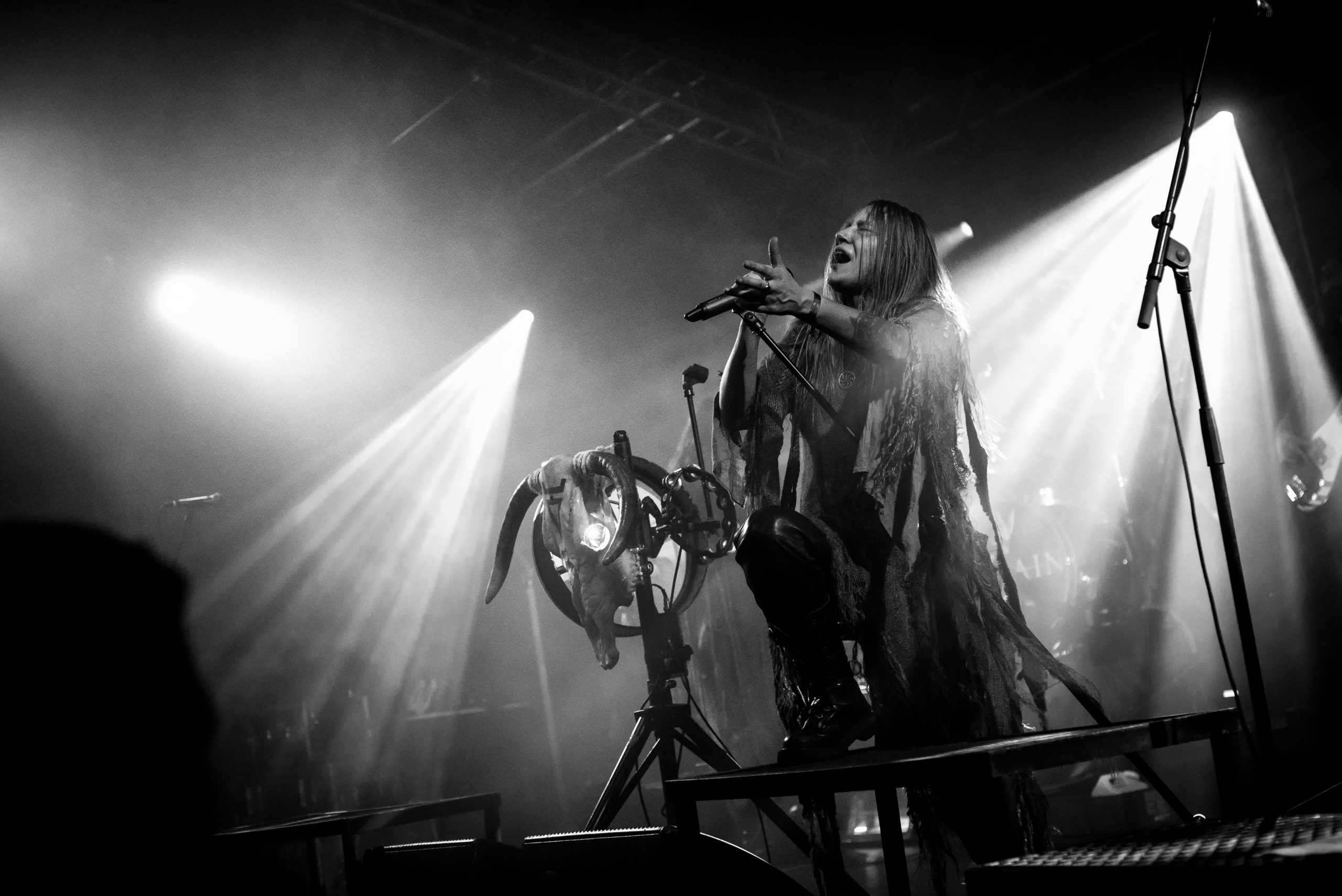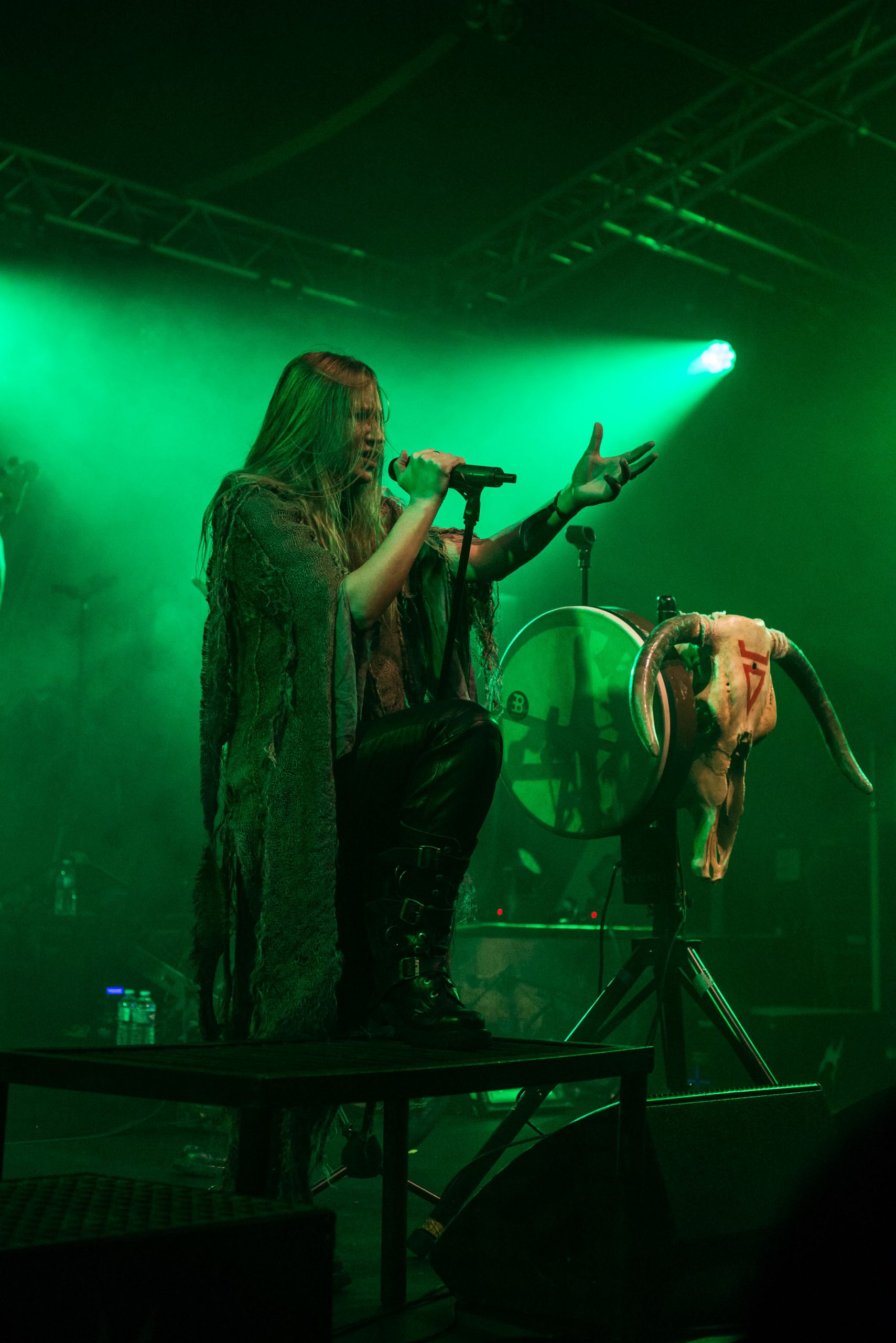 L’ambiance est bonne, la plupart des gens dansent sur le son Pagan Folk qui se dégage de la scène. Certains fans n’étaient même venus que pour eux. Le son des instruments traditionnels, les pipes et petites flûtes, se mêlent à la formation metal et au chant de Masha, oscillant entre scream, voix claire et chuchotements. Vêtus de costumes traditionnels de peaux et de cuir, les membres du groupe amènent un côté festif pour bien commencer la soirée. Cependant, les chansons s’enchaînent vite avec très peu de dialogues et de communication avec le public. Heureusement, la foule est réceptive et les acclame lors de leur sortie de scène.