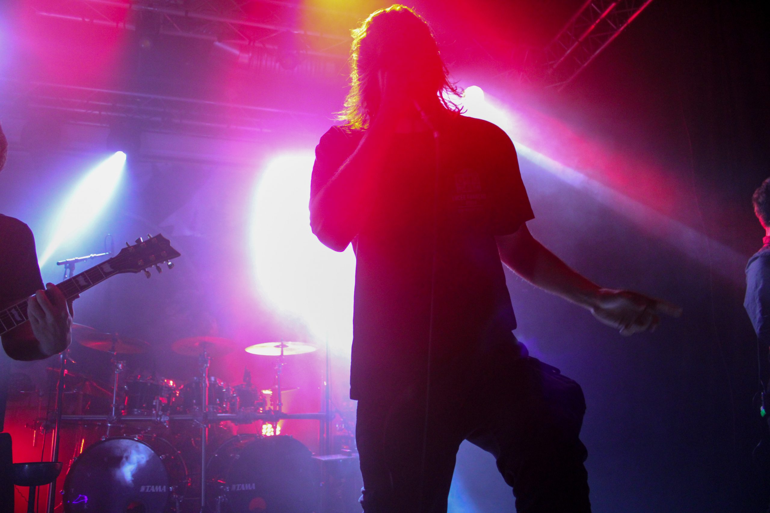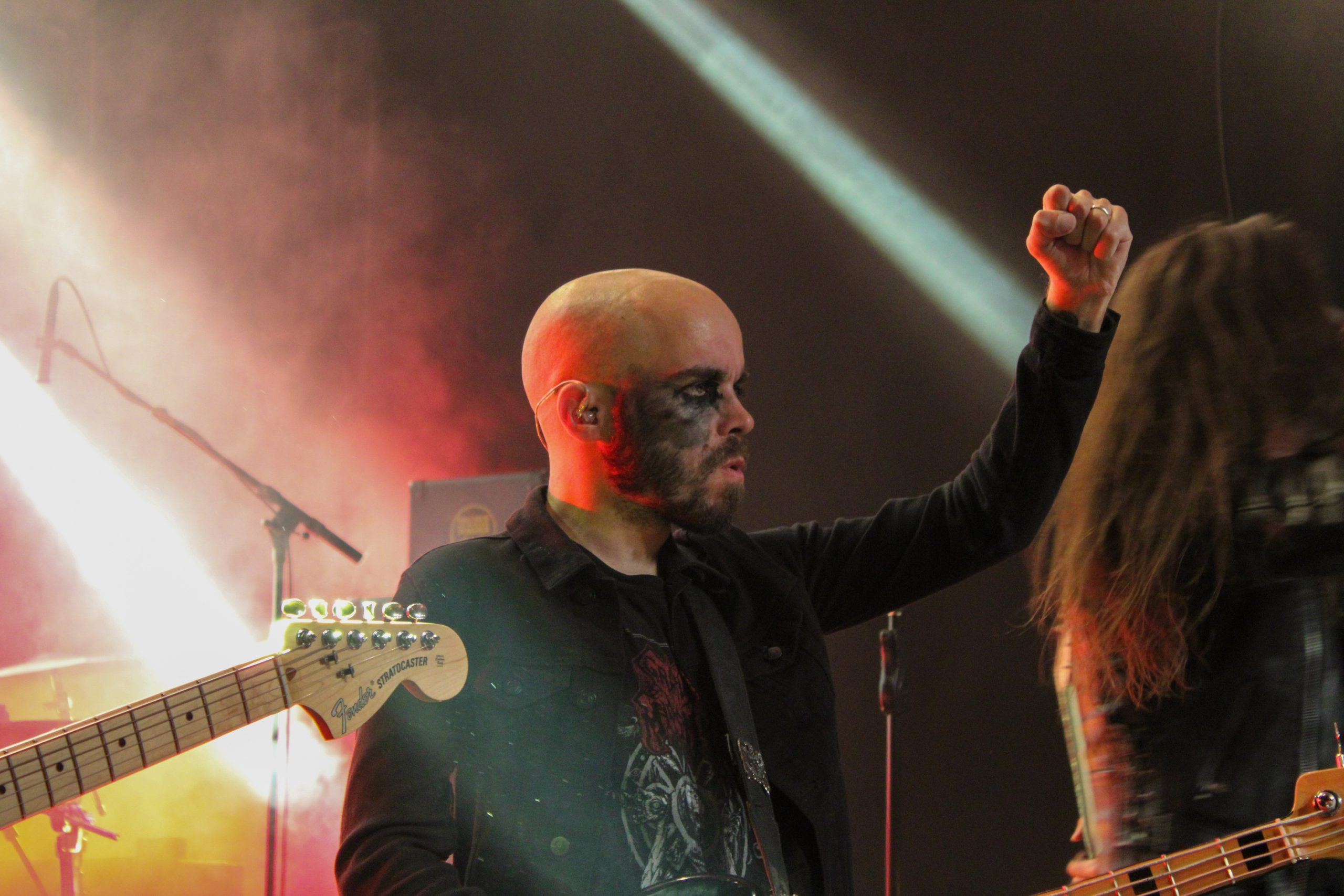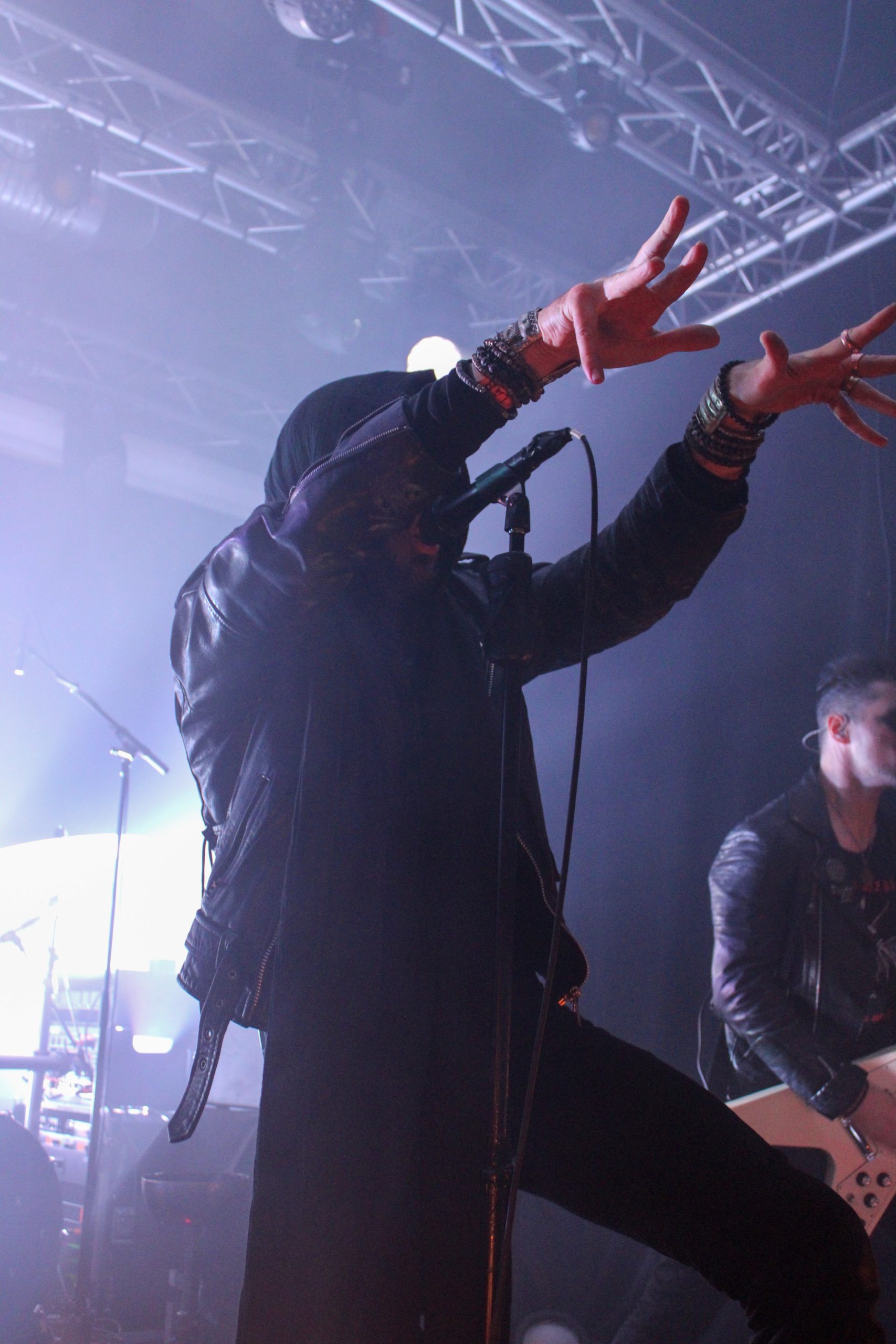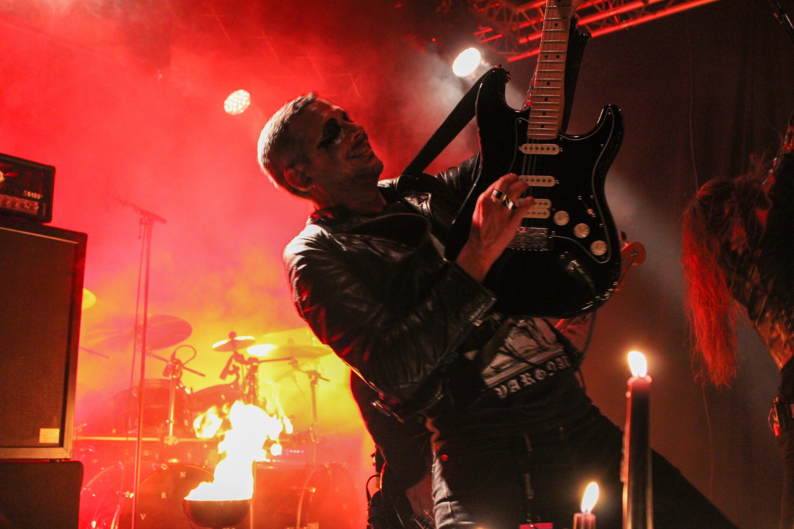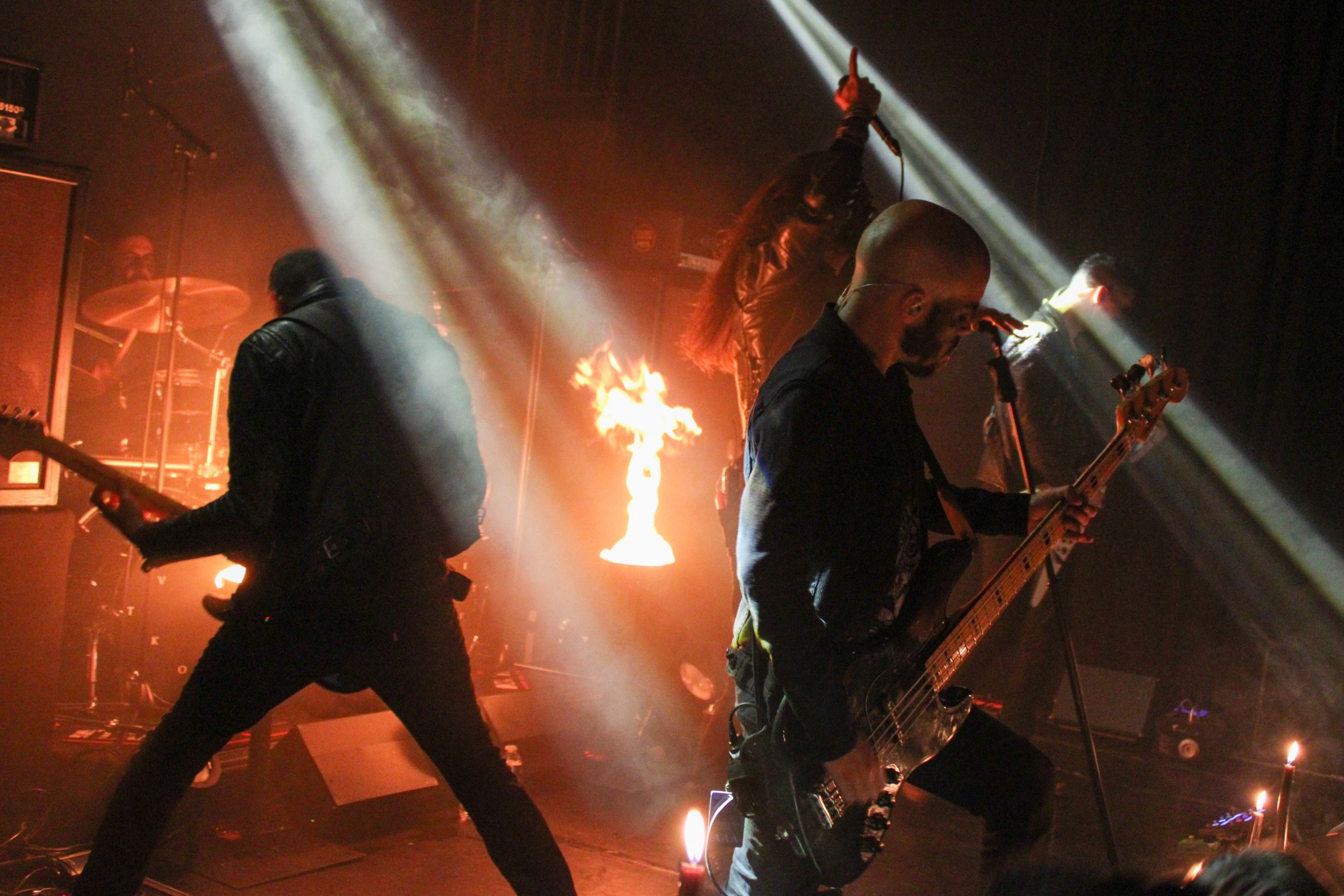 Retour en région lilloise pour Regarde Les Hommes Tomber, après un concert l’an dernier au Grand Mix de Tourcoing. Le groupe ne lésine pas sur les moyens puisque deux vasques sont prêtes à s’enflammer et des chandeliers ainsi que de l’encens trônent sur l’avant de la scène. Autant vous dire que la salle est pleine à craquer pour le set des français. Leur post black est magnifié à chaque seconde par des lumières et de la fumée mettant en valeur les silhouettes des membres du groupe. T.C porte chaque morceau de sa voix hurlé magnifique, comme par exemple « A Sheep Among The Wolves » qui ravit les fans de la première heure. Les musiciens ne sont pas en reste et assènent riffs et rythmiques imparables. Quel plaisir de voir un groupe aussi encré dans son univers. le public applaudit largement entre les titres et profite pleinement de chaque note. Vers la fin du set, les vasques posées devant la batterie s’enflamment pour « Au Bord Du Gouffre » qui vient clôturer cette performance magistrale. Et comme un signe venu des enfers, une des flammes prendra la forme d’une croix décrépie pour terminer de plonger le public dans les profondeurs du gouffre.