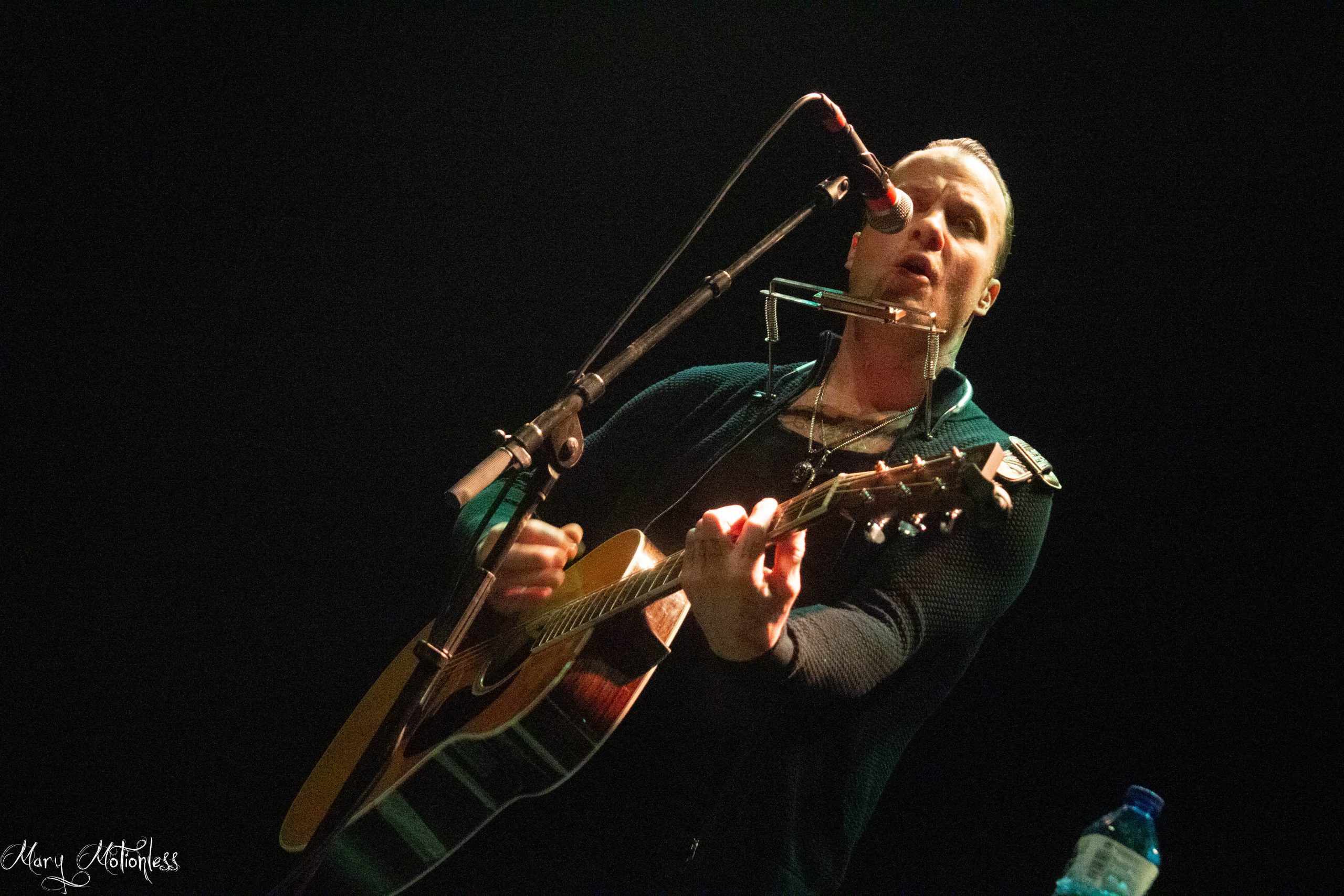 La salle du Rocher de Palmer est déjà bien remplie quand Jesse Ahern monte sur scène avec sa guitare et son harmonica pour les 45 minutes du set qui lui sont allouées. La découverte est totale pour moi, et ses titres Folk version « unplugged » sont littéralement envoûtants, et le public a l’air d’apprécier sa prestation puisqu’il est chaleureusement applaudi entre chaque morceaux. Les quarante-cinq minutes de set passent à une vitesse folle et il est déjà temps pour Jesse de quitter la scène avant la tempête qu’on appelle communément Dropkick Murphys. Pour les amateurs de Folk (et les fans de The White Buffalo) n’hésitez pas à aller découvrir ce fringuant jeune homme et ses superbes chansons.