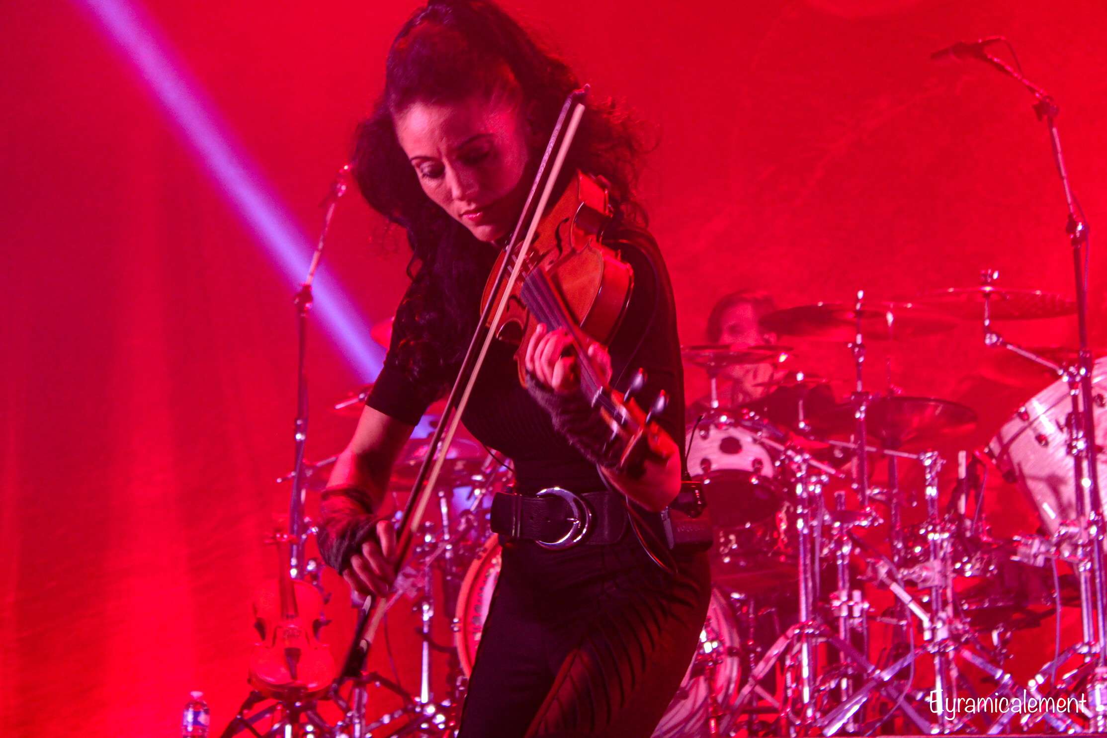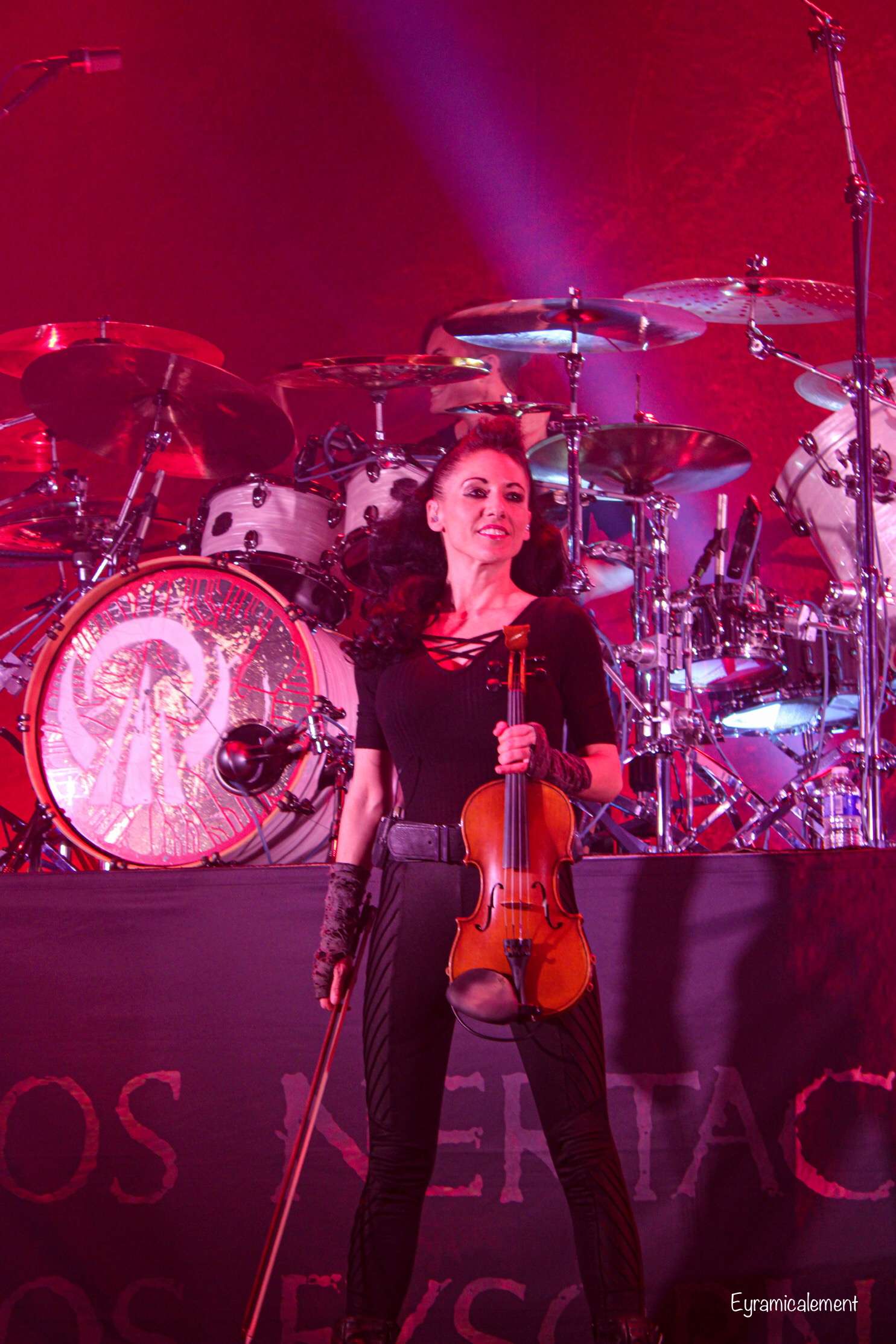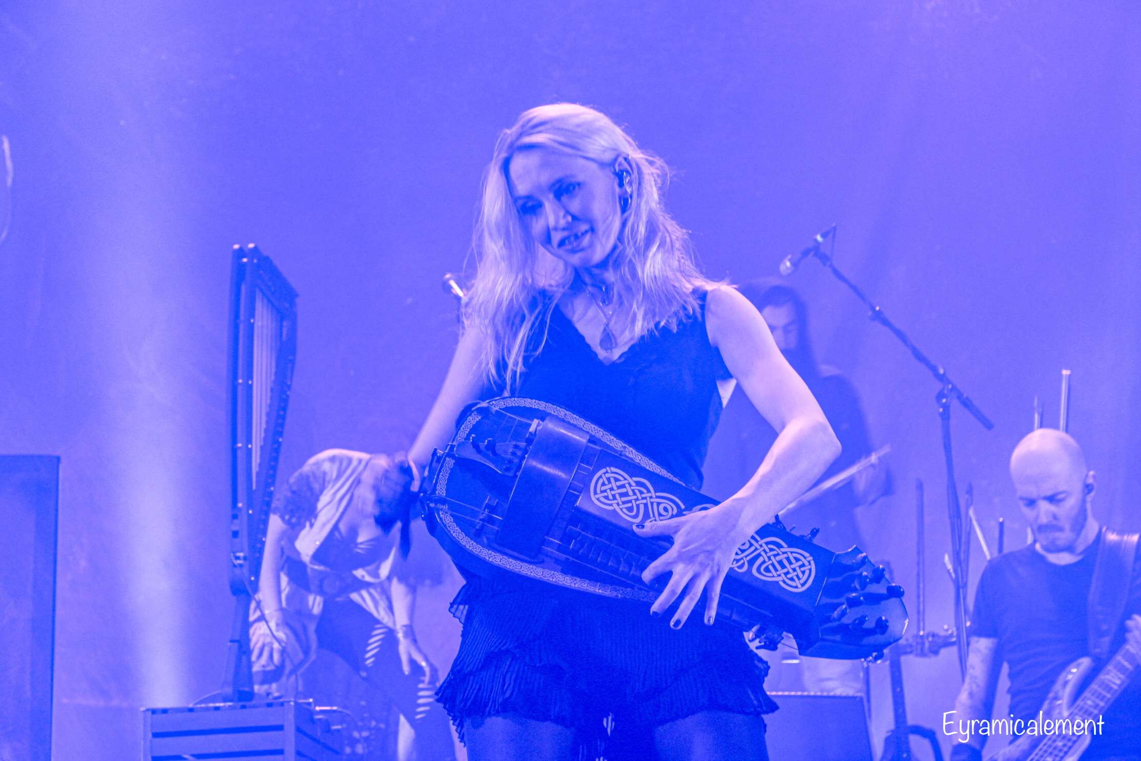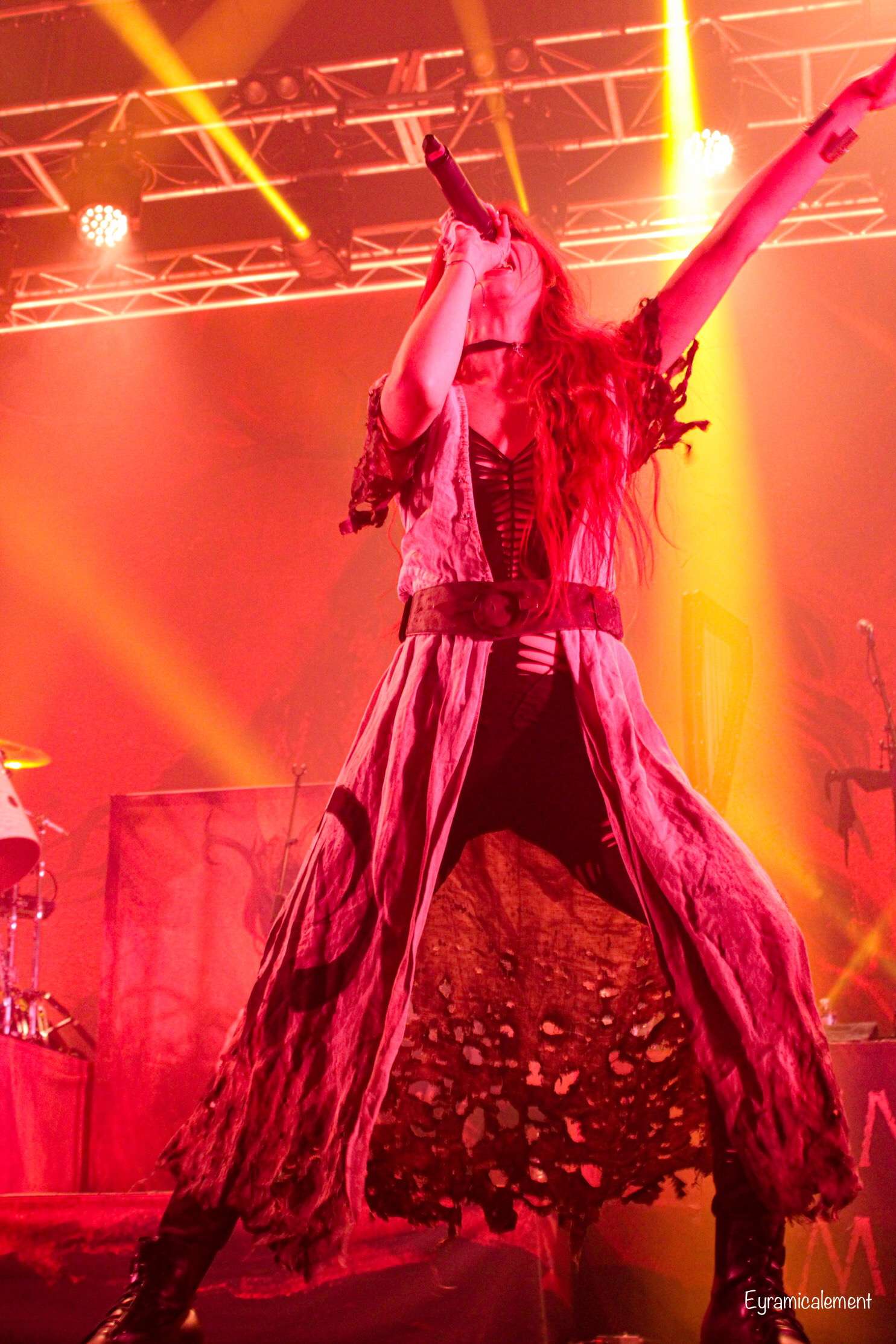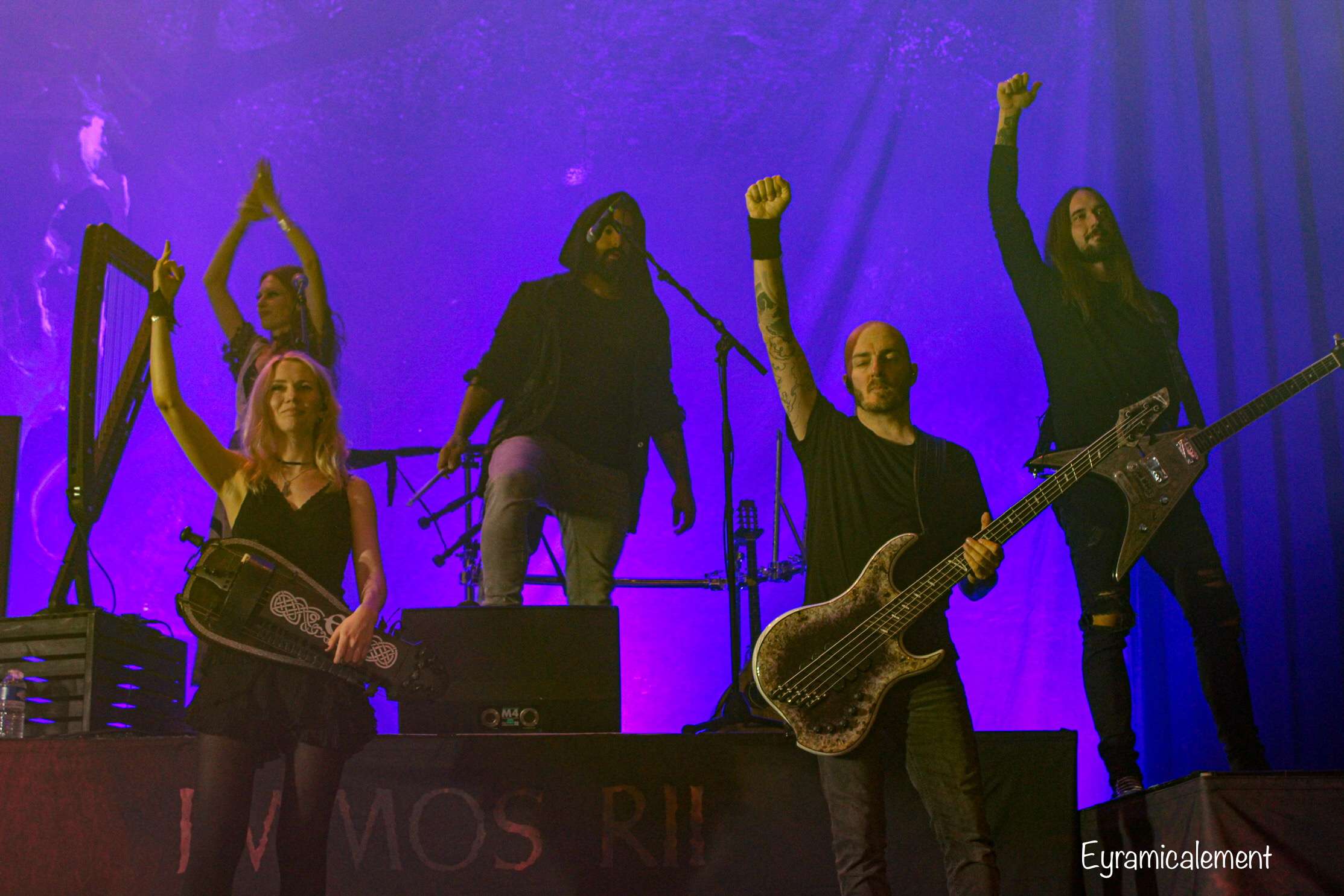 Et c’est parti pour le dernier groupe de cette magnifique soirée, Eluveitie! C’est toujours un plaisir de retrouver les suisses sur scène pour un set qui promet encore de beaux moments de partage. « Exile Of The Gods » vient ouvrir les hostilités, et encore une fois le mélange métal et instruments traditionnels fait mouche! Chrigel Glanzmann et Fabienne Erni se partagent le chant pour notre plus grand plaisir. Comme toujours l’énergie folle du groupe retourne la salle en quelques minutes, et les titres suivants vont confirmer cette première impression. Matteo Sisti donne tout au tin whistle et autre cornemuses, tout comme Annie Riediger avec sa vielle à roue. Ces instruments font le charme infini d’Eluveitie et les distinguent des autres groupes de métal. Le public lillois jette toutes ses forces dans la bataille tout comme le groupe, et les sourires de part et d’autre de la barrière en disent long sur la qualité de la soirée! « A Rose For Epona » ou encore « Ambiramus » sont un pur plaisir à entendre, et les fans présents ce soir donnent de la voix pour accompagner la formation suisse. On pourrait croire que avec autant de musiciens sur scène le son serait moyen mais il n’en est rien, chaque membre de la formation à la place de briller et nous pouvons profiter de toutes les subtilités des compositions!