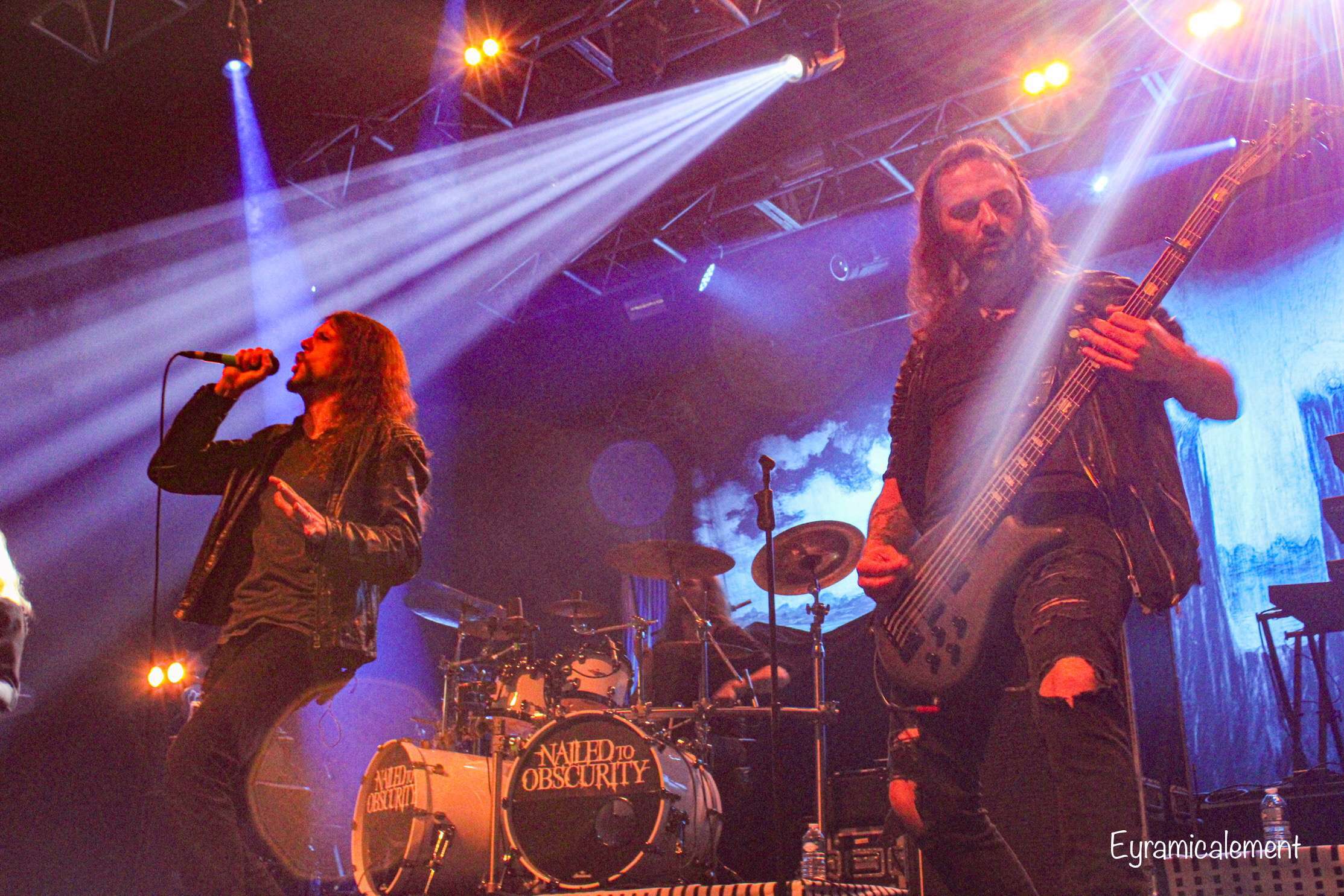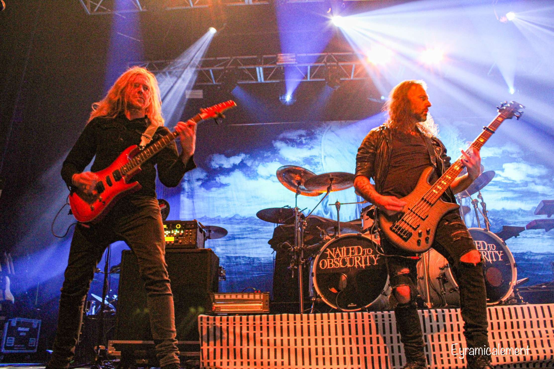 On commence donc avec les allemands de Nailed To Obscurity, que nous découvrons ce soir. Comme toujours, le son de la salle est au top et permet de profiter pleinement du melodic death metal du groupe. Leurs morceaux assez longs permettent de bien entrevoir leurs talents de compositeurs. L’interprétation sera également parfaite, et beaucoup donneront tout pour soutenir la formation. « Liquid Mourning » fera clairement son petit effet, et nous donne envie de nous plonger dans la discographie du groupe en rentrant à la maison. Le dernier titre « Desolate Ruin » finit de mettre tout le monde d’accord, et c’est sous de larges applaudissements que les allemands quittent la scène.