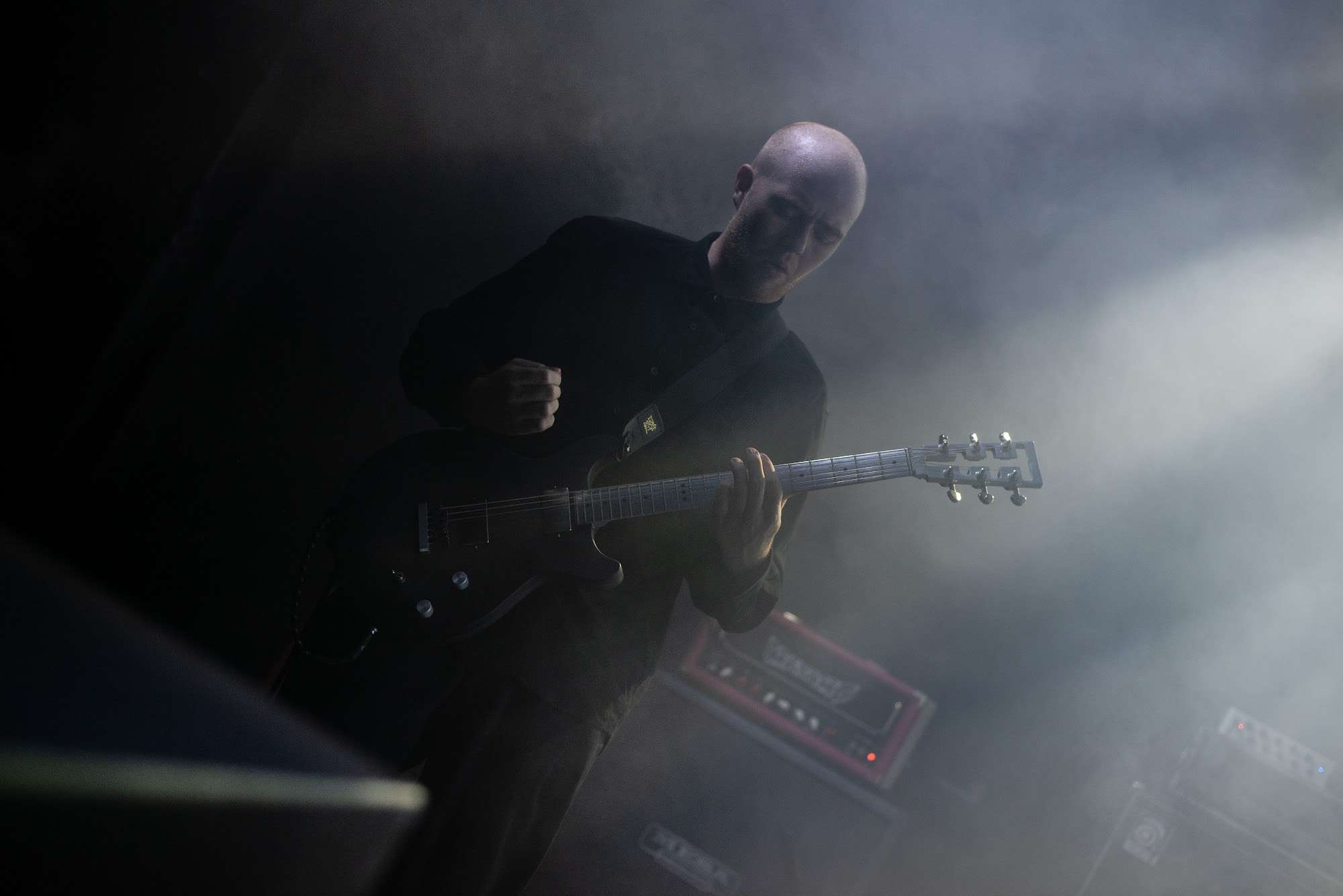 Le premier cas étudié ce soir est présenté par Bossk. Ces derniers ouvrent la porte des esprits avec « Kobe ». Nous laissons l’inspiration venir à nous au rythme des doux arpèges aériens de ce début de set. Mais si « Kobe » semble être d’une grande délicatesse, inspirante, la poésie nous fait parfois voir le monde autrement. Lorsque le vocaliste entre en scène, sur la fin du titre, notre monde est chamboulé. L’écriture peut être douloureuse. La noirceur de son scream, les guitares tranchantes, viennent sectionner les pieds de nos vers bien ordonnés. Le frontman est pareil à ce « monstre qui porte sur son visage la noirceur de son âme » (Baudelaire). Nous sommes à la croisée des univers, entre post-rock, post-core, stoner… Mais qui a dit que nous devions nous cantonner à un seul genre ? « The Reverie » vient à son tour adoucir les mœurs, avant de prendre de nouveaux risques avec des riffs plus stoners. Ce jeu entre lumière et obscurité est magnifique pour quiconque y est réceptif, et peut le comprendre. Il y a autant de poésies qu’il y a de sensibilités, et lorsque l’une d’entre elles vibre avec votre âme, là se trouve votre muse. Celle de Bossk se trouve davantage du côté du Sleen.