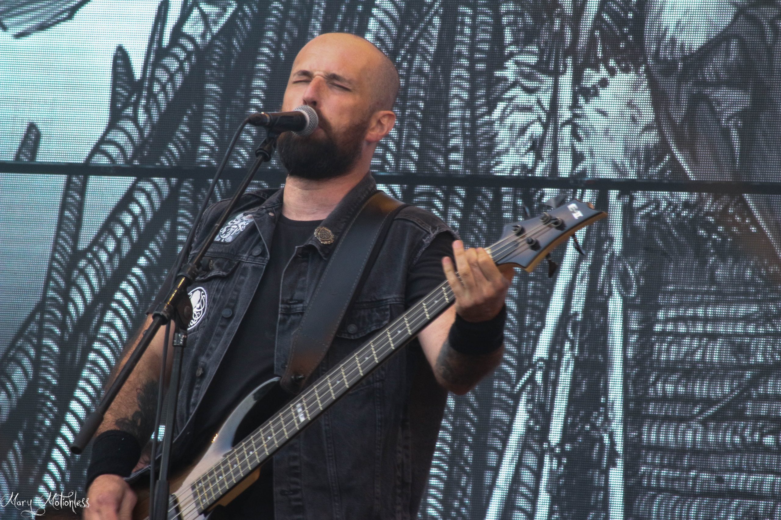 Je profite du set de At The Gates pour prendre quelques photos malheureusement pour moi, je ne trouve pas le set à la hauteur de ce que j’ai l’habitude de voir jouer par le groupe. Je préfère donc ne pas m’attarder et aller me restaurer avant un set incroyable en Temple! (Mary)