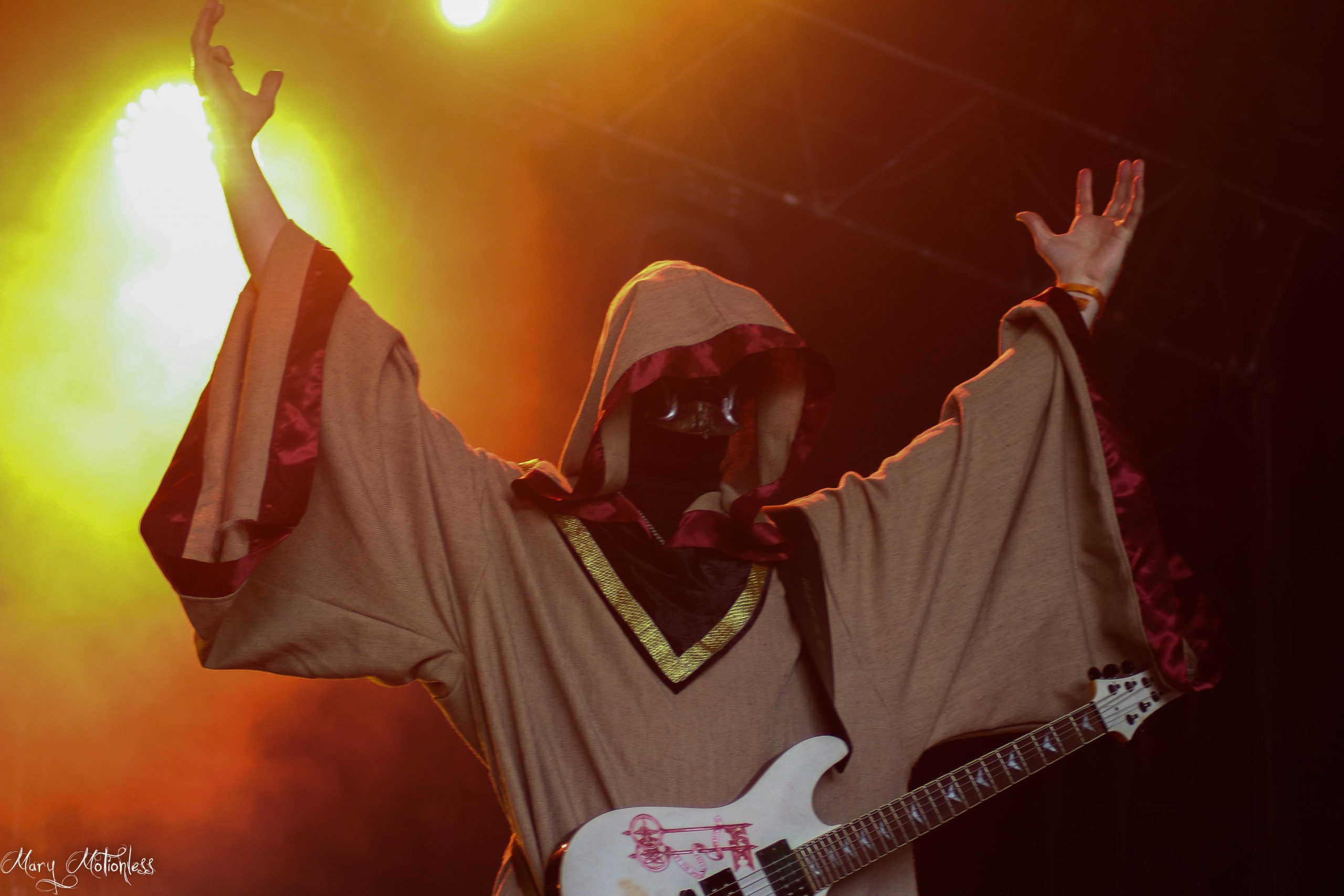 Mephorash prend place sur la Temple! Les suédois délivrent un Black Metal de qualité avec un soin tout particulier accordé à leur esthétique, les masques semblent tout droit sortis d’une tragédie (mais on pourrait les croire également inspirés des masques vénitiens au niveau des détails). La prestation est extrêmement qualitative, le son est incroyablement beau tout est visuellement et auditivement sublime. A revoir sans l’ombre d’un doute! (Mary)