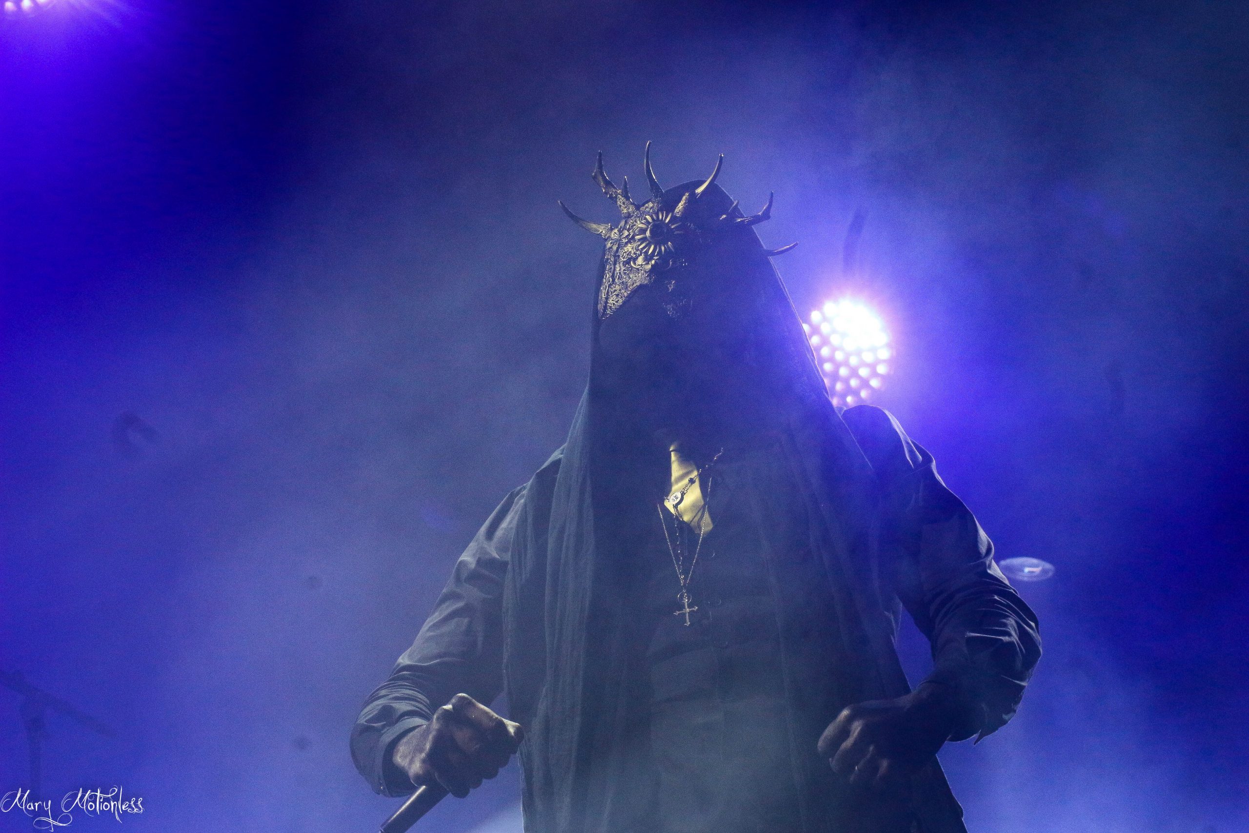 Retour en Temple pour Pénitence Onirique! Les français joue un Black Atmo de qualité et sur scène le tout est vraiment très qualitatif. Les membres jouent masqués et là encore visuellement le travail effectué est tout aussi splendide à voir. A voir et à revoir sans modération! (Mary)