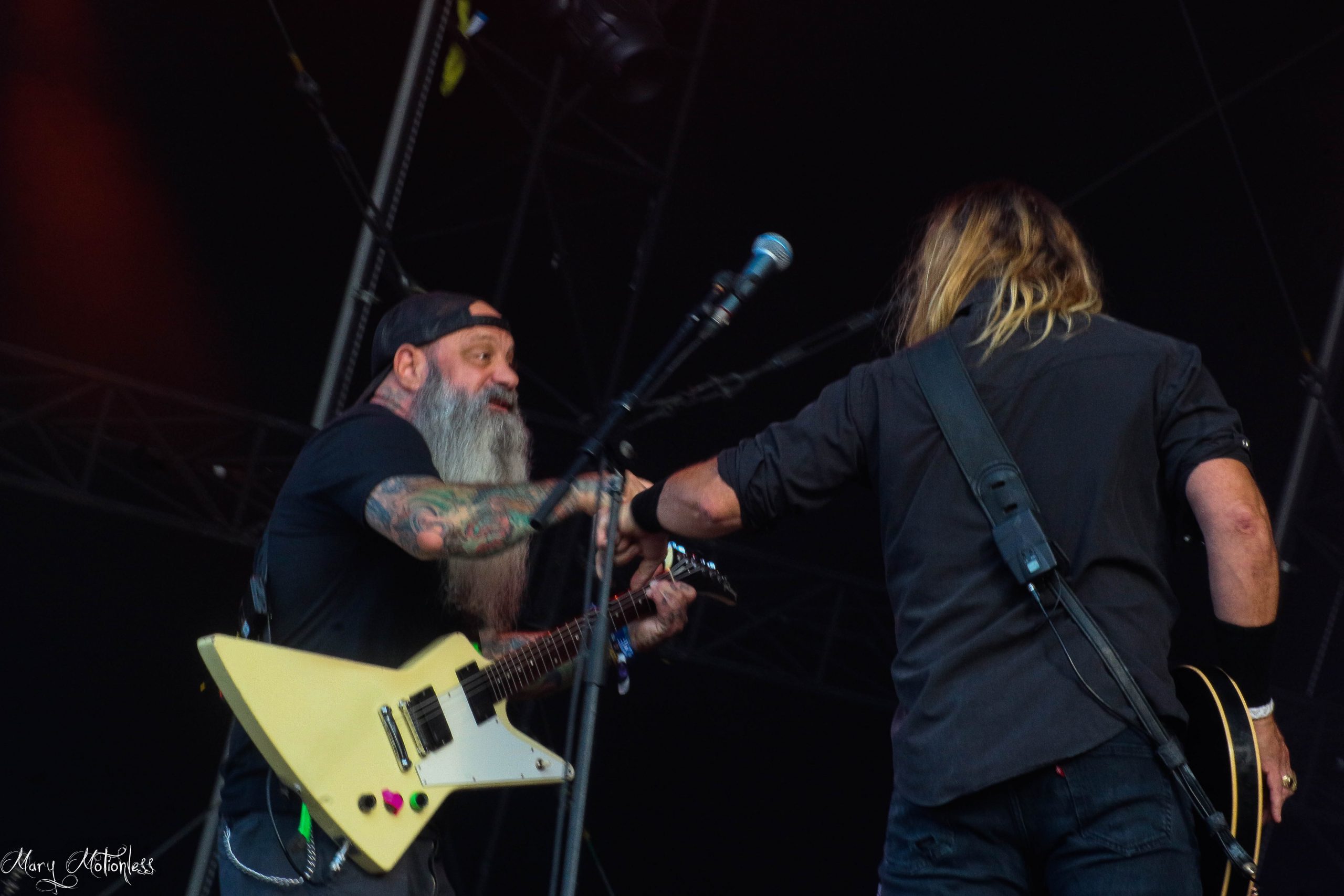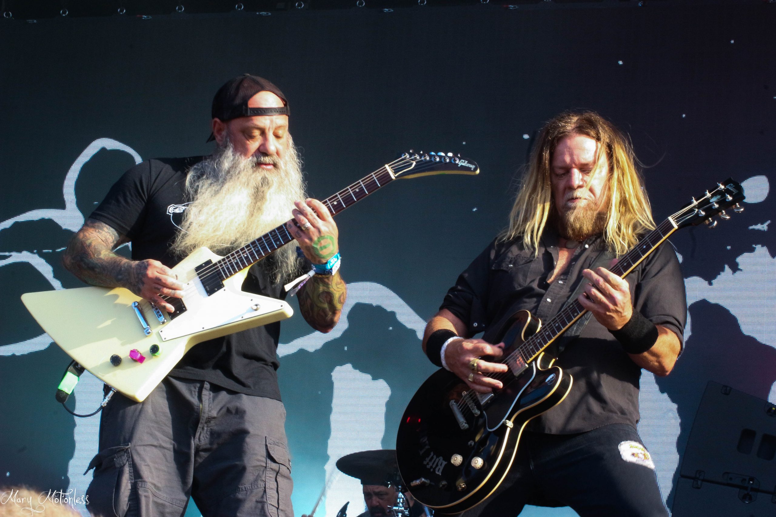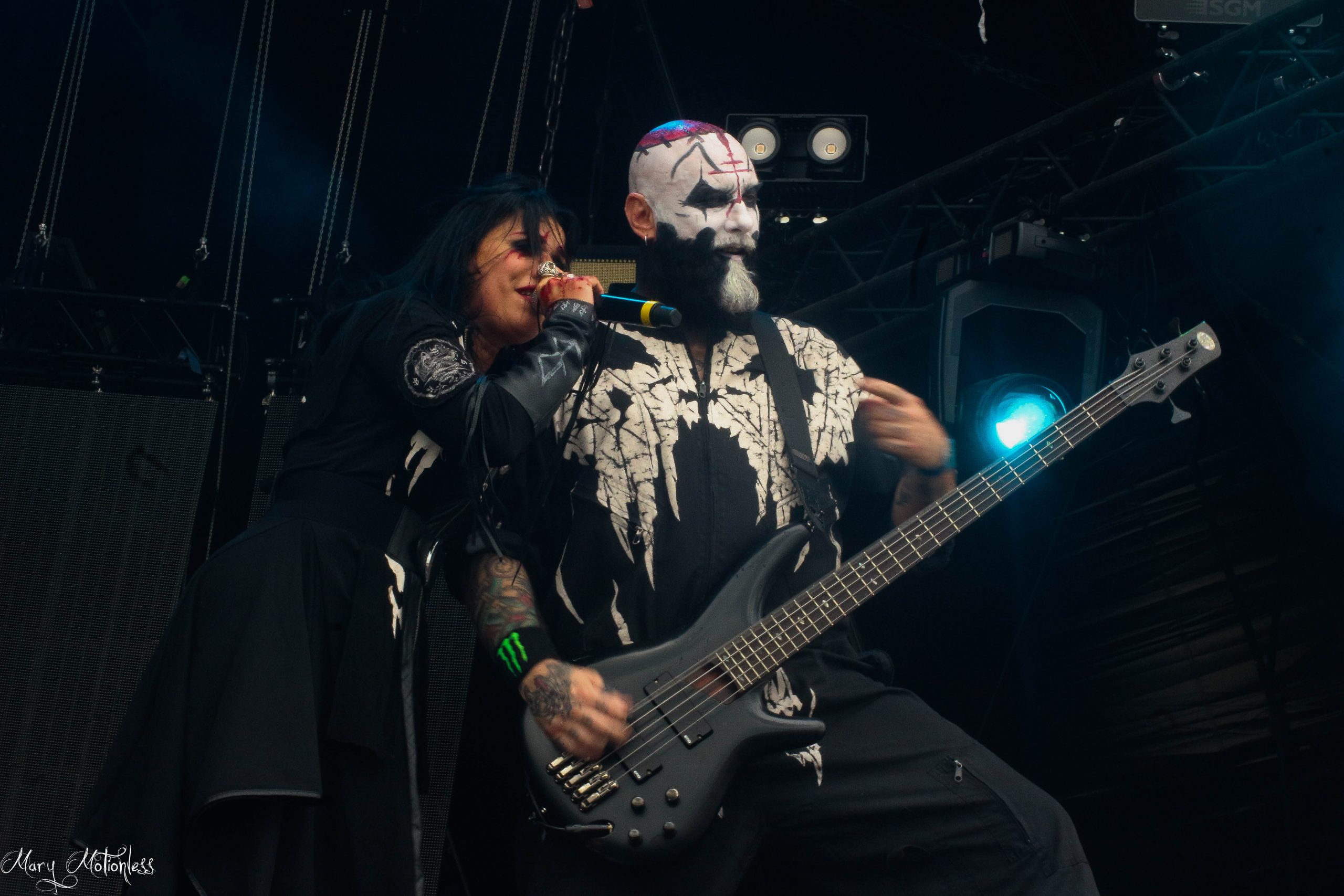 A la base, je sortais de mes Altar/Temple pour aller me placer pour shooter Lacuna Coil quand Sortilège se sont présentés à mes oreilles. Dois-je dire là encore que certains copains auraient été ravis d’être là? C’est un euphémisme et je profite pour eux de la musique du groupe français distillant un Heavy Metal interprété en français. Le groupe est en activité depuis le début des années 80 mais ne montait plus sur scène depuis presque 30 ans! La fan-base est ultra présente et reprend à plein poumons les classiques de leur groupe préféré et même si je trouve le set un peu Kitsch, je dois bien avouer que le groupe force le respect! (Mary)