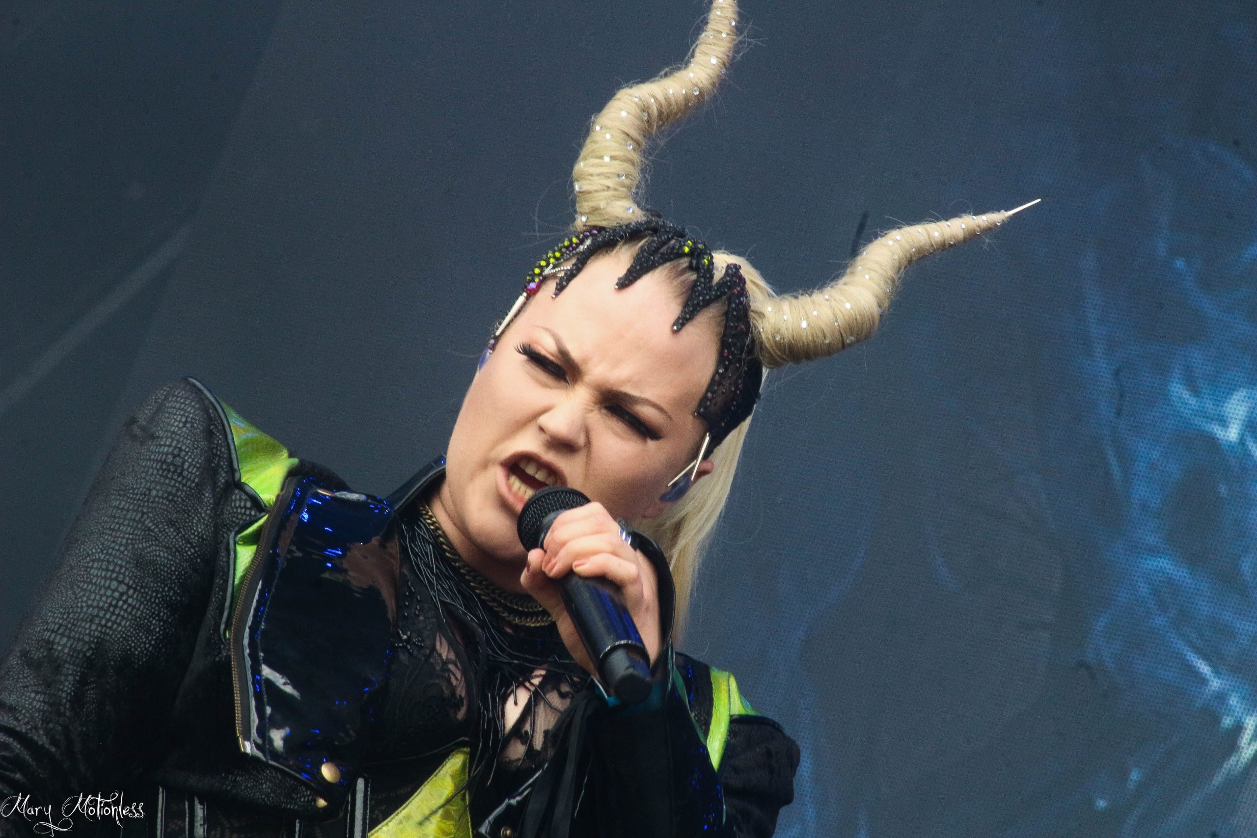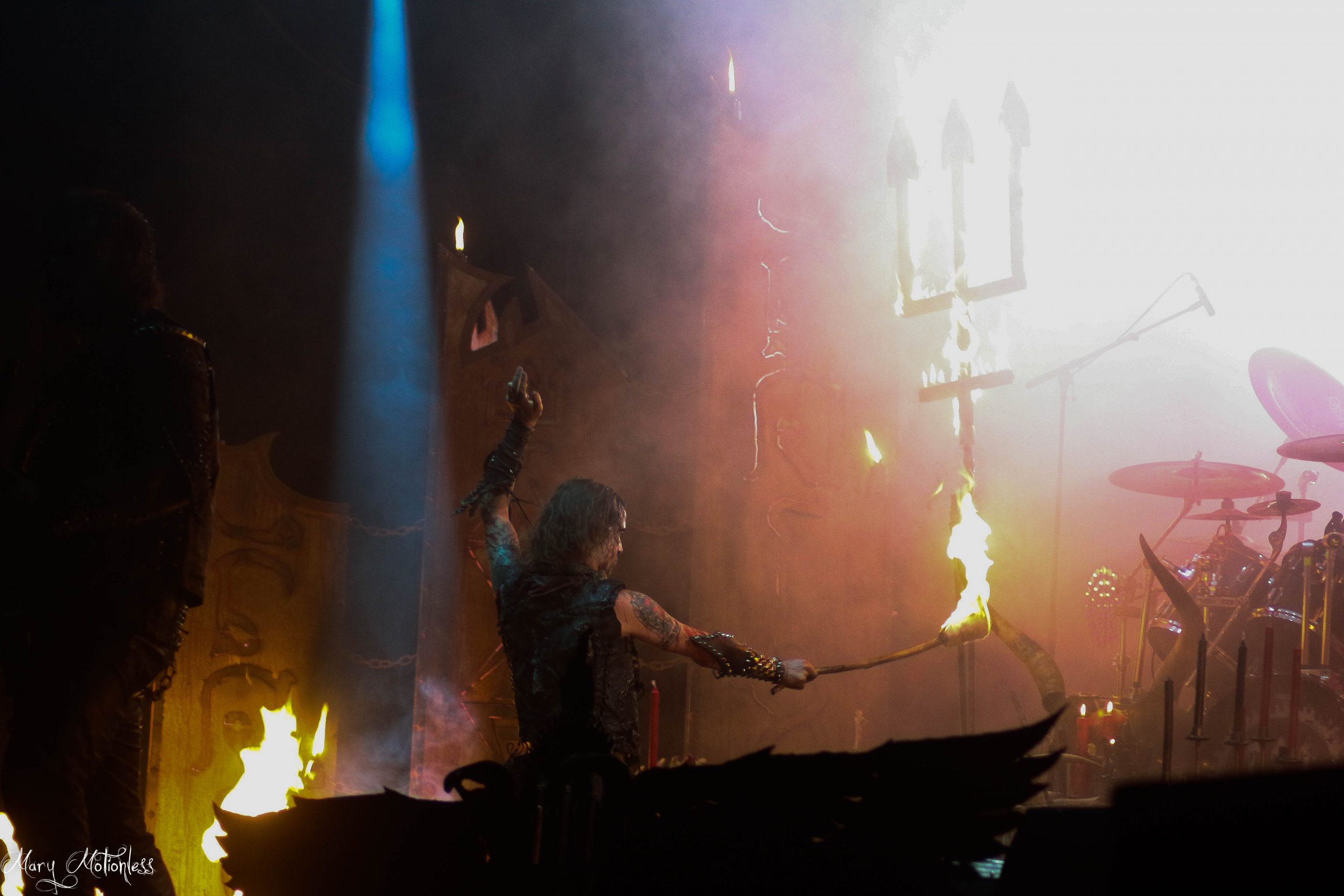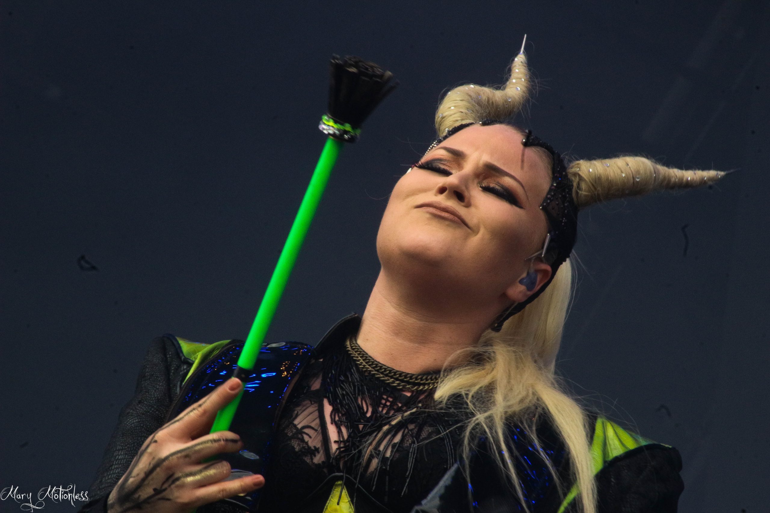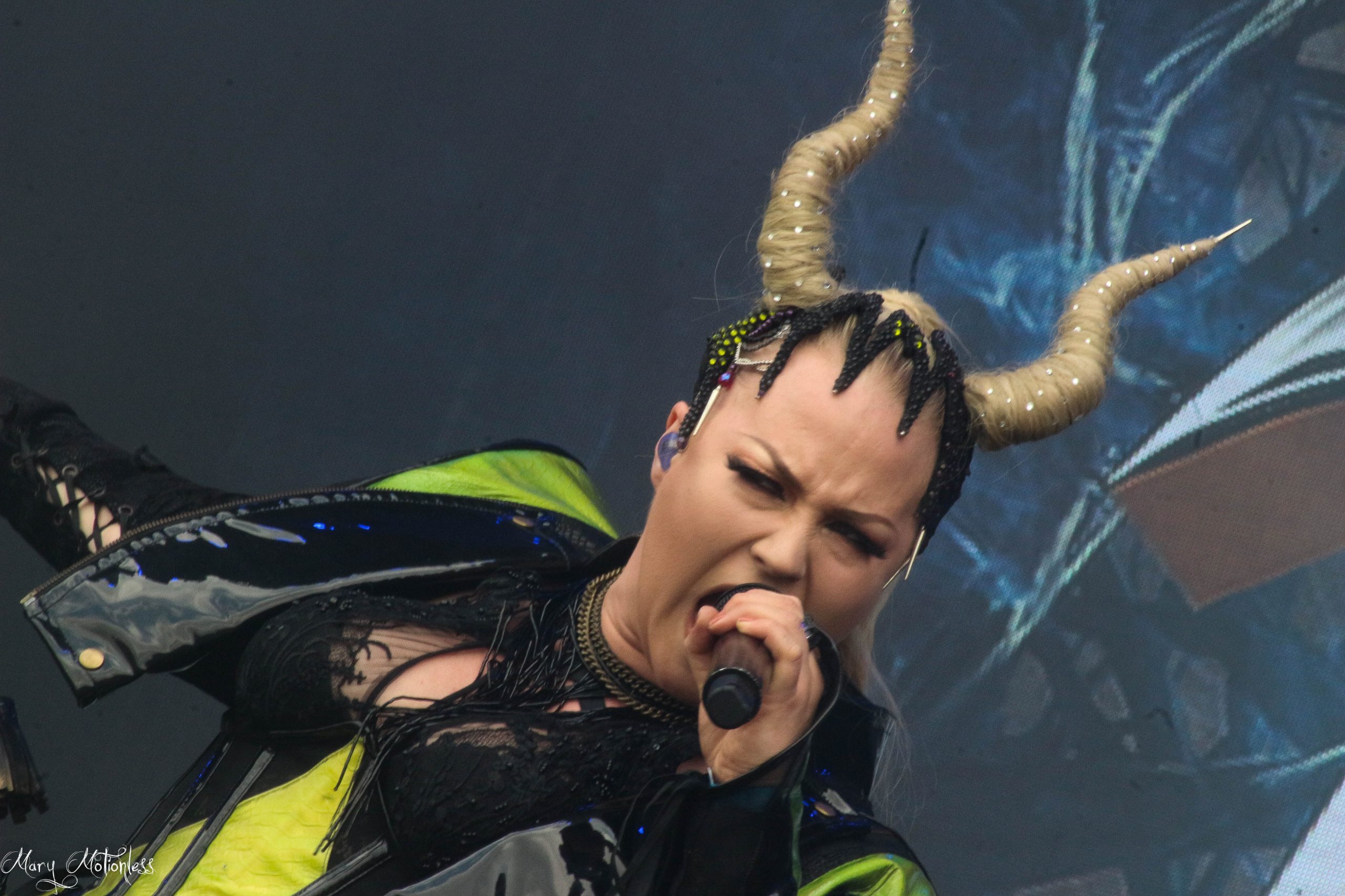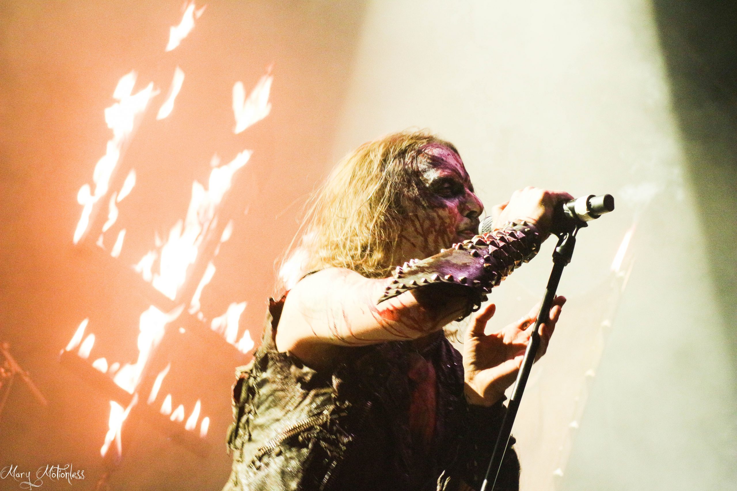 Puis c’est au tour de Battle Beast et le groupe finlandais de Power Metal a ouvert le concert avec une instru qui annonce tout de suite la couleur de la set-list. En effet le décor de scène a pour thème le dernier album Circus of Doom, pour l’occasion la chanteuse a choisi un costume de choix, un corset digne d’une dresseuse de fauve avec pour accessoire un bâton de majorette sans oublier ses mythiques cornes. Noora prouve que c’est une technicienne aussi bien en live qu’en studio, soutenue par ses musiciens, Battle Beast a assuré un show des plus exceptionnel, le public a été plus que réceptif. (Tiffany)