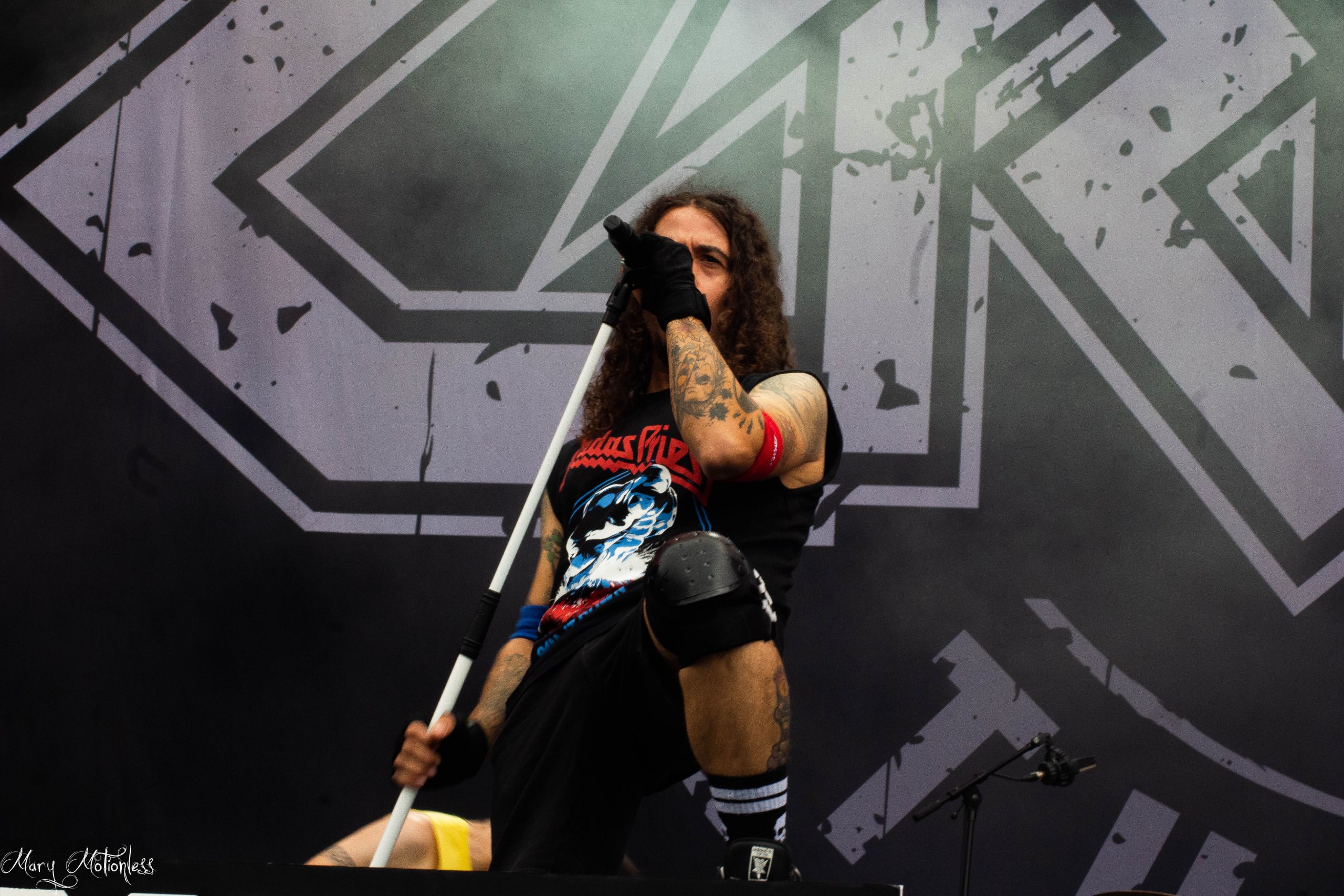 Retour en MS pour les Espagnols de Crisix! Dès leur arrivée sur scène, le chanteur annonce que malheureusement leur batteur est positif au Covid et est donc remplacé en début de set par Job des groupes Tagada Jones et Fauxx Aucun doute, Crisix est quand même là pour en découdre, leurs compos sont hyper efficaces et le groupe s’amuse vraiment! Un changement d’instruments plus tard, le guitariste Marc passe au chant, Julian (chant) passe à la basse, le bassiste se retrouve guitariste et le guitariste…batteur. Des musiciens polyvalents! Les mecs délivrent un petit medley assez fun avec notamment Walk de Pantera ou encore Antisocial avant que le batteur de Gama Bomb ne les rejoignent sur scène pour la suite du set. Un moment vraiment sympa, hâte de revoir cette sacrée bande à l’occasion! (Mary)