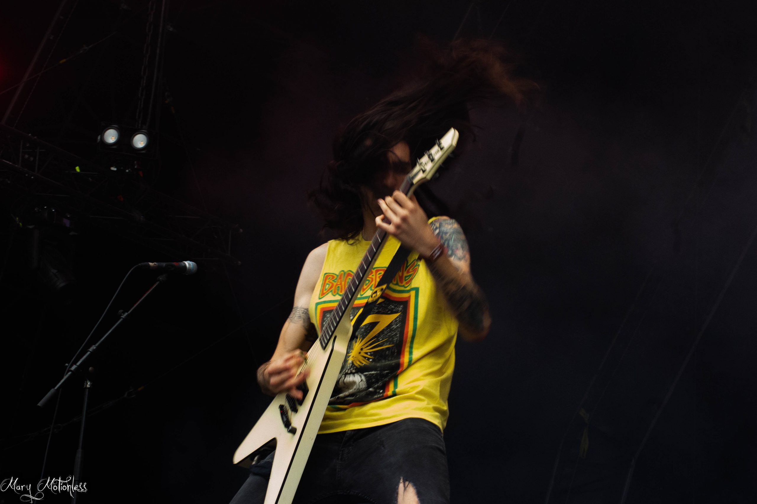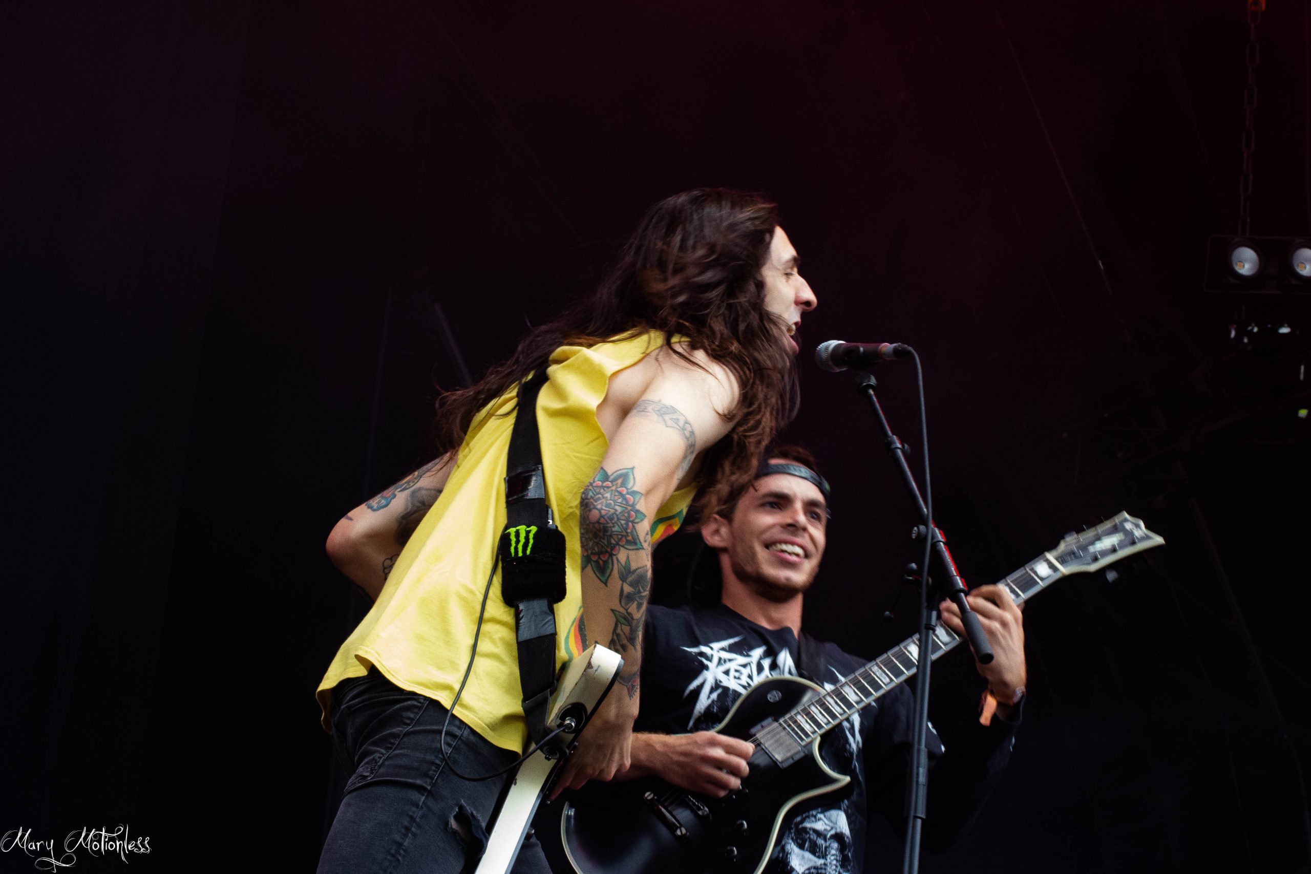 Et je commence fort avec la découverte de Portrayal Of Guilt! Une scène très sobre, on a plus l’impression d’assister à un concert intimiste qu’à un concert au Hellfest mais des fois c’est plutôt et là c’est le cas après une courte présentation « Salut, on est Portrayal Of Guilt », le groupe va retourner la Temple avec leurs compositions entre Screamo, Post-Hardcore et Post Black-Metal, une découverte assez dingue sur laquelle je me pencherais un peu plus à l’avenir. (Mary)