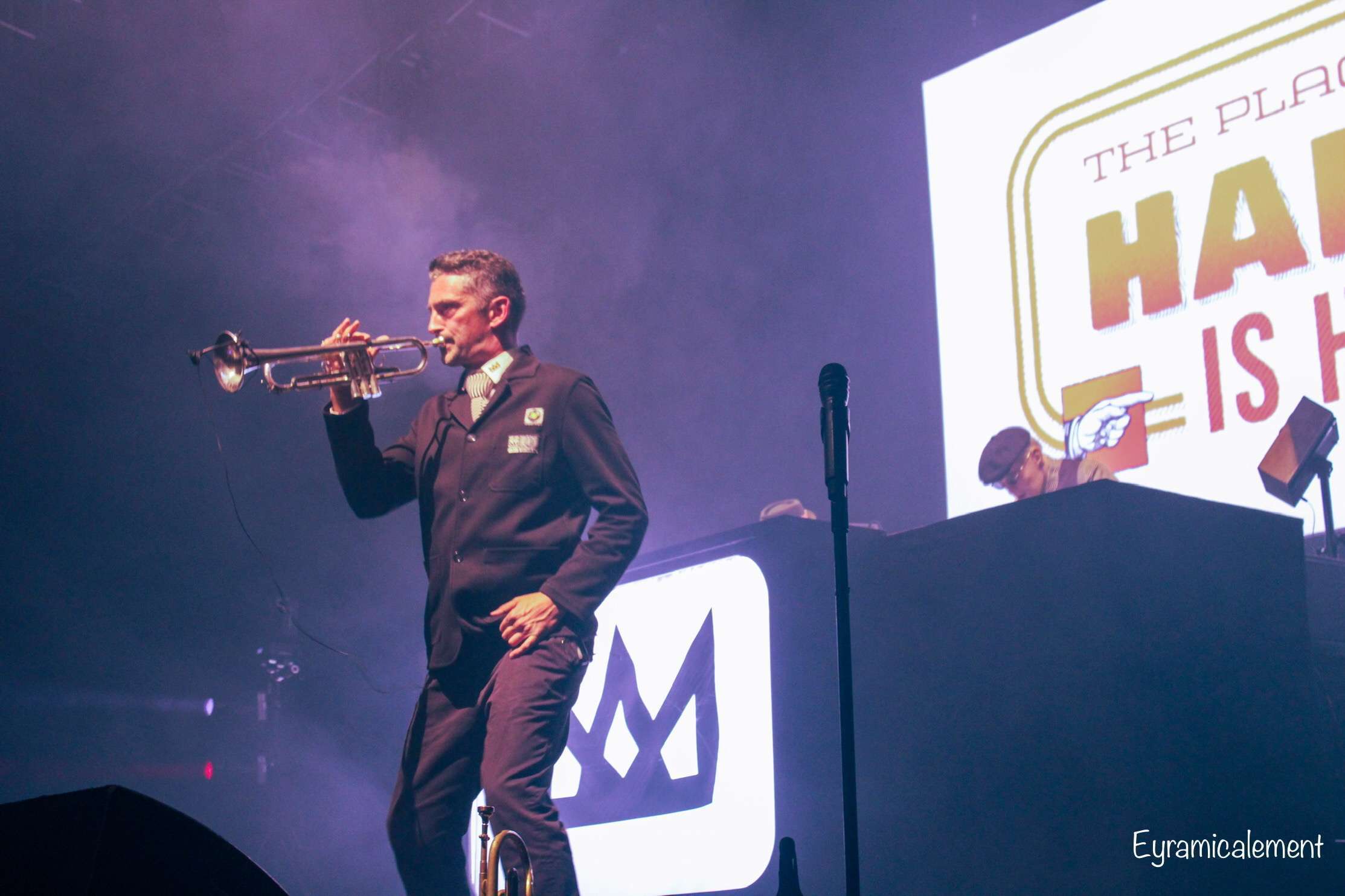 Naâman prends la suite sur la scène du Zénith. Dès les premières secondes, on sent que le public est ravi de le retrouver. Et il ne sera pas seul ce soir, toujours accompagné de son acolyte Fatbabs pour faire le DJ/beatmaker de la soirée, on aura le plaisir de danser et chanter en compagnie de musiciens talentueux. Naâman nous présentera ce soir une partie de son dernier album Temple Road, sans oublier néanmoins les titres emblématiques de sa discographie. La fusion de sa voix, si marqué que l’on peut la reconnaitre à des kilomètres, avec ses chœurs Margaux, Judith et Joël est une pure réussite. On danse, on chante, et on en prend plein les yeux. Il faut dire que le chanteur est une bête de scène, et son sourire est communicatif. On est totalement transpercé par son regard d’un bleu si clair, qui exprime une joie sans nom. Le chanteur a décidé d’offrir un spectacle à tout le monde et vient même prendre un bain de foule monstre avec Fatbabs en s’installant en plein milieu de la foule sur un caisson roulant. L’ambiance est électrique et le morceau « Outta Road » met tout le public d’accord. Que vous soyez dans le public, ou sur la scène derrière un clavier, un saxophone, ou un micro, toute la salle s’amuse. Quel pied !