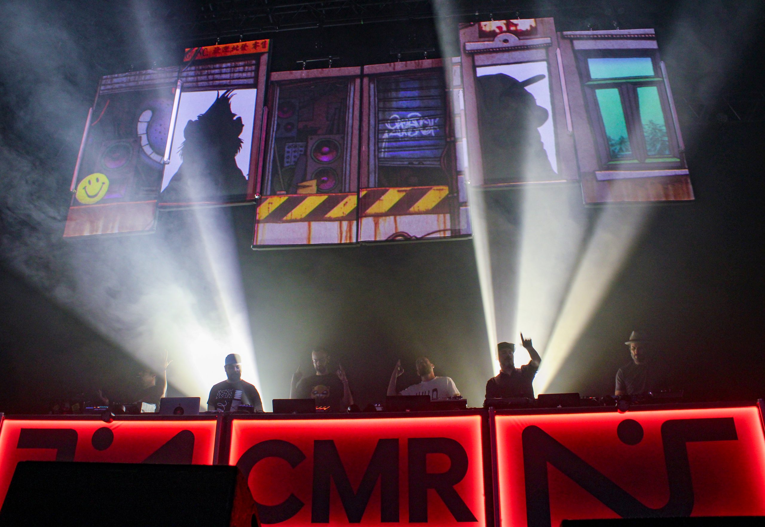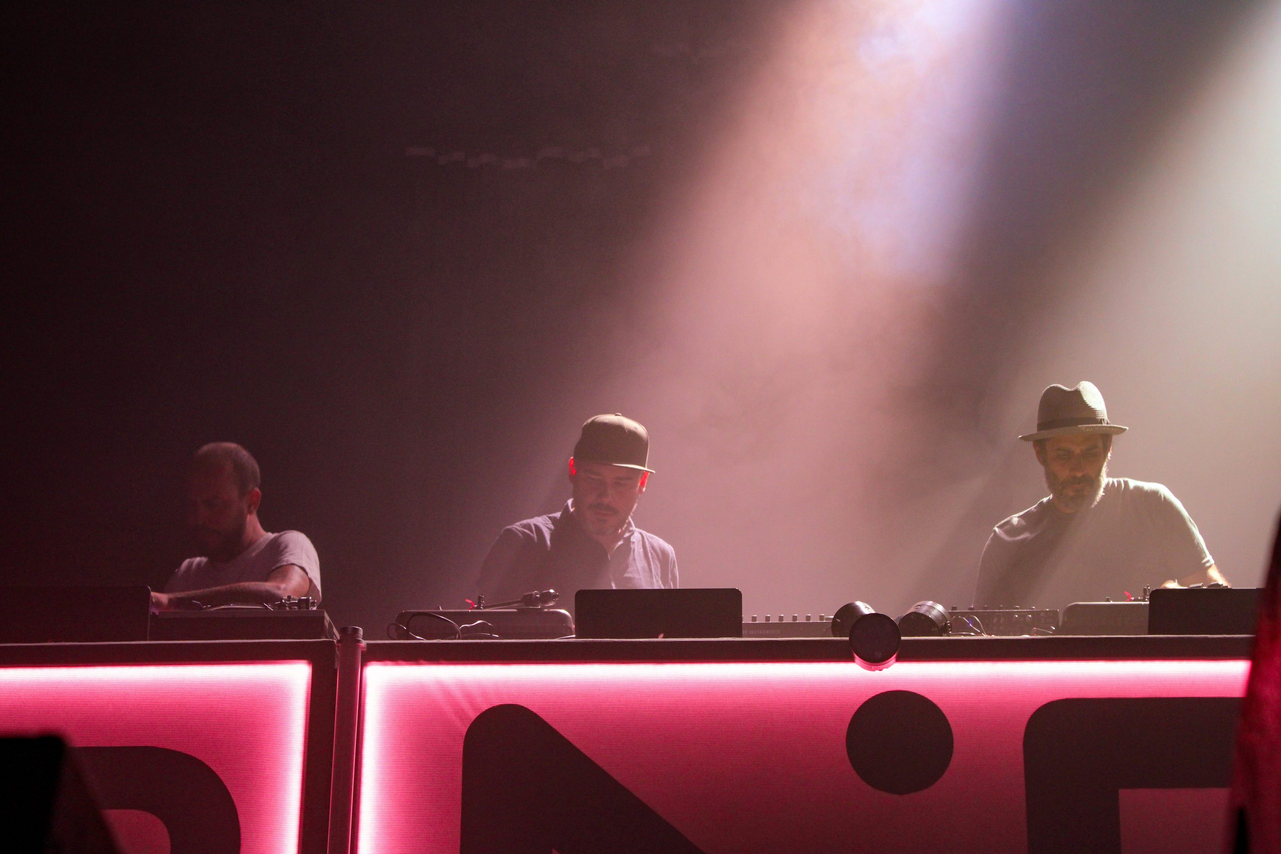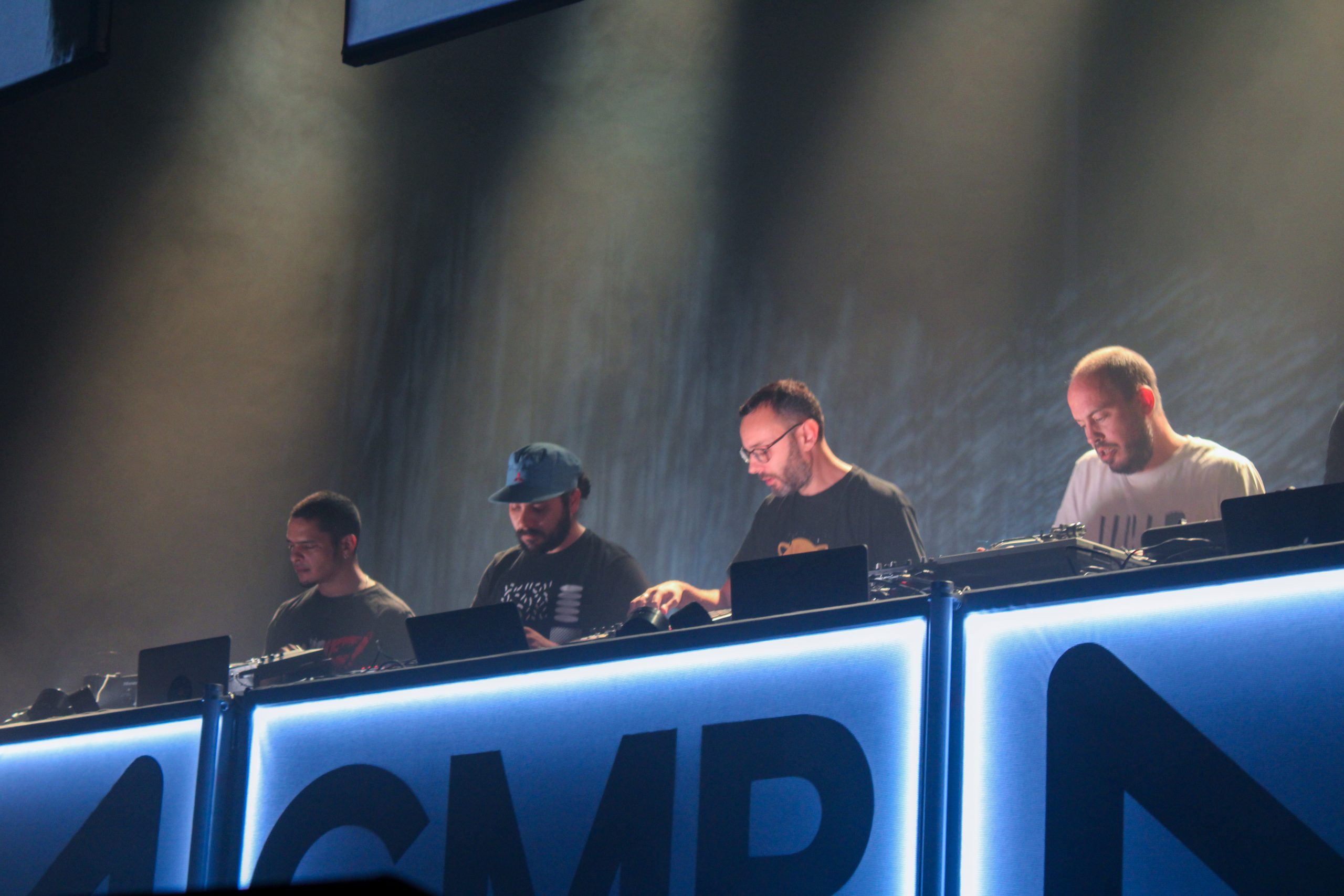 Grande table regroupant les six platines, deux pieds de micros, on sent dès la mise en place de la scène qu’on va en prendre plein la face. Avec des lumières les éclairants chacun leurs tours, les trois duos (Chinese Man, Scratch Bandits Crew, Baja Frequencia) viennent s’installer sous ces grands écrans géants à l’éffigie de Chinese Man Records sous le monumental titre « Hold Tight ». Le duo de chanteur Miscellaneous et Youthstar vont venir mettre l’ambiance dans sa salle. Comment rester stoïque face à tous ces morceaux, reprenant des éléments dans tous les styles musicaux nous entourant. On voyage avec de la musique latino, de la musique orientale, des gros beats de hip-hop américain, qui se mélangent à de la techno. Ils sont huit sur scène, et chacun d’entre eux va essayer de vous faire voyager durant cette heure de set. Ils jouent tous à leurs façons avec le public, et ils ont tous l’air ravi d’être sur cette scène.