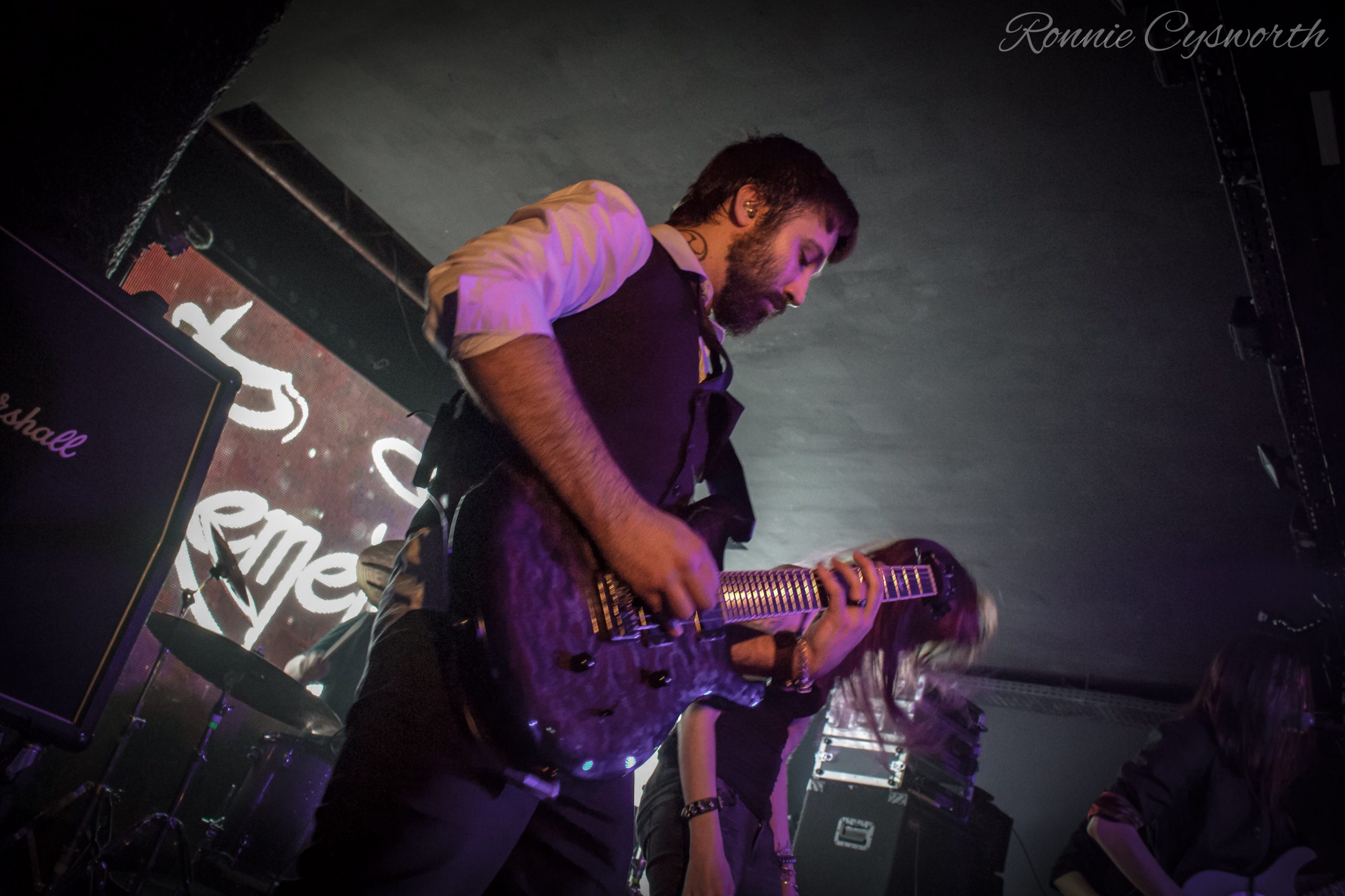 Kozoria est un groupe qui a été formé en 2013 possédant un EP sorti en 2016 tout simplement nommé ‘K’. Leurs looks à « l’ancienne » avec tshirts troués et ceintures à cartouches nous rappel bien de quel style il s’agit! Le groupe possède visiblement déjà son haras de petites fans. Musicalement, c’est bien ce qu’on attend d’un groupe de Thrash. Des gros riffs aggressifs et percutant, on note aussi que le chant est parfois guttural et une basse bien bien incisive. Il faut reconnaître qu’ils ont eu aussi une belle aisance scénique et que le groupe sait parfaitement comment conquérir le public présent.