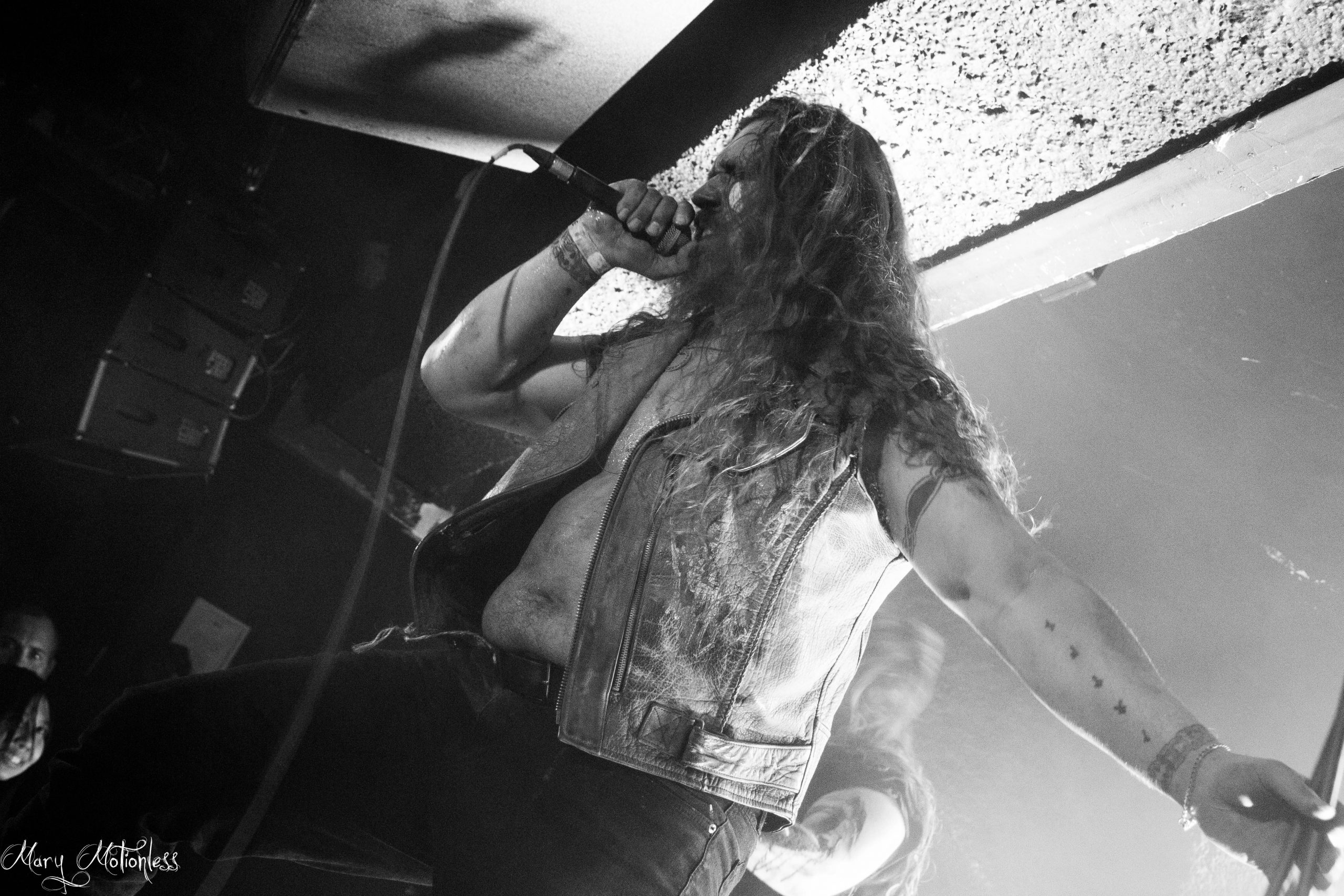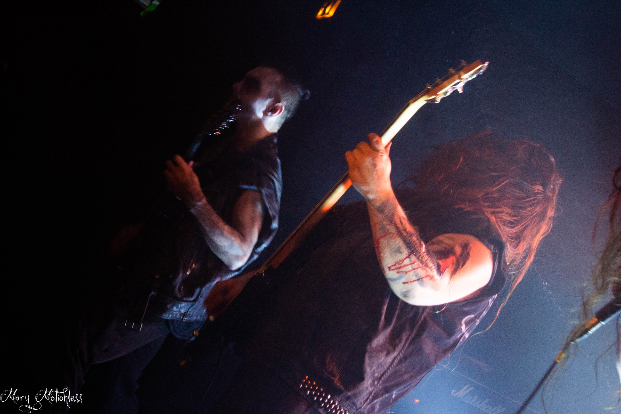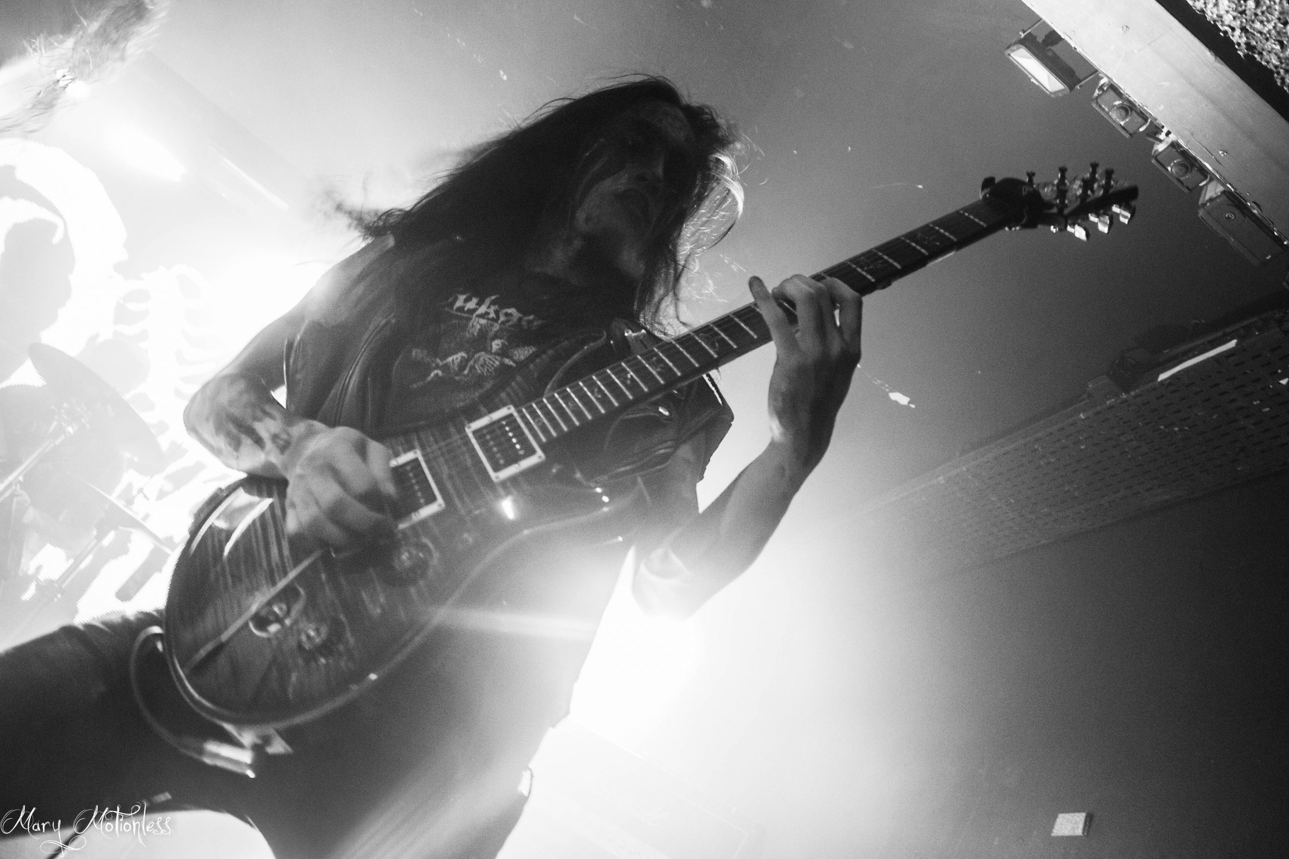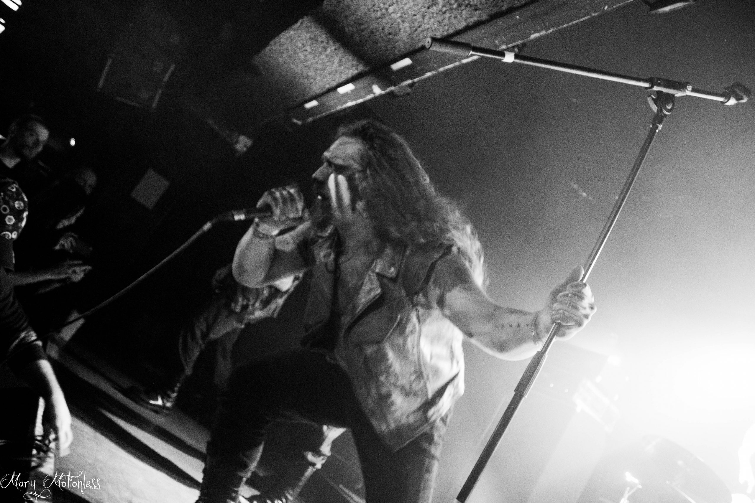 Deuxième groupe pour ce soir : Wyrms. Le groupe est français, plus précisément du Loiret (Ascoux ,d’où le terme de Black Metal Ansculfussien). Le groupe proposera sur sa set-list de ce soir des morceaux issus de « Altuus Kronhorr » leur avant-dernier album sorti en 2018 tandis que « Mehxôhorr » qui clôt le set de ce soir est extrait de leur dernier album en date « A Dead Decade Of Lucubrations« . Le style musical du groupe est pile ce que je cherchais à écouter ce soir, un Black Metal malsain, voir presque « crade » , renforcé par des musiciens avec une allure pas franchement rassurante (pour la grand-mère du coin s’entend), le chant en français est extrêmement puissant. En bref une excellente découverte que je n’hésiterais pas à revoir dès que l’occasion se présentera!