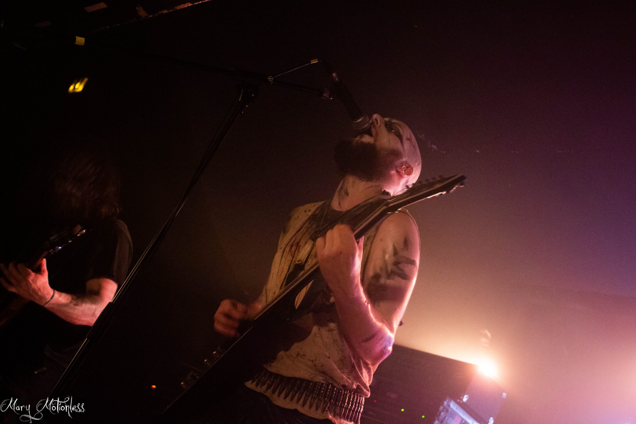 La soirée commence donc avec Epectase, dont c’est ce soir le tout premier concert! Le groupe est originaire de Paris et propose un Black Metal Expérimental auquel je dois avouer ne pas accrocher plus que ça malgré que la performance soit très bonne, les parties instrumentales sont un peu longues à mon goût et je dois avouer que je n’apprécierais réellement que les parties de chant. Dommage pour moi, mais pour eux une bien belle première scène, en leur souhaitant le meilleur pour la suite bien évidemment (et de plus grosses scènes).