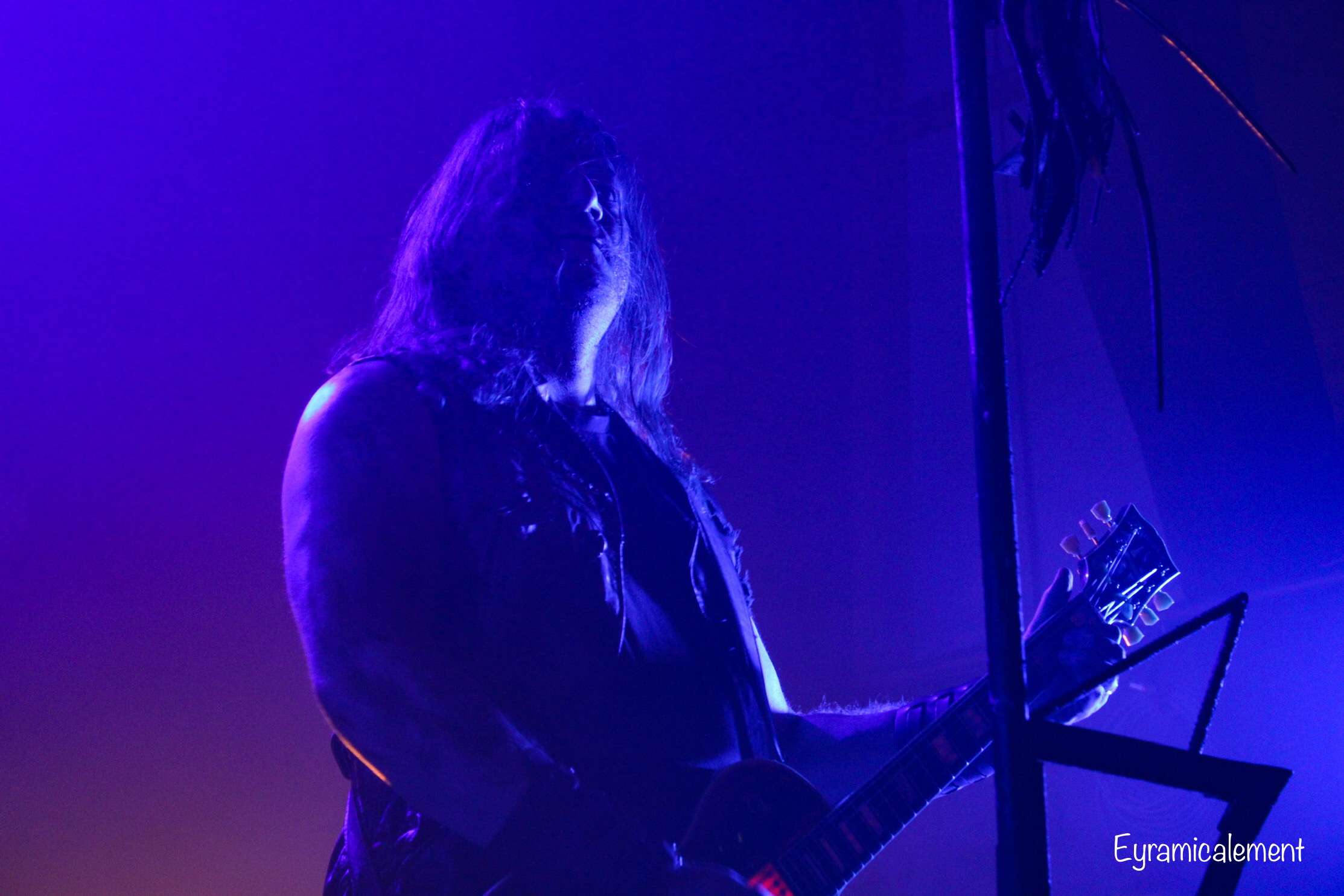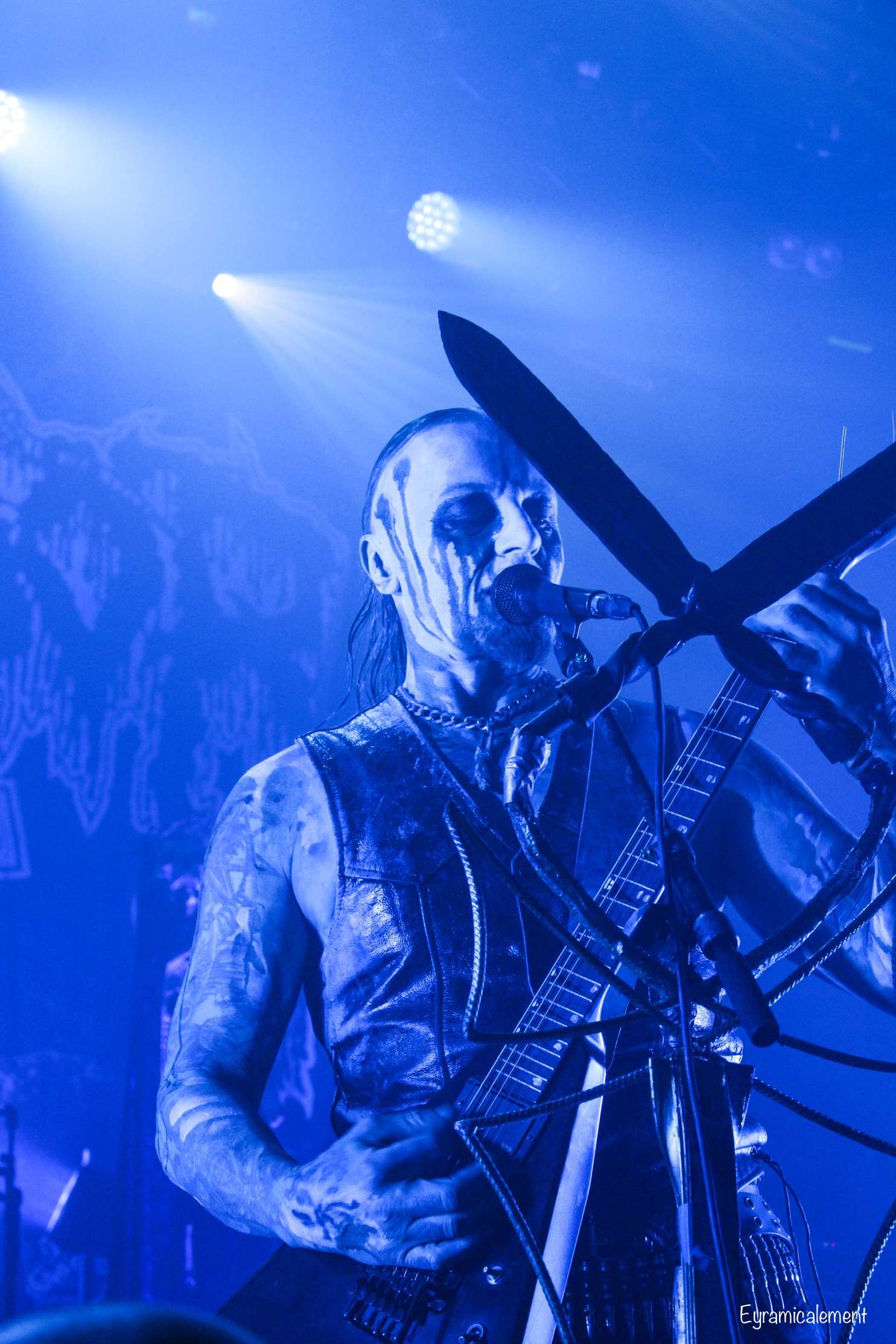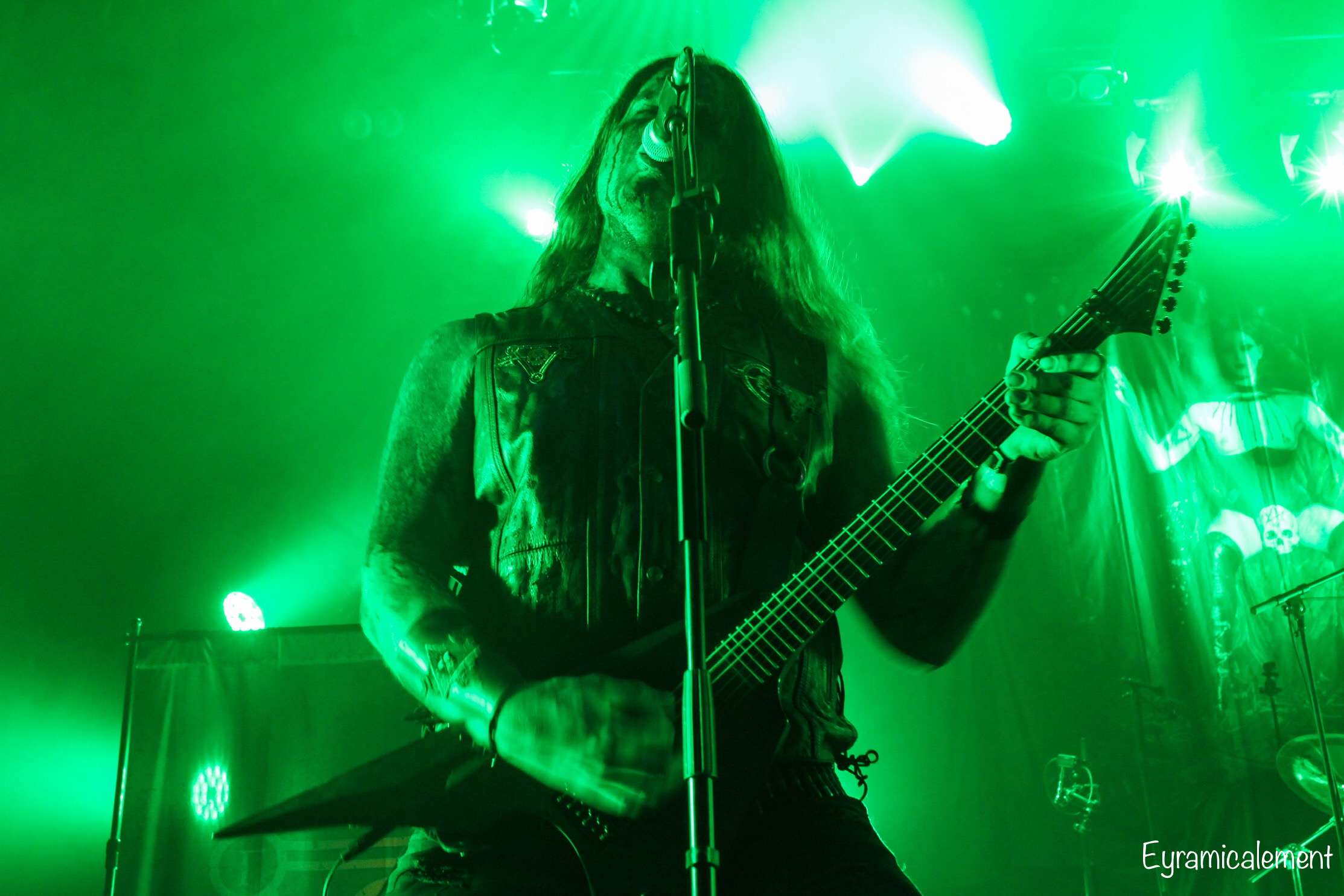 Il est tant d’accueillir Enthroned! Le chanteur entre sur scène en dessinant des crucifix de ses mains. Trois ans que je n’ai pas vu le groupe et dès « Hosanna Satana » je retrouve ce qui m’avait fait adorer leur concert parisien en 2019 (lien en bas de page). Le black métal des belges est de très grande qualité et le public est très réceptif. Nornagest est au top de sa forme et nous balance ses hurlements en pleine face. La setlist est aussi un pur plaisir puisque le groupe alterne entre plusieurs albums de sa discographie. Le public applaudit largement entre chaque titre et on sent que tout le monde prend beaucoup de plaisir. « Smoking Mirror » est un morceau que j’attendais beaucoup et je ne suis absolument pas déçu! Le morceau « Deathmoor » est dédicacée au guitariste originel présent dans la salle. Le groupe quitte la scène après une petite heure sur « Of Feathers And Flames » qui ravit une dernière fois toute la salle!