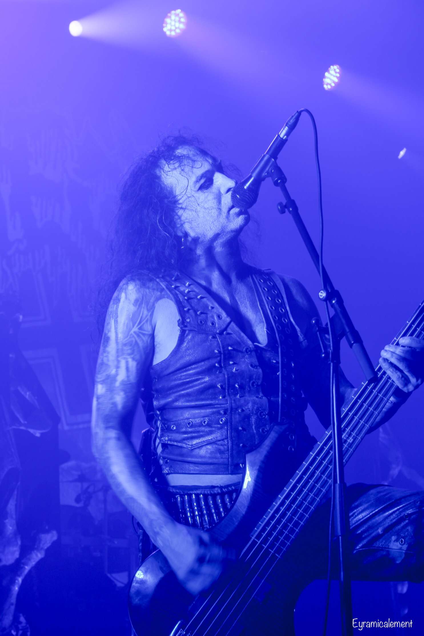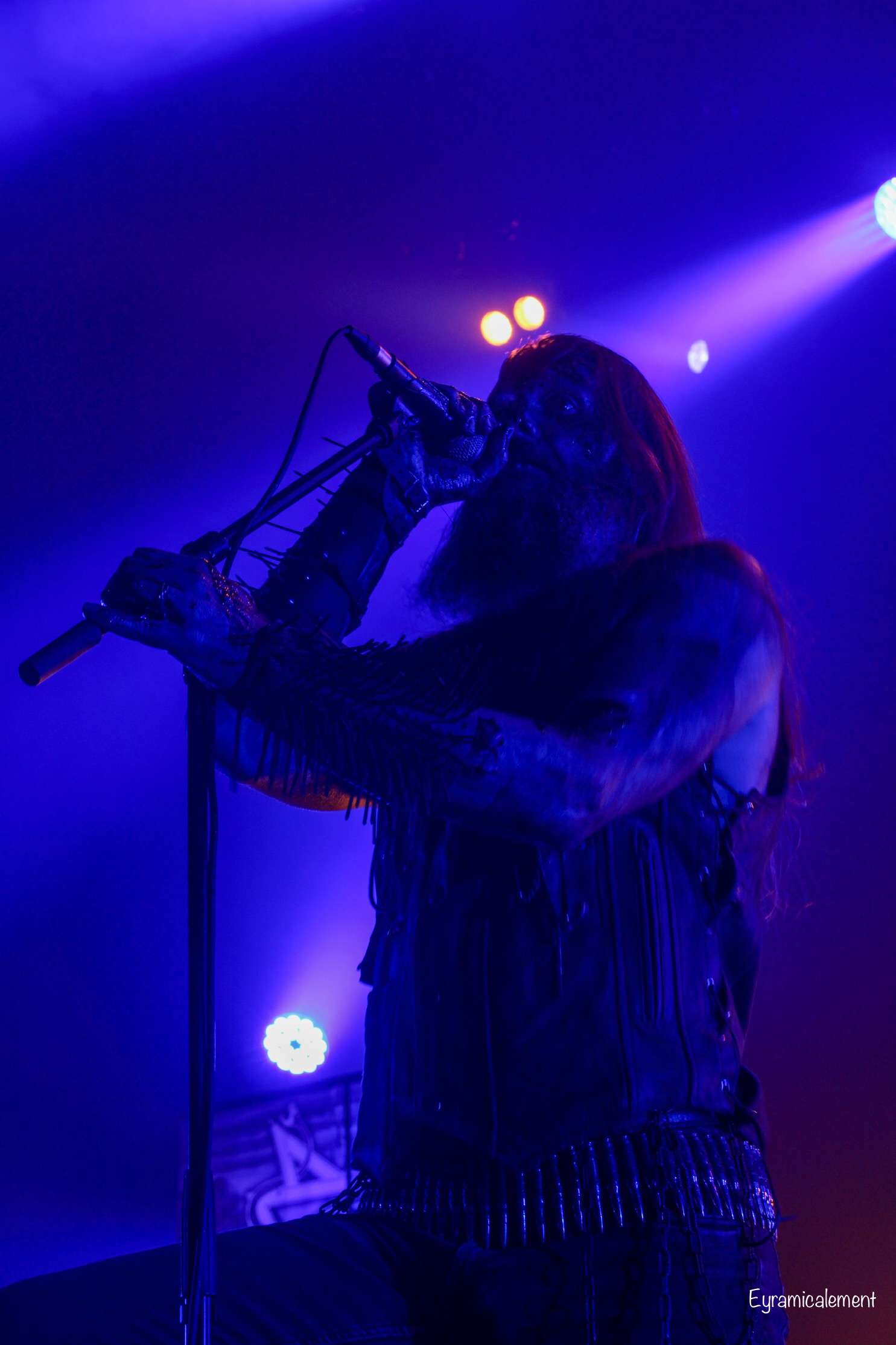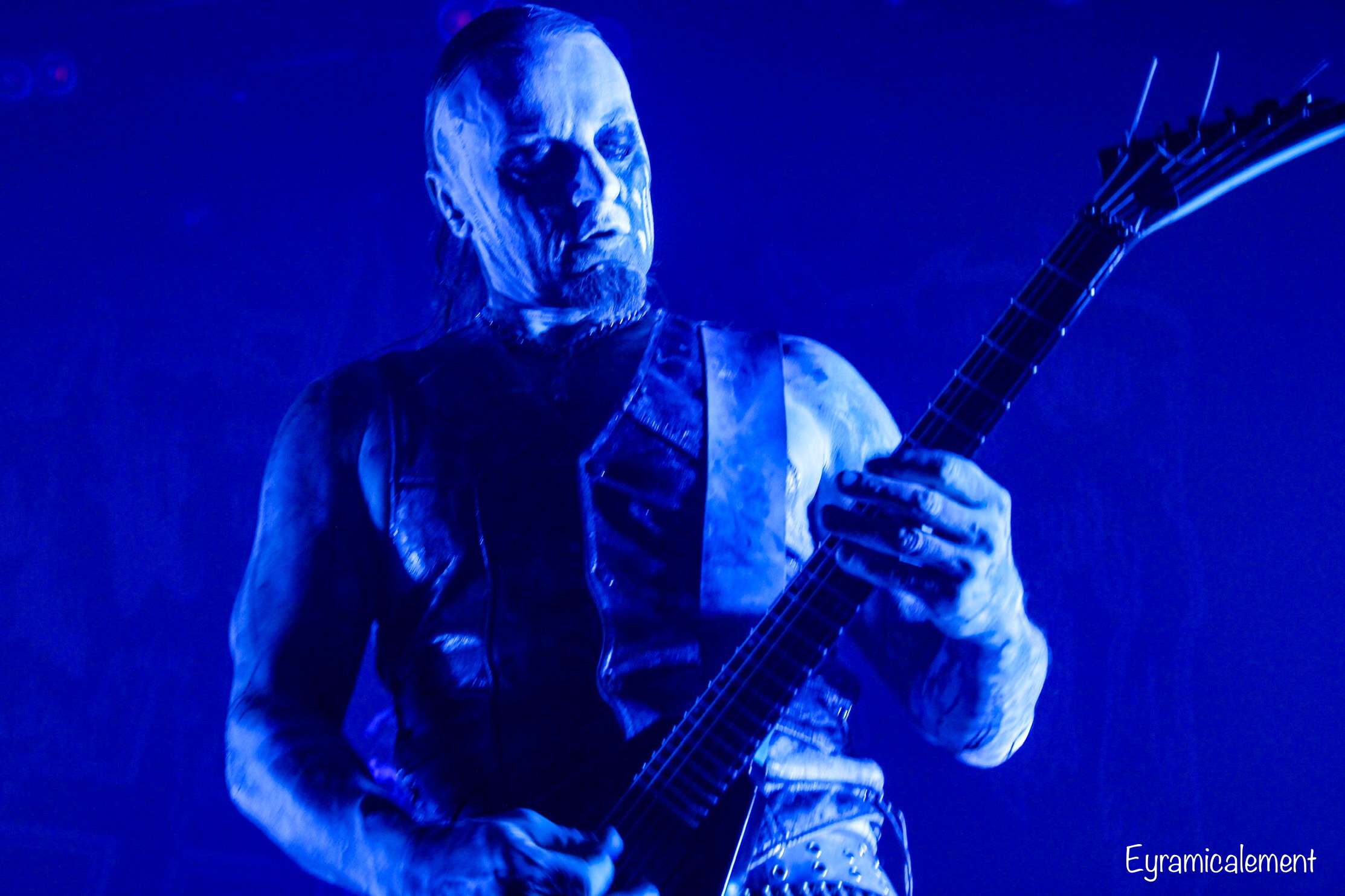 Il est tant d’accueillir Enthroned! Le chanteur entre sur scène en dessinant des crucifix de ses mains. Trois ans que je n’ai pas vu le groupe et dès « Hosanna Satana » je retrouve ce qui m’avait fait adorer leur concert parisien en 2019 (lien en bas de page). Le black métal des belges est de très grande qualité et le public est très réceptif. Nornagest est au top de sa forme et nous balance ses hurlements en pleine face. La setlist est aussi un pur plaisir puisque le groupe alterne entre plusieurs albums de sa discographie. Le public applaudit largement entre chaque titre et on sent que tout le monde prend beaucoup de plaisir. « Smoking Mirror » est un morceau que j’attendais beaucoup et je ne suis absolument pas déçu! Le morceau « Deathmoor » est dédicacée au guitariste originel présent dans la salle. Le groupe quitte la scène après une petite heure sur « Of Feathers And Flames » qui ravit une dernière fois toute la salle!