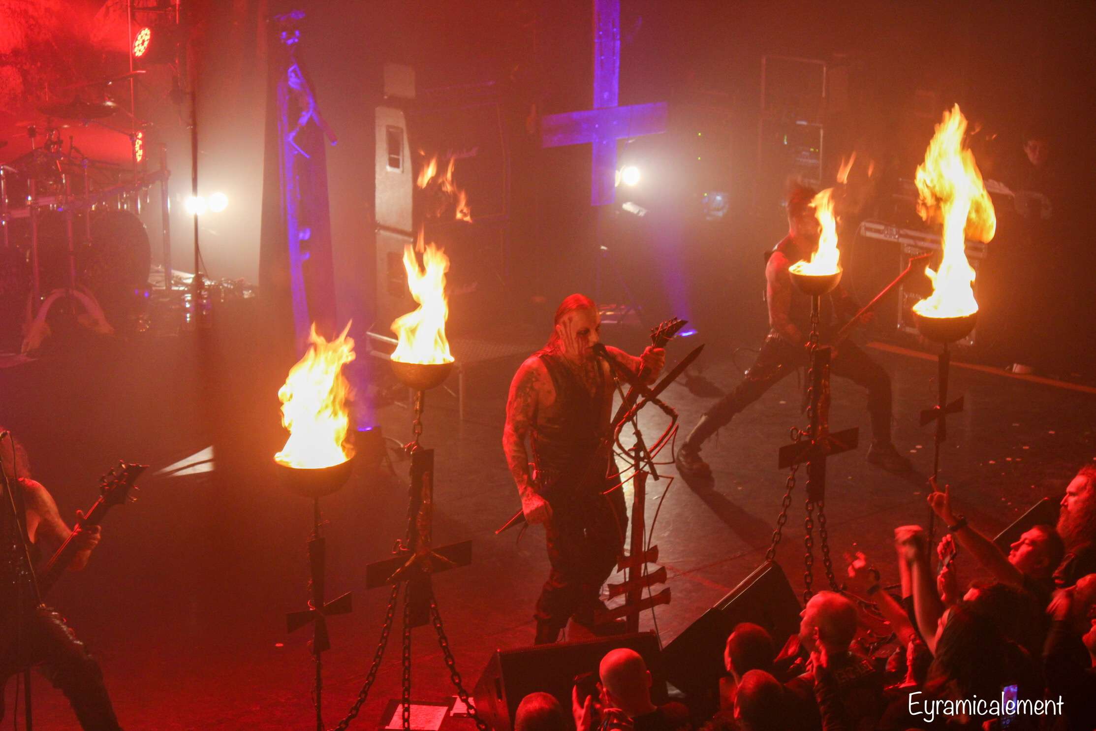 L’installation du décorum de Belphegor nous annonce de grande choses visuellement. Helmuth et Serpenth arrivent sur scène accompagnés de leurs musiciens et c’est parti pour un set sans temps morts. Les autrichiens viennent nous présenter The Devils sorti plus tôt cette année, et autant vous dire que les titres passent sans effort l’épreuve du live. Le set est absolument magistral aussi bien musicalement que visuellement. Helmut nous assène ses riffs et ses hurlements derrière son pied de micro en forme de cisaille. Mon premier concert de Belphegor est une pure claque dont je vais avoir du mal à me remettre. En milieu de set un membre de l’équipe vient allumer les vasques entourant les deux musiciens principaux pour une ambiance encore plus puissante. Le groupe est largement applaudi par le public du Métaphone, qui se dit qu’il n’y a pas meilleure prestation pour clôturer ces deux journées de festival. Je quitte la salle ravi d’avoir enfin vu le groupe autrichien après avoir écouté maintes fois l’album depuis sa sortie. Quel plaisir de voir un show de cette qualité dans une salle aussi belle!