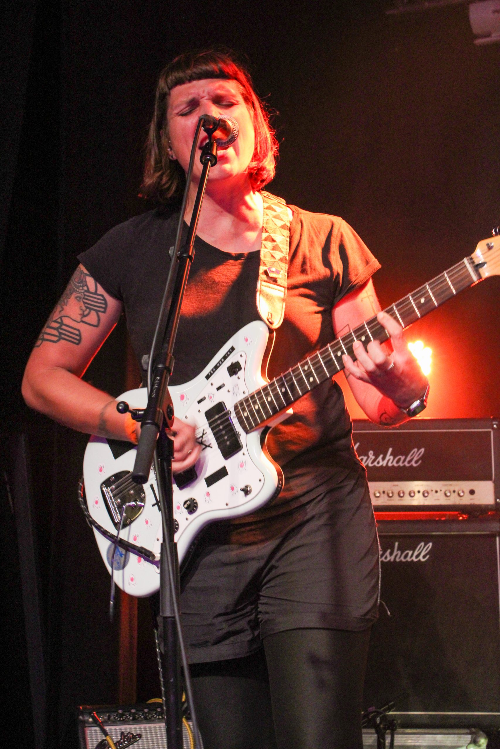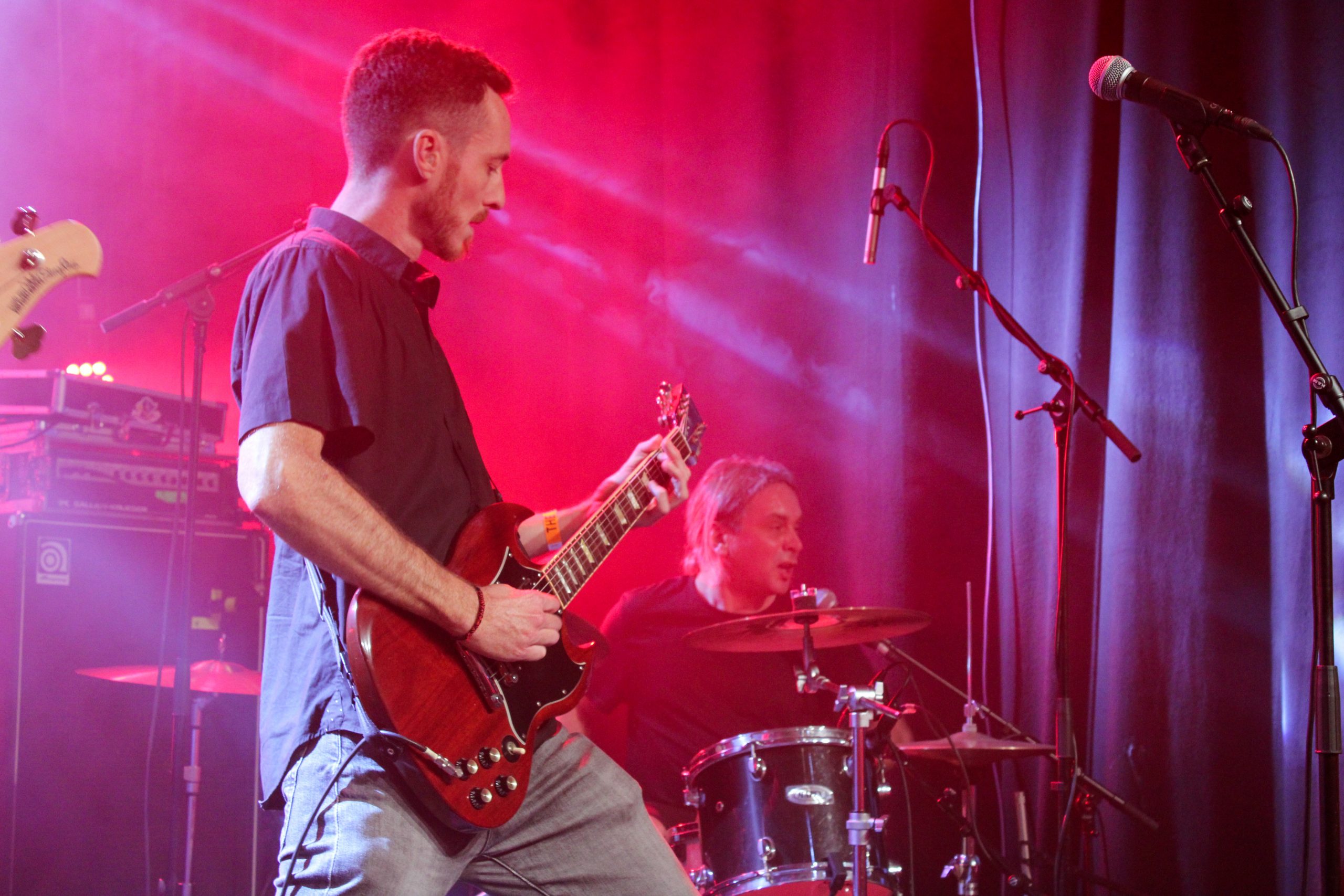 Le trio Asbest, en pleine première tournée française, vient nous proposer un noise tinté de chant hurlé de plus bel effet. Robyn Trachsel est en grande forme aussi bien à la guitare qu’au chant, ce qui fait passer les émotions de chacun des titres sans effort. Judith Breitinger ajoute parfois sa voix à ses lignes de basse, ses cris atteignent des notes bien hautes qu’elle tient de longues secondes, autant dire que c’est très impressionnant! Bien évidemment les rythmiques de Jonas Häne à la batterie sont imparables, ce qui fait que les morceaux du trio sont de purs pépites qu’on découvre avec une grande joie. On sent que le groupe est ravi d’être présent devant un public aussi à l’écoute. Leur set aura pour nous été une véritable découverte et on vous encourage à aller découvrir leur travail!
