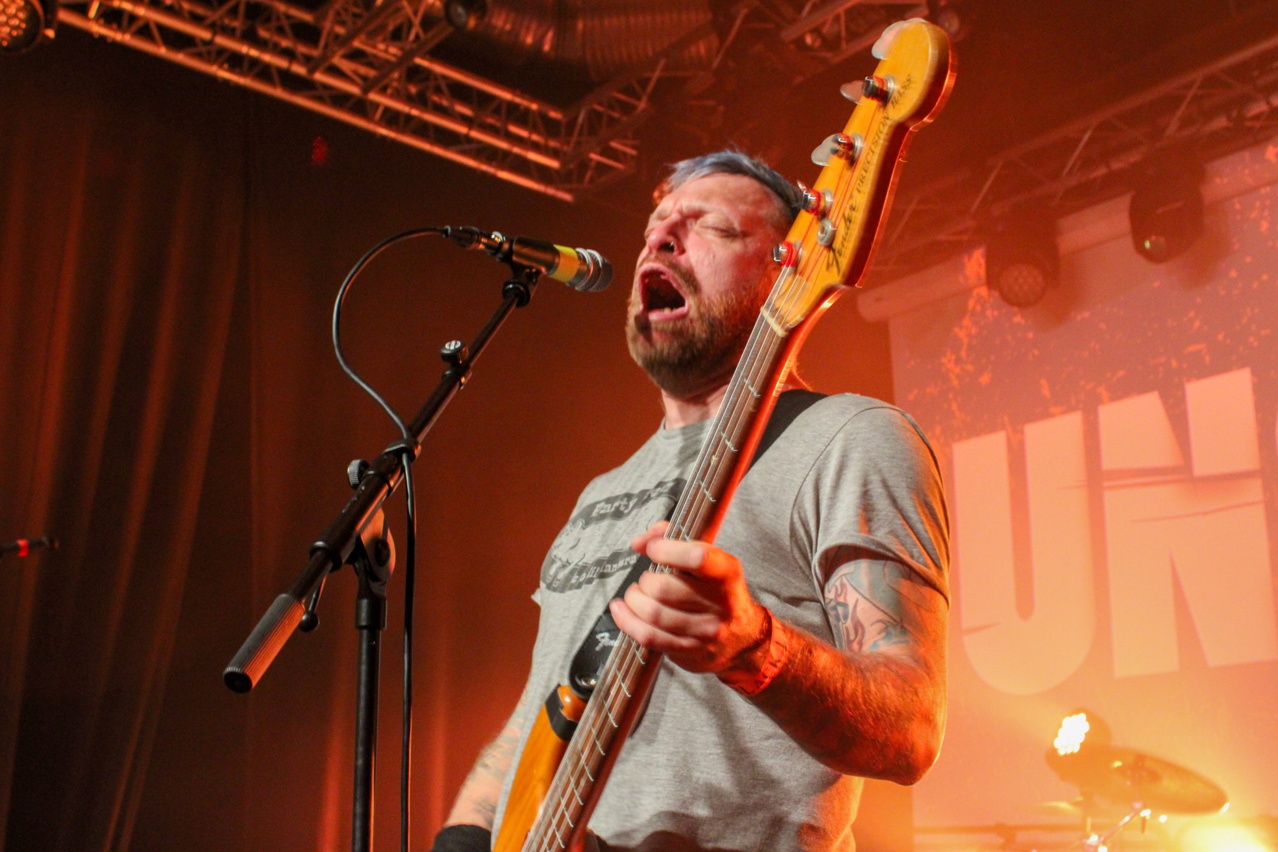 Il est l’heure pour Tang de monter sur scène devant une fosse largement acquise à leur cause, en effet les fans de la formation lilloise se sont déplacés en nombre. L’ambiance du concert sera donc au beau fixe tout du long et le groupe va nous envoyer en pleine face son noise tinté de post hardcore. Les compositions ne laissent rien au hasard et on se laisse porter par la bonne humeur qui règne aussi bien sur scène que dans la fosse. Le groupe formé en 1997 nous emmène dans toute sa discographie et les fans reprennent les morceaux en chœur. Beaucoup sont venus avec leurs enfants et on sent que certains sont déjà prêts pour rentrer dans un pit dans quelques années! Le set de Tang montre que la formation a encore de beaux jours devant elle et que son public est d’une fidélité sans faille. Un set qui aura ravit tout le public présent et nous avec.