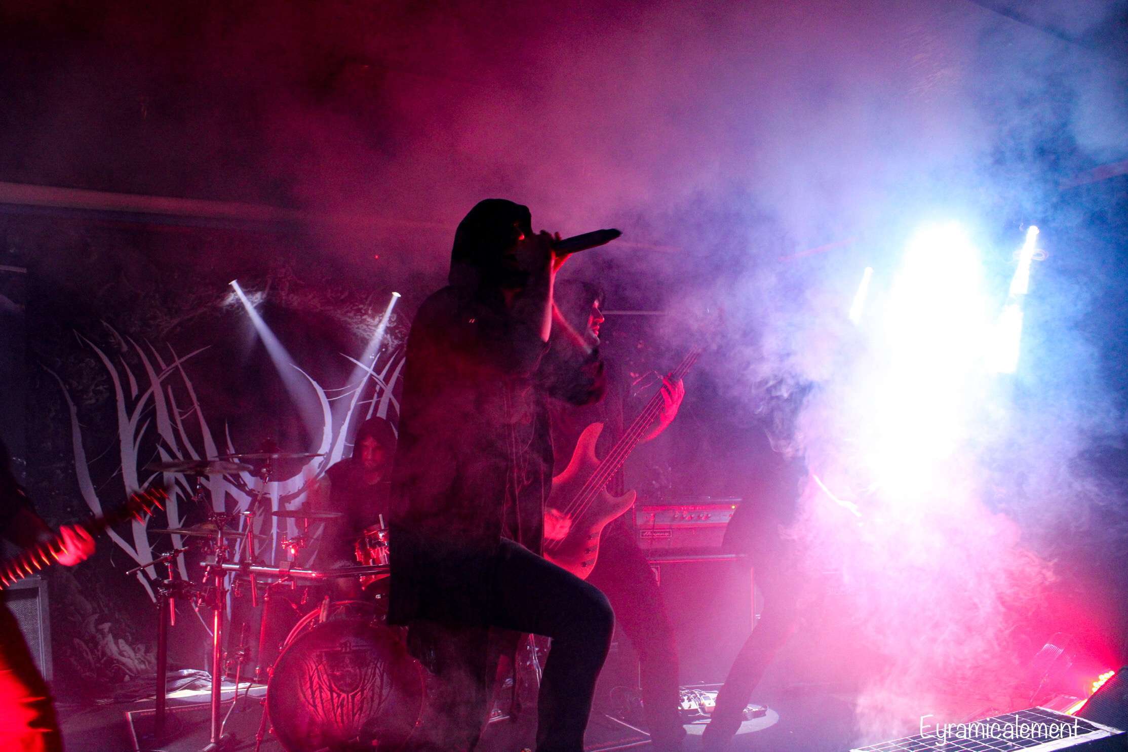 C’est donc Aryoch qui ouvrent le bal devant une salle malheureusement encore timidement remplie. Pour nous c’est une totale découverte mais on retrouve une tête connue à la batterie, l’excellent Léo Godart ! Les morceaux de symphonic black death du combo parisien fonctionnent à merveille. Vocalement Lucas Henry en a sous le capot et nous délivre un chant de très grande qualité, montrant sa grande versatilité. La formation nous propose même un titre en français: « La Valse Des Limbes » qui fait clairement son petit effet. Chaque titre donne l’occasion aux guitaristes de nous proposer le meilleur de leurs solos et autres riffs percutants. « Monolith Of A Thousand Dementias » viendra clôturer un set qui montre que Aryoch est un groupe à suivre de prêt. Largement applaudis en quittant la scène, on les sent heureux d’avoir pu se présenter au public lillois.